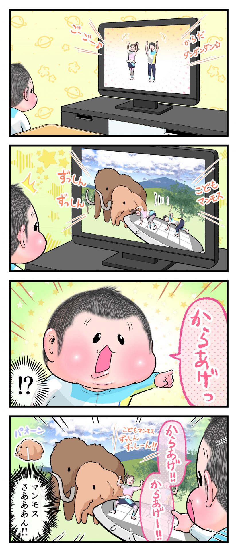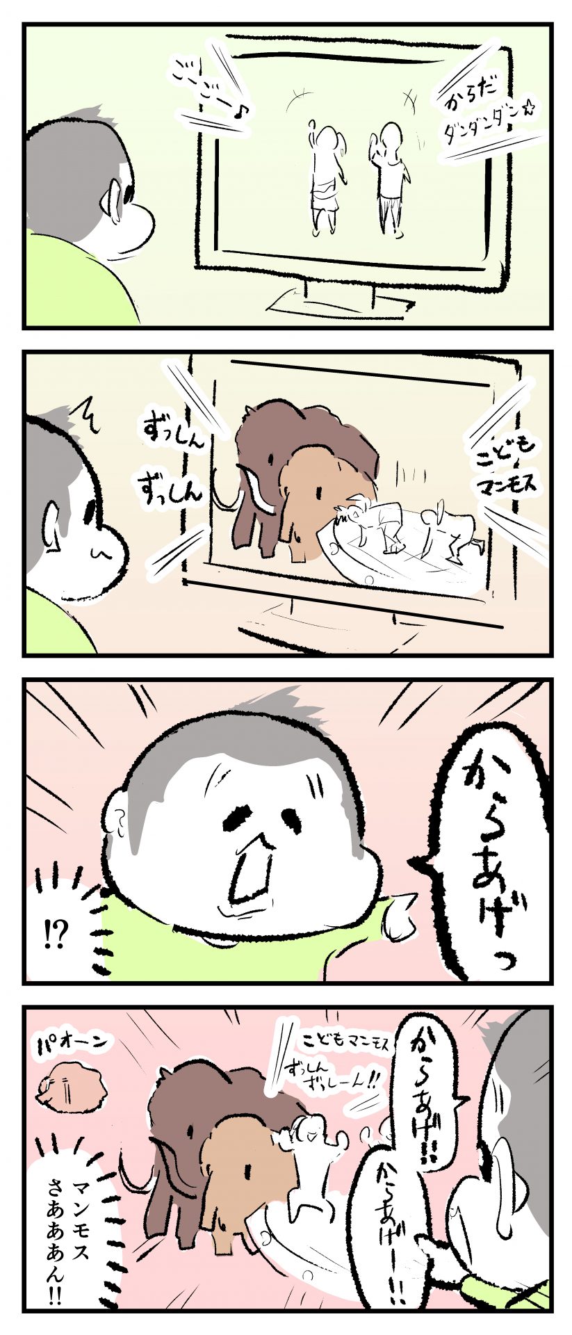 茶色いもの=唐揚げ2021.04.112歳 育児漫画 ぷにすけ:2歳2ヶ月頃 ラフ絵 あとがきこの時はどういうわけかマンモスさんが唐揚げに見えたようでしたw 9 同じカテゴリの記事 思わず二度聞き…!7歳ぷにすけの人生名言→からのギャップ ぷにおにとっての学校とは…?時間割より気になる“あれ” なにその内緒話…!給食のチーズドリアでぷにおが秘密にしたかったあるできごととは…!? #22 巻き起こせ!正の”時短”スパイラル!使い方でこんなに変わる、洗濯機のヒミツ 登校前のギリギリ時間!「待ってほしい」8歳が放った一言が強すぎた…! お母さんの誕生日、欲しいものは…?子どもたちに現実を突きつけられた話~授乳中の、胸が痛む一人時間 生後4ヶ月の赤ちゃんが会長すぎる…!ファミレスでの“会議みたいなしぐさ”がたまらない 生後2ヶ月の赤ちゃんと初ファミレスへ→まさかの「4対1席」に!?子連れ外食のコツも 「寒っ…!」7ヶ月赤ちゃん、ムチムチボディーを震わせててたまらなかった件 #21 テッカテカの君が尊い!はじめての育児で、ついマメにやっちゃう”ひと手間” スパゲティーニプニオニーニ☆8歳息子「目から謎のパスタ」コントの話 腹筋すご!もとの姿勢に戻ろうとする5ヶ月赤ちゃん 5ヶ月赤ちゃんの妹を見つめる兄がつい出た言葉…☆ 離乳食後ににおい…?6ヶ月赤ちゃんのニヤけ顔が何とも言えなかった 6ヶ月赤ちゃんがタグに夢中!ハムハムし尽くした結果… 6ヶ月ぷにみ。おすわりしながら、そっと見上げてくれたあの笑顔 #20 その「ちぱちぱ」は反則~!抱っこ紐の中で1歳息子がくすぐったい攻撃…! 5ヶ月ぷにみ、離乳食デビュー。初めての味への反応は…?③ 5ヶ月ぷにみ、離乳食デビュー。初めての味への反応は…?② 5ヶ月ぷにみ、離乳食デビュー。初めての味への反応は…?① 何かを味わってる?4ヶ月赤ちゃんのお口の動きが尊い件 なんだこの口の動きは…生後4ヶ月ぷにみ、もぐもぐを真似する 「こっち見て~☆」3ヶ月ぷにみ、授乳中のアイコンタクトが止まらない #19 妙に腰をくねらせる~!息子の「出してるよ」サインが、バリエーション豊富な件 ハイパーご機嫌おっぱいタイム☆4ヶ月ぷにみのあんよの動き 5ヶ月ぷにみ、コロコロからのこの動きがたまらない 立たせると笑う!?立つのが好きすぎる3〜4ヶ月のぷにみ 2ヶ月で立ちたい!?おむつ替え中に足ピーンするぷにみ ぷにみ会長にメロメロすぎるぷにすけ社長㉑ #18 「子育てに理解ある職場か」だけが判断基準じゃない。それでも、働き方を変えた理由 かわいい乳歯の破壊力…☆ 歯じめまして!が見えた瞬間…急遽閉ざされた小さなお口 ザ・貫禄 赤ちゃんの笑いの合格音、今日も鳴りました タオルで拭かれてるだけなのに可愛さが限界突破する赤ちゃん なぜか脚マッサージが効いた件 #17 「お母さんと寝よう…?」この後、3歳息子の”あざとさ”にキュンとなる…♡ 思い出のぬいぐるみが繋ぐ兄妹の時間 まんまるなお口☆ 音読の宿題中に起きた言い間違い事件 トイレ直前の舞い 鷲掴み♡ #16 「おかあさん、もすもすしよう!」息子からの謎の誘い☆尊さで心がはちきれそうになった件 ぷにおが感じた、ぷにみのほっぺの感触 ぷにおが思うぷにみの将来 謎のあっちむいてほいゲーム 脱衣所バーテンダー 気持ちだけでも嬉しかった件 そもそもぷにすけ ぷにみ会長にメロメロすぎるぷにすけ社長⑳ #15 深夜の授乳中、旦那からの「お茶とアヒルの差し入れ」が最高に嬉しかった理由 ぷにみ会長にメロメロすぎるぷにすけ社長⑲ ぷにみ会長にメロメロすぎるぷにすけ社長⑱ ぷにみ会長にメロメロすぎるぷにすけ社長⑰ ぷにみ会長にメロメロすぎるぷにすけ社長⑯ 小さな体からすごい音!ぷにみのびっくりサウンド! ぷにみ会長にメロメロすぎるぷにすけ社長⑮ ぷにみ会長にメロメロすぎるぷにすけ社長⑭ ぷにみ会長にメロメロすぎるぷにすけ社長⑬ ぷにみ会長にメロメロすぎるぷにすけ社長⑫ ぷにみ会長にメロメロすぎるぷにすけ社長⑪ ぷにみ会長にメロメロすぎるぷにすけ社長⑩ #14 緊張してる?泣きそうかも~!ドキドキの「はじめてのバースデーフォト」体験 ぷにみ会長にメロメロすぎるぷにすけ社長⑨ ぷにみ会長にメロメロすぎるぷにすけ社長⑧ ぷにみ会長にメロメロすぎるぷにすけ社長⑦ ぷにみ会長にメロメロすぎるぷにすけ社長⑥ ぷにみ会長にメロメロすぎるぷにすけ社長⑤ #13 友人おすすめの”出産時の便利グッズ”。半信半疑で買ったら…本当に大活躍だった! ぷにみ会長にメロメロすぎるぷにすけ社長④ ぷにみ会長にメロメロすぎるぷにすけ社長③ ぷにみ会長にメロメロすぎるぷにすけ社長② ぷにみ会長にメロメロすぎるぷにすけ社長① ノリノリぷにお 寝かしつけ中のパパ…ぷにみの小さなおててがつかんだものとは…☆ #12 「さっきはゴメンね…!」1歳次男の”おわびの気持ち”がなかなかシュールだった件☆ 起動した瞬間(その2) ダジャレにハマるぷにすけ、「校長先生」のくだりが秀逸爆笑展開…! お腹いっぱいになった新生児の反応がたくま