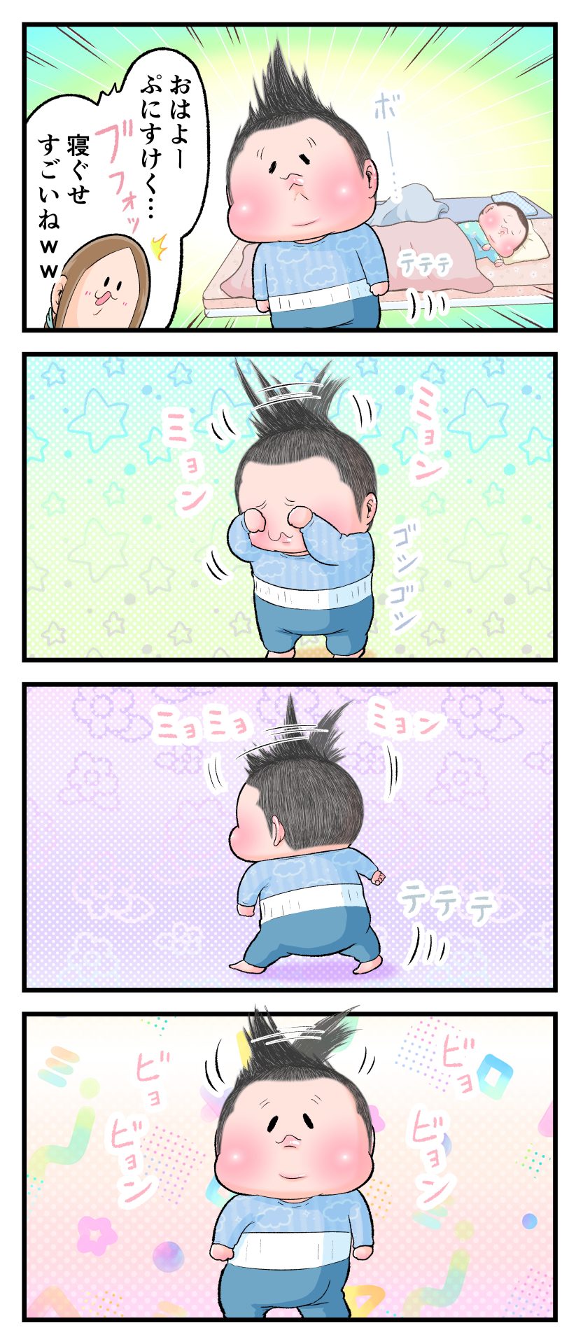 最高の寝ぐせ2021.04.182歳 育児漫画 ぷにすけ:2歳0ヶ月頃 ラフ絵 あとがきバネでも入ってるのかというくらいの弾力性がありました。 4 同じカテゴリの記事 思わず二度聞き…!7歳ぷにすけの人生名言→からのギャップ ぷにおにとっての学校とは…?時間割より気になる“あれ” なにその内緒話…!給食のチーズドリアでぷにおが秘密にしたかったあるできごととは…!? #22 巻き起こせ!正の”時短”スパイラル!使い方でこんなに変わる、洗濯機のヒミツ 登校前のギリギリ時間!「待ってほしい」8歳が放った一言が強すぎた…! お母さんの誕生日、欲しいものは…?子どもたちに現実を突きつけられた話~授乳中の、胸が痛む一人時間 生後4ヶ月の赤ちゃんが会長すぎる…!ファミレスでの“会議みたいなしぐさ”がたまらない 生後2ヶ月の赤ちゃんと初ファミレスへ→まさかの「4対1席」に!?子連れ外食のコツも 「寒っ…!」7ヶ月赤ちゃん、ムチムチボディーを震わせててたまらなかった件 #21 テッカテカの君が尊い!はじめての育児で、ついマメにやっちゃう”ひと手間” スパゲティーニプニオニーニ☆8歳息子「目から謎のパスタ」コントの話 腹筋すご!もとの姿勢に戻ろうとする5ヶ月赤ちゃん 5ヶ月赤ちゃんの妹を見つめる兄がつい出た言葉…☆ 離乳食後ににおい…?6ヶ月赤ちゃんのニヤけ顔が何とも言えなかった 6ヶ月赤ちゃんがタグに夢中!ハムハムし尽くした結果… 6ヶ月ぷにみ。おすわりしながら、そっと見上げてくれたあの笑顔 #20 その「ちぱちぱ」は反則~!抱っこ紐の中で1歳息子がくすぐったい攻撃…! 5ヶ月ぷにみ、離乳食デビュー。初めての味への反応は…?③ 5ヶ月ぷにみ、離乳食デビュー。初めての味への反応は…?② 5ヶ月ぷにみ、離乳食デビュー。初めての味への反応は…?① 何かを味わってる?4ヶ月赤ちゃんのお口の動きが尊い件 なんだこの口の動きは…生後4ヶ月ぷにみ、もぐもぐを真似する 「こっち見て~☆」3ヶ月ぷにみ、授乳中のアイコンタクトが止まらない #19 妙に腰をくねらせる~!息子の「出してるよ」サインが、バリエーション豊富な件 ハイパーご機嫌おっぱいタイム☆4ヶ月ぷにみのあんよの動き 5ヶ月ぷにみ、コロコロからのこの動きがたまらない 立たせると笑う!?立つのが好きすぎる3〜4ヶ月のぷにみ 2ヶ月で立ちたい!?おむつ替え中に足ピーンするぷにみ ぷにみ会長にメロメロすぎるぷにすけ社長㉑ #18 「子育てに理解ある職場か」だけが判断基準じゃない。それでも、働き方を変えた理由 かわいい乳歯の破壊力…☆ 歯じめまして!が見えた瞬間…急遽閉ざされた小さなお口 ザ・貫禄 赤ちゃんの笑いの合格音、今日も鳴りました タオルで拭かれてるだけなのに可愛さが限界突破する赤ちゃん なぜか脚マッサージが効いた件 #17 「お母さんと寝よう…?」この後、3歳息子の”あざとさ”にキュンとなる…♡ 思い出のぬいぐるみが繋ぐ兄妹の時間 まんまるなお口☆ 音読の宿題中に起きた言い間違い事件 トイレ直前の舞い 鷲掴み♡ #16 「おかあさん、もすもすしよう!」息子からの謎の誘い☆尊さで心がはちきれそうになった件 ぷにおが感じた、ぷにみのほっぺの感触 ぷにおが思うぷにみの将来 謎のあっちむいてほいゲーム 脱衣所バーテンダー 気持ちだけでも嬉しかった件 そもそもぷにすけ ぷにみ会長にメロメロすぎるぷにすけ社長⑳ #15 深夜の授乳中、旦那からの「お茶とアヒルの差し入れ」が最高に嬉しかった理由 ぷにみ会長にメロメロすぎるぷにすけ社長⑲ ぷにみ会長にメロメロすぎるぷにすけ社長⑱ ぷにみ会長にメロメロすぎるぷにすけ社長⑰ ぷにみ会長にメロメロすぎるぷにすけ社長⑯ 小さな体からすごい音!ぷにみのびっくりサウンド! ぷにみ会長にメロメロすぎるぷにすけ社長⑮ ぷにみ会長にメロメロすぎるぷにすけ社長⑭ ぷにみ会長にメロメロすぎるぷにすけ社長⑬ ぷにみ会長にメロメロすぎるぷにすけ社長⑫ ぷにみ会長にメロメロすぎるぷにすけ社長⑪ ぷにみ会長にメロメロすぎるぷにすけ社長⑩ #14 緊張してる?泣きそうかも~!ドキドキの「はじめてのバースデーフォト」体験 ぷにみ会長にメロメロすぎるぷにすけ社長⑨ ぷにみ会長にメロメロすぎるぷにすけ社長⑧ ぷにみ会長にメロメロすぎるぷにすけ社長⑦ ぷにみ会長にメロメロすぎるぷにすけ社長⑥ ぷにみ会長にメロメロすぎるぷにすけ社長⑤ #13 友人おすすめの”出産時の便利グッズ”。半信半疑で買ったら…本当に大活躍だった! ぷにみ会長にメロメロすぎるぷにすけ社長④ ぷにみ会長にメロメロすぎるぷにすけ社長③ ぷにみ会長にメロメロすぎるぷにすけ社長② ぷにみ会長にメロメロすぎるぷにすけ社長① ノリノリぷにお 寝かしつけ中のパパ…ぷにみの小さなおててがつかんだものとは…☆ #12 「さっきはゴメンね…!」1歳次男の”おわびの気持ち”がなかなかシュールだった件☆ 起動した瞬間(その2) ダジャレにハマるぷにすけ、「校長先生」のくだりが秀逸爆笑展開…! お腹いっぱいになった新生児の反応がたくましすぎた件 #11