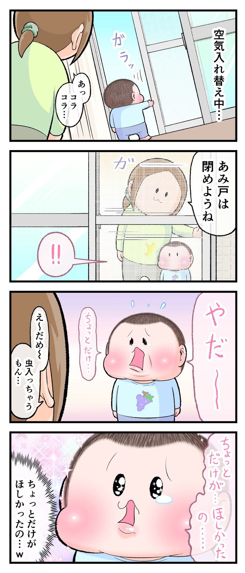 ちょっとだけ…2021.04.213歳 育児漫画 ぷにお:3歳6ヶ月頃 ラフ絵 あとがき少女漫画か何かで相手をイチコロにするセリフだと思いました。 3 同じカテゴリの記事 思わず二度聞き…!7歳ぷにすけの人生名言→からのギャップ ぷにおにとっての学校とは…?時間割より気になる“あれ” なにその内緒話…!給食のチーズドリアでぷにおが秘密にしたかったあるできごととは…!? #22 巻き起こせ!正の”時短”スパイラル!使い方でこんなに変わる、洗濯機のヒミツ 登校前のギリギリ時間!「待ってほしい」8歳が放った一言が強すぎた…! お母さんの誕生日、欲しいものは…?子どもたちに現実を突きつけられた話~授乳中の、胸が痛む一人時間 生後4ヶ月の赤ちゃんが会長すぎる…!ファミレスでの“会議みたいなしぐさ”がたまらない 生後2ヶ月の赤ちゃんと初ファミレスへ→まさかの「4対1席」に!?子連れ外食のコツも 「寒っ…!」7ヶ月赤ちゃん、ムチムチボディーを震わせててたまらなかった件 #21 テッカテカの君が尊い!はじめての育児で、ついマメにやっちゃう”ひと手間” スパゲティーニプニオニーニ☆8歳息子「目から謎のパスタ」コントの話 腹筋すご!もとの姿勢に戻ろうとする5ヶ月赤ちゃん 5ヶ月赤ちゃんの妹を見つめる兄がつい出た言葉…☆ 離乳食後ににおい…?6ヶ月赤ちゃんのニヤけ顔が何とも言えなかった 6ヶ月赤ちゃんがタグに夢中!ハムハムし尽くした結果… 6ヶ月ぷにみ。おすわりしながら、そっと見上げてくれたあの笑顔 #20 その「ちぱちぱ」は反則~!抱っこ紐の中で1歳息子がくすぐったい攻撃…! 5ヶ月ぷにみ、離乳食デビュー。初めての味への反応は…?③ 5ヶ月ぷにみ、離乳食デビュー。初めての味への反応は…?② 5ヶ月ぷにみ、離乳食デビュー。初めての味への反応は…?① 何かを味わってる?4ヶ月赤ちゃんのお口の動きが尊い件 なんだこの口の動きは…生後4ヶ月ぷにみ、もぐもぐを真似する 「こっち見て~☆」3ヶ月ぷにみ、授乳中のアイコンタクトが止まらない #19 妙に腰をくねらせる~!息子の「出してるよ」サインが、バリエーション豊富な件 ハイパーご機嫌おっぱいタイム☆4ヶ月ぷにみのあんよの動き 5ヶ月ぷにみ、コロコロからのこの動きがたまらない 立たせると笑う!?立つのが好きすぎる3〜4ヶ月のぷにみ 2ヶ月で立ちたい!?おむつ替え中に足ピーンするぷにみ ぷにみ会長にメロメロすぎるぷにすけ社長㉑ #18 「子育てに理解ある職場か」だけが判断基準じゃない。それでも、働き方を変えた理由 かわいい乳歯の破壊力…☆ 歯じめまして!が見えた瞬間…急遽閉ざされた小さなお口 ザ・貫禄 赤ちゃんの笑いの合格音、今日も鳴りました タオルで拭かれてるだけなのに可愛さが限界突破する赤ちゃん なぜか脚マッサージが効いた件 #17 「お母さんと寝よう…?」この後、3歳息子の”あざとさ”にキュンとなる…♡ 思い出のぬいぐるみが繋ぐ兄妹の時間 まんまるなお口☆ 音読の宿題中に起きた言い間違い事件 トイレ直前の舞い 鷲掴み♡ #16 「おかあさん、もすもすしよう!」息子からの謎の誘い☆尊さで心がはちきれそうになった件 ぷにおが感じた、ぷにみのほっぺの感触 ぷにおが思うぷにみの将来 謎のあっちむいてほいゲーム 脱衣所バーテンダー 気持ちだけでも嬉しかった件 そもそもぷにすけ ぷにみ会長にメロメロすぎるぷにすけ社長⑳ #15 深夜の授乳中、旦那からの「お茶とアヒルの差し入れ」が最高に嬉しかった理由 ぷにみ会長にメロメロすぎるぷにすけ社長⑲ ぷにみ会長にメロメロすぎるぷにすけ社長⑱ ぷにみ会長にメロメロすぎるぷにすけ社長⑰ ぷにみ会長にメロメロすぎるぷにすけ社長⑯ 小さな体からすごい音!ぷにみのびっくりサウンド! ぷにみ会長にメロメロすぎるぷにすけ社長⑮ ぷにみ会長にメロメロすぎるぷにすけ社長⑭ ぷにみ会長にメロメロすぎるぷにすけ社長⑬ ぷにみ会長にメロメロすぎるぷにすけ社長⑫ ぷにみ会長にメロメロすぎるぷにすけ社長⑪ ぷにみ会長にメロメロすぎるぷにすけ社長⑩ #14 緊張してる?泣きそうかも~!ドキドキの「はじめてのバースデーフォト」体験 ぷにみ会長にメロメロすぎるぷにすけ社長⑨ ぷにみ会長にメロメロすぎるぷにすけ社長⑧ ぷにみ会長にメロメロすぎるぷにすけ社長⑦ ぷにみ会長にメロメロすぎるぷにすけ社長⑥ ぷにみ会長にメロメロすぎるぷにすけ社長⑤ #13 友人おすすめの”出産時の便利グッズ”。半信半疑で買ったら…本当に大活躍だった! ぷにみ会長にメロメロすぎるぷにすけ社長④ ぷにみ会長にメロメロすぎるぷにすけ社長③ ぷにみ会長にメロメロすぎるぷにすけ社長② ぷにみ会長にメロメロすぎるぷにすけ社長① ノリノリぷにお 寝かしつけ中のパパ…ぷにみの小さなおててがつかんだものとは…☆ #12 「さっきはゴメンね…!」1歳次男の”おわびの気持ち”がなかなかシュールだった件☆ 起動した瞬間(その2) ダジャレにハマるぷにすけ、「校長先生」のくだりが秀逸爆笑展開…! お腹いっぱいになった新生児の反応がたくましすぎた