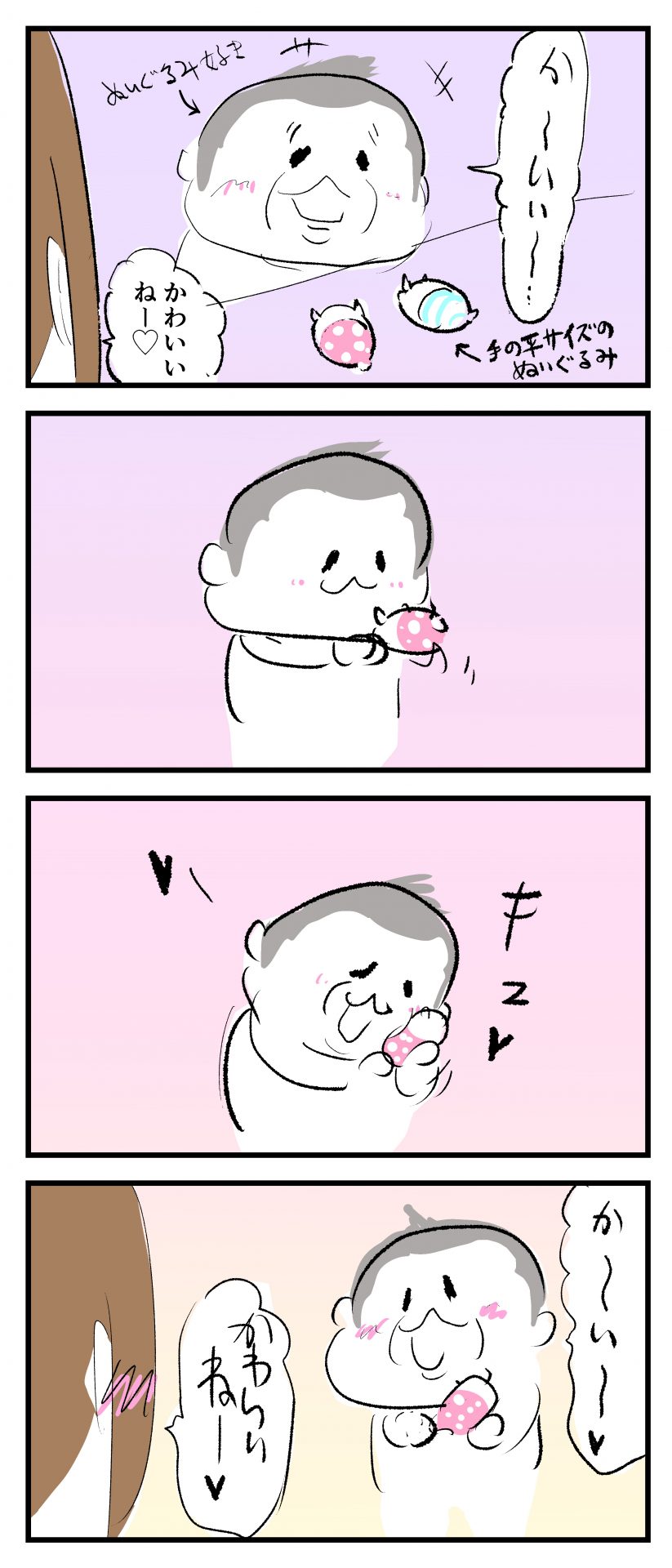 かわいいもの好きぷにすけ2021.04.221歳 育児漫画 ぷにすけ:1歳4ヶ月頃 ラフ絵 あとがきこのようにかわいいものには目がない様子です(2歳3ヶ月の今も進行中)。 3 同じカテゴリの記事 思わず二度聞き…!7歳ぷにすけの人生名言→からのギャップ ぷにおにとっての学校とは…?時間割より気になる“あれ” なにその内緒話…!給食のチーズドリアでぷにおが秘密にしたかったあるできごととは…!? #22 巻き起こせ!正の”時短”スパイラル!使い方でこんなに変わる、洗濯機のヒミツ 登校前のギリギリ時間!「待ってほしい」8歳が放った一言が強すぎた…! お母さんの誕生日、欲しいものは…?子どもたちに現実を突きつけられた話~授乳中の、胸が痛む一人時間 生後4ヶ月の赤ちゃんが会長すぎる…!ファミレスでの“会議みたいなしぐさ”がたまらない 生後2ヶ月の赤ちゃんと初ファミレスへ→まさかの「4対1席」に!?子連れ外食のコツも 「寒っ…!」7ヶ月赤ちゃん、ムチムチボディーを震わせててたまらなかった件 #21 テッカテカの君が尊い!はじめての育児で、ついマメにやっちゃう”ひと手間” スパゲティーニプニオニーニ☆8歳息子「目から謎のパスタ」コントの話 腹筋すご!もとの姿勢に戻ろうとする5ヶ月赤ちゃん 5ヶ月赤ちゃんの妹を見つめる兄がつい出た言葉…☆ 離乳食後ににおい…?6ヶ月赤ちゃんのニヤけ顔が何とも言えなかった 6ヶ月赤ちゃんがタグに夢中!ハムハムし尽くした結果… 6ヶ月ぷにみ。おすわりしながら、そっと見上げてくれたあの笑顔 #20 その「ちぱちぱ」は反則~!抱っこ紐の中で1歳息子がくすぐったい攻撃…! 5ヶ月ぷにみ、離乳食デビュー。初めての味への反応は…?③ 5ヶ月ぷにみ、離乳食デビュー。初めての味への反応は…?② 5ヶ月ぷにみ、離乳食デビュー。初めての味への反応は…?① 何かを味わってる?4ヶ月赤ちゃんのお口の動きが尊い件 なんだこの口の動きは…生後4ヶ月ぷにみ、もぐもぐを真似する 「こっち見て~☆」3ヶ月ぷにみ、授乳中のアイコンタクトが止まらない #19 妙に腰をくねらせる~!息子の「出してるよ」サインが、バリエーション豊富な件 ハイパーご機嫌おっぱいタイム☆4ヶ月ぷにみのあんよの動き 5ヶ月ぷにみ、コロコロからのこの動きがたまらない 立たせると笑う!?立つのが好きすぎる3〜4ヶ月のぷにみ 2ヶ月で立ちたい!?おむつ替え中に足ピーンするぷにみ ぷにみ会長にメロメロすぎるぷにすけ社長㉑ #18 「子育てに理解ある職場か」だけが判断基準じゃない。それでも、働き方を変えた理由 かわいい乳歯の破壊力…☆ 歯じめまして!が見えた瞬間…急遽閉ざされた小さなお口 ザ・貫禄 赤ちゃんの笑いの合格音、今日も鳴りました タオルで拭かれてるだけなのに可愛さが限界突破する赤ちゃん なぜか脚マッサージが効いた件 #17 「お母さんと寝よう…?」この後、3歳息子の”あざとさ”にキュンとなる…♡ 思い出のぬいぐるみが繋ぐ兄妹の時間 まんまるなお口☆ 音読の宿題中に起きた言い間違い事件 トイレ直前の舞い 鷲掴み♡ #16 「おかあさん、もすもすしよう!」息子からの謎の誘い☆尊さで心がはちきれそうになった件 ぷにおが感じた、ぷにみのほっぺの感触 ぷにおが思うぷにみの将来 謎のあっちむいてほいゲーム 脱衣所バーテンダー 気持ちだけでも嬉しかった件 そもそもぷにすけ ぷにみ会長にメロメロすぎるぷにすけ社長⑳ #15 深夜の授乳中、旦那からの「お茶とアヒルの差し入れ」が最高に嬉しかった理由 ぷにみ会長にメロメロすぎるぷにすけ社長⑲ ぷにみ会長にメロメロすぎるぷにすけ社長⑱ ぷにみ会長にメロメロすぎるぷにすけ社長⑰ ぷにみ会長にメロメロすぎるぷにすけ社長⑯ 小さな体からすごい音!ぷにみのびっくりサウンド! ぷにみ会長にメロメロすぎるぷにすけ社長⑮ ぷにみ会長にメロメロすぎるぷにすけ社長⑭ ぷにみ会長にメロメロすぎるぷにすけ社長⑬ ぷにみ会長にメロメロすぎるぷにすけ社長⑫ ぷにみ会長にメロメロすぎるぷにすけ社長⑪ ぷにみ会長にメロメロすぎるぷにすけ社長⑩ #14 緊張してる?泣きそうかも~!ドキドキの「はじめてのバースデーフォト」体験 ぷにみ会長にメロメロすぎるぷにすけ社長⑨ ぷにみ会長にメロメロすぎるぷにすけ社長⑧ ぷにみ会長にメロメロすぎるぷにすけ社長⑦ ぷにみ会長にメロメロすぎるぷにすけ社長⑥ ぷにみ会長にメロメロすぎるぷにすけ社長⑤ #13 友人おすすめの”出産時の便利グッズ”。半信半疑で買ったら…本当に大活躍だった! ぷにみ会長にメロメロすぎるぷにすけ社長④ ぷにみ会長にメロメロすぎるぷにすけ社長③ ぷにみ会長にメロメロすぎるぷにすけ社長② ぷにみ会長にメロメロすぎるぷにすけ社長① ノリノリぷにお 寝かしつけ中のパパ…ぷにみの小さなおててがつかんだものとは…☆ #12 「さっきはゴメンね…!」1歳次男の”おわびの気持ち”がなかなかシュールだった件☆ 起動した瞬間(その2) ダジャレにハマるぷにすけ、「校長先生」のくだりが秀逸爆笑展開…! お腹いっぱいになった新生児の反