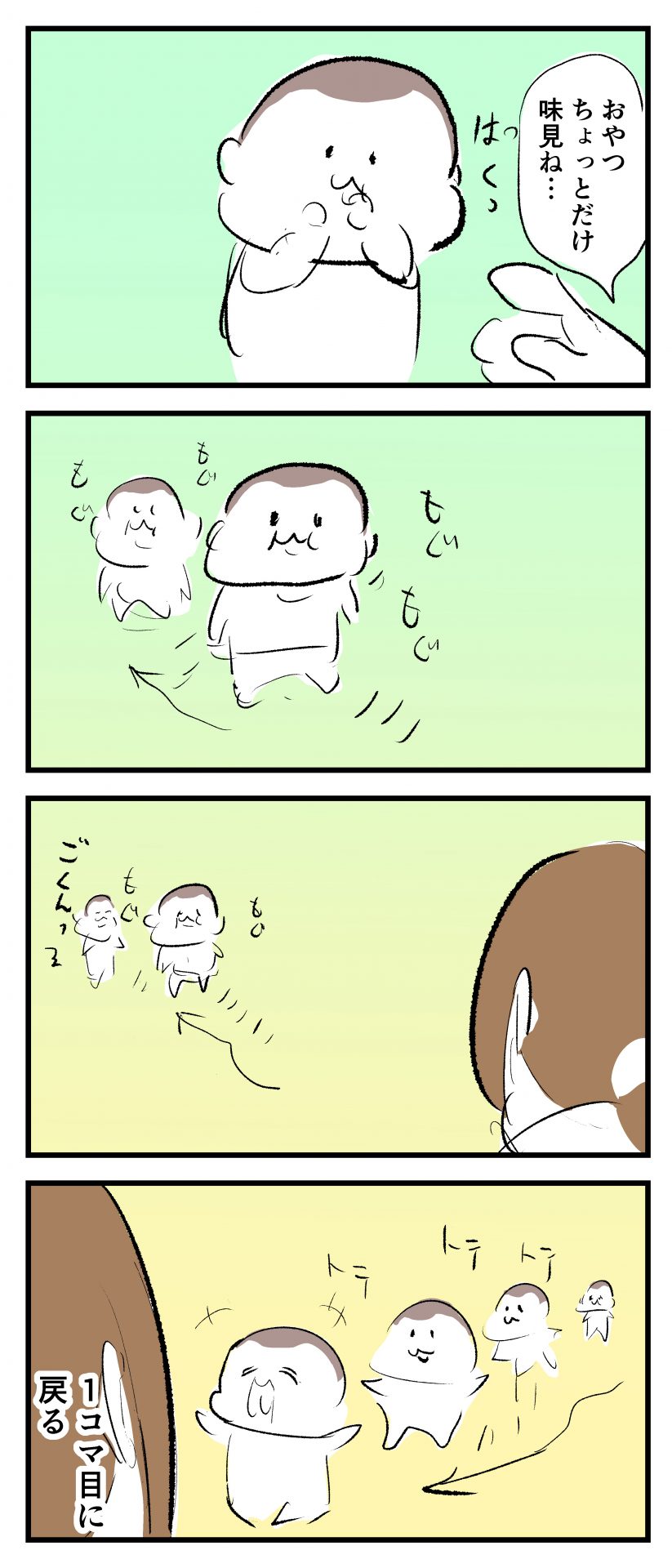 もぐもぐ後ずさり☆2021.04.251歳 育児漫画 ぷにお:1歳2ヶ月頃 ラフ絵 あとがきおやつのかけらを味見させたした時、こんなふうに後ずさりしながら味わって飲み込んだらおかわり催促で寄ってきていましたw 5 同じカテゴリの記事 思わず二度聞き…!7歳ぷにすけの人生名言→からのギャップ ぷにおにとっての学校とは…?時間割より気になる“あれ” なにその内緒話…!給食のチーズドリアでぷにおが秘密にしたかったあるできごととは…!? #22 巻き起こせ!正の”時短”スパイラル!使い方でこんなに変わる、洗濯機のヒミツ 登校前のギリギリ時間!「待ってほしい」8歳が放った一言が強すぎた…! お母さんの誕生日、欲しいものは…?子どもたちに現実を突きつけられた話~授乳中の、胸が痛む一人時間 生後4ヶ月の赤ちゃんが会長すぎる…!ファミレスでの“会議みたいなしぐさ”がたまらない 生後2ヶ月の赤ちゃんと初ファミレスへ→まさかの「4対1席」に!?子連れ外食のコツも 「寒っ…!」7ヶ月赤ちゃん、ムチムチボディーを震わせててたまらなかった件 #21 テッカテカの君が尊い!はじめての育児で、ついマメにやっちゃう”ひと手間” スパゲティーニプニオニーニ☆8歳息子「目から謎のパスタ」コントの話 腹筋すご!もとの姿勢に戻ろうとする5ヶ月赤ちゃん 5ヶ月赤ちゃんの妹を見つめる兄がつい出た言葉…☆ 離乳食後ににおい…?6ヶ月赤ちゃんのニヤけ顔が何とも言えなかった 6ヶ月赤ちゃんがタグに夢中!ハムハムし尽くした結果… 6ヶ月ぷにみ。おすわりしながら、そっと見上げてくれたあの笑顔 #20 その「ちぱちぱ」は反則~!抱っこ紐の中で1歳息子がくすぐったい攻撃…! 5ヶ月ぷにみ、離乳食デビュー。初めての味への反応は…?③ 5ヶ月ぷにみ、離乳食デビュー。初めての味への反応は…?② 5ヶ月ぷにみ、離乳食デビュー。初めての味への反応は…?① 何かを味わってる?4ヶ月赤ちゃんのお口の動きが尊い件 なんだこの口の動きは…生後4ヶ月ぷにみ、もぐもぐを真似する 「こっち見て~☆」3ヶ月ぷにみ、授乳中のアイコンタクトが止まらない #19 妙に腰をくねらせる~!息子の「出してるよ」サインが、バリエーション豊富な件 ハイパーご機嫌おっぱいタイム☆4ヶ月ぷにみのあんよの動き 5ヶ月ぷにみ、コロコロからのこの動きがたまらない 立たせると笑う!?立つのが好きすぎる3〜4ヶ月のぷにみ 2ヶ月で立ちたい!?おむつ替え中に足ピーンするぷにみ ぷにみ会長にメロメロすぎるぷにすけ社長㉑ #18 「子育てに理解ある職場か」だけが判断基準じゃない。それでも、働き方を変えた理由 かわいい乳歯の破壊力…☆ 歯じめまして!が見えた瞬間…急遽閉ざされた小さなお口 ザ・貫禄 赤ちゃんの笑いの合格音、今日も鳴りました タオルで拭かれてるだけなのに可愛さが限界突破する赤ちゃん なぜか脚マッサージが効いた件 #17 「お母さんと寝よう…?」この後、3歳息子の”あざとさ”にキュンとなる…♡ 思い出のぬいぐるみが繋ぐ兄妹の時間 まんまるなお口☆ 音読の宿題中に起きた言い間違い事件 トイレ直前の舞い 鷲掴み♡ #16 「おかあさん、もすもすしよう!」息子からの謎の誘い☆尊さで心がはちきれそうになった件 ぷにおが感じた、ぷにみのほっぺの感触 ぷにおが思うぷにみの将来 謎のあっちむいてほいゲーム 脱衣所バーテンダー 気持ちだけでも嬉しかった件 そもそもぷにすけ ぷにみ会長にメロメロすぎるぷにすけ社長⑳ #15 深夜の授乳中、旦那からの「お茶とアヒルの差し入れ」が最高に嬉しかった理由 ぷにみ会長にメロメロすぎるぷにすけ社長⑲ ぷにみ会長にメロメロすぎるぷにすけ社長⑱ ぷにみ会長にメロメロすぎるぷにすけ社長⑰ ぷにみ会長にメロメロすぎるぷにすけ社長⑯ 小さな体からすごい音!ぷにみのびっくりサウンド! ぷにみ会長にメロメロすぎるぷにすけ社長⑮ ぷにみ会長にメロメロすぎるぷにすけ社長⑭ ぷにみ会長にメロメロすぎるぷにすけ社長⑬ ぷにみ会長にメロメロすぎるぷにすけ社長⑫ ぷにみ会長にメロメロすぎるぷにすけ社長⑪ ぷにみ会長にメロメロすぎるぷにすけ社長⑩ #14 緊張してる?泣きそうかも~!ドキドキの「はじめてのバースデーフォト」体験 ぷにみ会長にメロメロすぎるぷにすけ社長⑨ ぷにみ会長にメロメロすぎるぷにすけ社長⑧ ぷにみ会長にメロメロすぎるぷにすけ社長⑦ ぷにみ会長にメロメロすぎるぷにすけ社長⑥ ぷにみ会長にメロメロすぎるぷにすけ社長⑤ #13 友人おすすめの”出産時の便利グッズ”。半信半疑で買ったら…本当に大活躍だった! ぷにみ会長にメロメロすぎるぷにすけ社長④ ぷにみ会長にメロメロすぎるぷにすけ社長③ ぷにみ会長にメロメロすぎるぷにすけ社長② ぷにみ会長にメロメロすぎるぷにすけ社長① ノリノリぷにお 寝かしつけ中のパパ…ぷにみの小さなおててがつかんだものとは…☆ #12 「さっきはゴメンね…!」1歳次男の”おわびの気持ち”がなかなかシュールだった件☆ 起動した瞬間(その2) ダジャレにハマるぷにすけ、「校長先生」のくだりが秀
