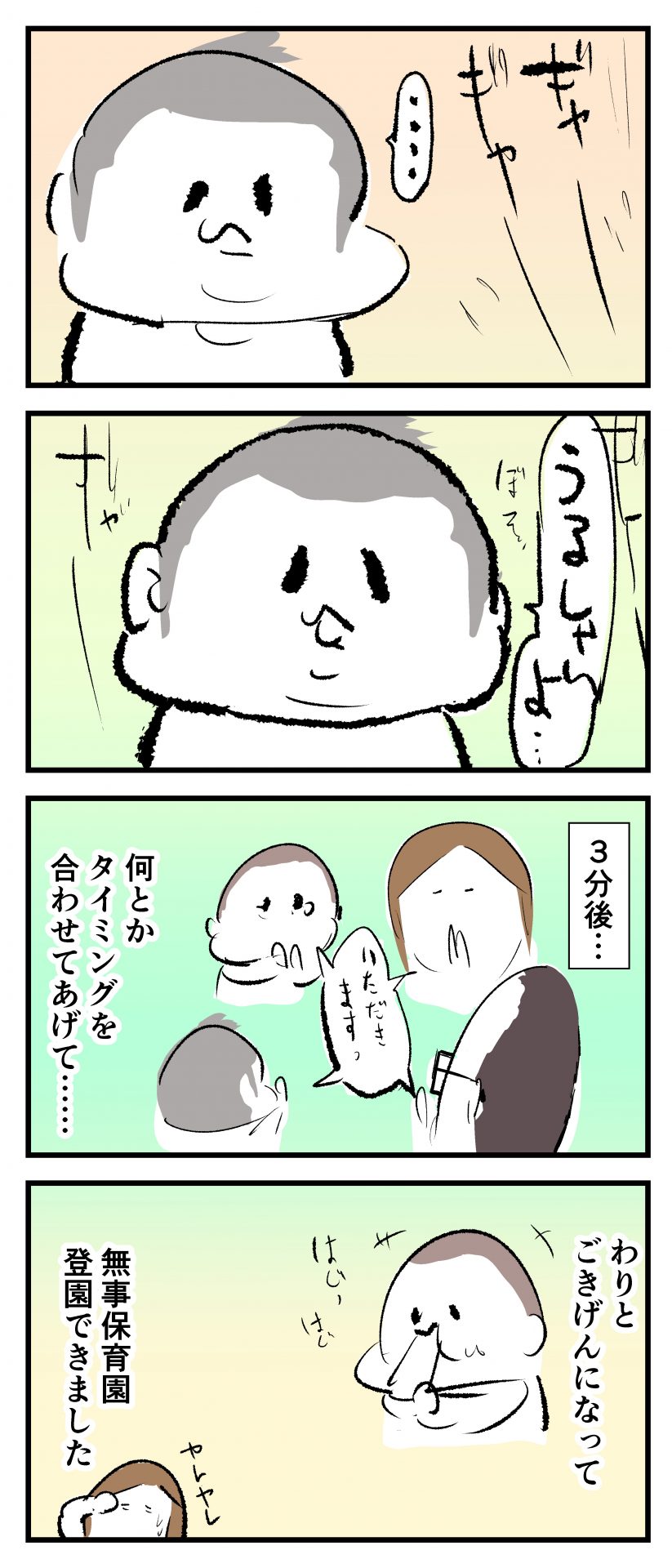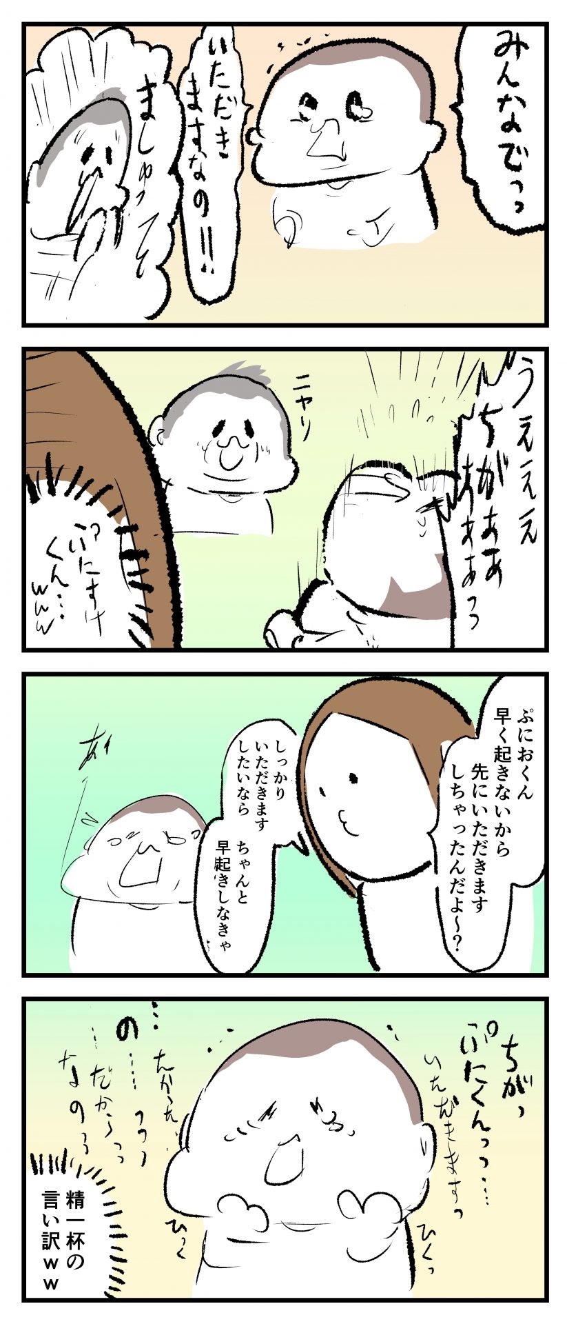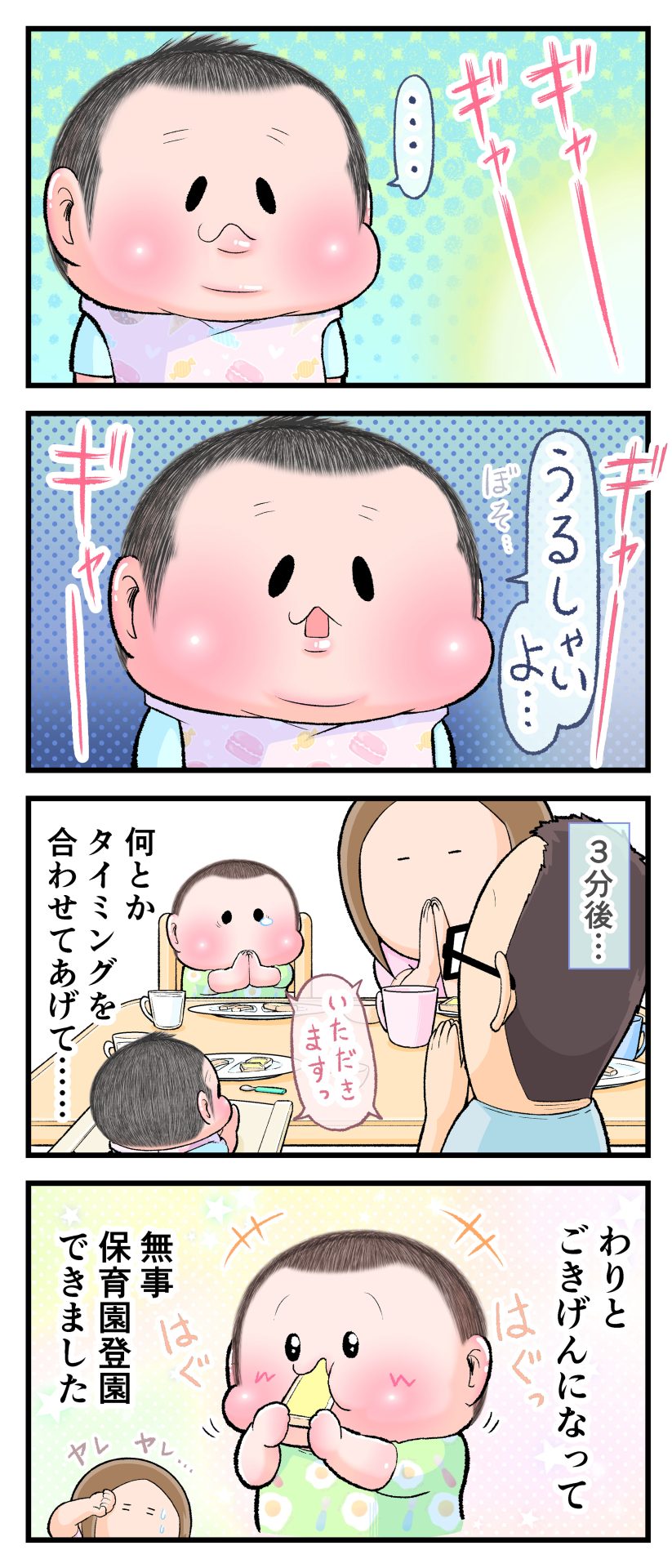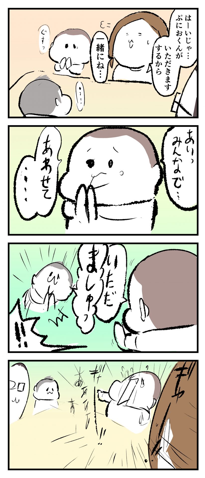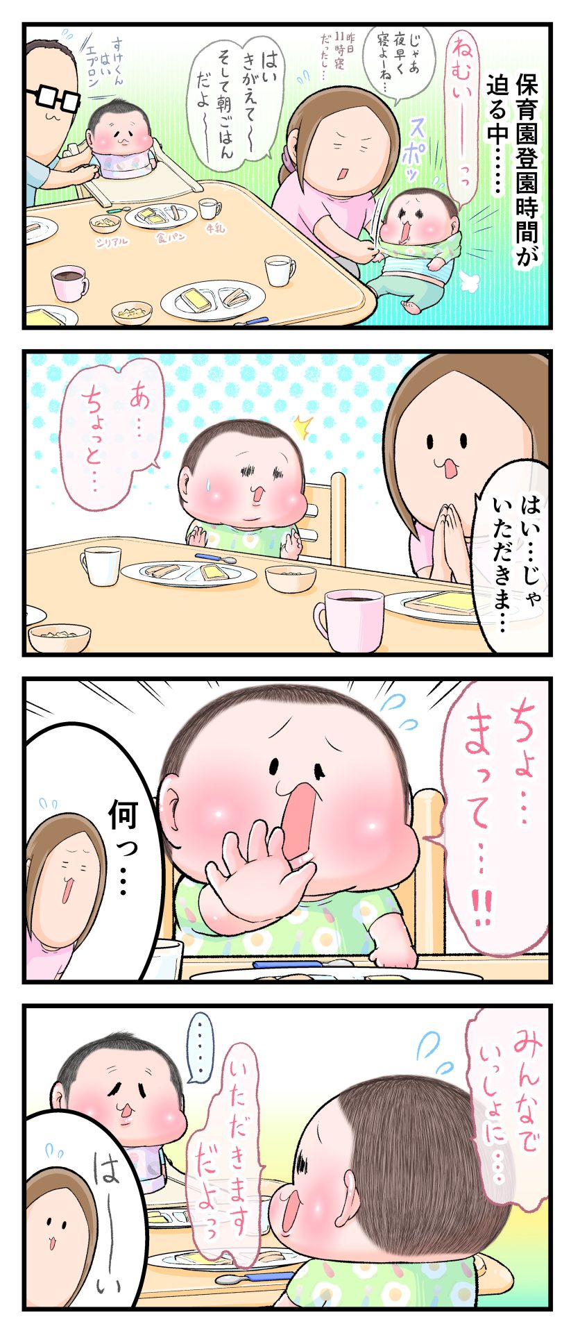 怒涛のいただきます2021.04.272歳 3歳 育児漫画 ぷにお:3歳7か月 ぷにすけ:2歳3ヶ月頃 広告 ラフ絵 広告 あとがきこんな感じで朝は色んな場面でバッタバタしてます(早くも体力ゲージがそがれてゆきます‥)。 6 同じカテゴリの記事 思わず二度聞き…!7歳ぷにすけの人生名言→からのギャップ ぷにおにとっての学校とは…?時間割より気になる“あれ” なにその内緒話…!給食のチーズドリアでぷにおが秘密にしたかったあるできごととは…!? #22 巻き起こせ!正の”時短”スパイラル!使い方でこんなに変わる、洗濯機のヒミツ 登校前のギリギリ時間!「待ってほしい」8歳が放った一言が強すぎた…! お母さんの誕生日、欲しいものは…?子どもたちに現実を突きつけられた話~授乳中の、胸が痛む一人時間 生後4ヶ月の赤ちゃんが会長すぎる…!ファミレスでの“会議みたいなしぐさ”がたまらない 生後2ヶ月の赤ちゃんと初ファミレスへ→まさかの「4対1席」に!?子連れ外食のコツも 「寒っ…!」7ヶ月赤ちゃん、ムチムチボディーを震わせててたまらなかった件 #21 テッカテカの君が尊い!はじめての育児で、ついマメにやっちゃう”ひと手間” スパゲティーニプニオニーニ☆8歳息子「目から謎のパスタ」コントの話 腹筋すご!もとの姿勢に戻ろうとする5ヶ月赤ちゃん 5ヶ月赤ちゃんの妹を見つめる兄がつい出た言葉…☆ 離乳食後ににおい…?6ヶ月赤ちゃんのニヤけ顔が何とも言えなかった 6ヶ月赤ちゃんがタグに夢中!ハムハムし尽くした結果… 6ヶ月ぷにみ。おすわりしながら、そっと見上げてくれたあの笑顔 #20 その「ちぱちぱ」は反則~!抱っこ紐の中で1歳息子がくすぐったい攻撃…! 5ヶ月ぷにみ、離乳食デビュー。初めての味への反応は…?③ 5ヶ月ぷにみ、離乳食デビュー。初めての味への反応は…?② 5ヶ月ぷにみ、離乳食デビュー。初めての味への反応は…?① 何かを味わってる?4ヶ月赤ちゃんのお口の動きが尊い件 なんだこの口の動きは…生後4ヶ月ぷにみ、もぐもぐを真似する 「こっち見て~☆」3ヶ月ぷにみ、授乳中のアイコンタクトが止まらない #19 妙に腰をくねらせる~!息子の「出してるよ」サインが、バリエーション豊富な件 ハイパーご機嫌おっぱいタイム☆4ヶ月ぷにみのあんよの動き 5ヶ月ぷにみ、コロコロからのこの動きがたまらない 立たせると笑う!?立つのが好きすぎる3〜4ヶ月のぷにみ 2ヶ月で立ちたい!?おむつ替え中に足ピーンするぷにみ ぷにみ会長にメロメロすぎるぷにすけ社長㉑ #18 「子育てに理解ある職場か」だけが判断基準じゃない。それでも、働き方を変えた理由 かわいい乳歯の破壊力…☆ 歯じめまして!が見えた瞬間…急遽閉ざされた小さなお口 ザ・貫禄 赤ちゃんの笑いの合格音、今日も鳴りました タオルで拭かれてるだけなのに可愛さが限界突破する赤ちゃん なぜか脚マッサージが効いた件 #17 「お母さんと寝よう…?」この後、3歳息子の”あざとさ”にキュンとなる…♡ 思い出のぬいぐるみが繋ぐ兄妹の時間 まんまるなお口☆ 音読の宿題中に起きた言い間違い事件 トイレ直前の舞い 鷲掴み♡ #16 「おかあさん、もすもすしよう!」息子からの謎の誘い☆尊さで心がはちきれそうになった件 ぷにおが感じた、ぷにみのほっぺの感触 ぷにおが思うぷにみの将来 謎のあっちむいてほいゲーム 脱衣所バーテンダー 気持ちだけでも嬉しかった件 そもそもぷにすけ ぷにみ会長にメロメロすぎるぷにすけ社長⑳ #15 深夜の授乳中、旦那からの「お茶とアヒルの差し入れ」が最高に嬉しかった理由 ぷにみ会長にメロメロすぎるぷにすけ社長⑲ ぷにみ会長にメロメロすぎるぷにすけ社長⑱ ぷにみ会長にメロメロすぎるぷにすけ社長⑰ ぷにみ会長にメロメロすぎるぷにすけ社長⑯ 小さな体からすごい音!ぷにみのびっくりサウンド! ぷにみ会長にメロメロすぎるぷにすけ社長⑮ ぷにみ会長にメロメロすぎるぷにすけ社長⑭ ぷにみ会長にメロメロすぎるぷにすけ社長⑬ ぷにみ会長にメロメロすぎるぷにすけ社長⑫ ぷにみ会長にメロメロすぎるぷにすけ社長⑪ ぷにみ会長にメロメロすぎるぷにすけ社長⑩ #14 緊張してる?泣きそうかも~!ドキドキの「はじめてのバースデーフォト」体験 ぷにみ会長にメロメロすぎるぷにすけ社長⑨ ぷにみ会長にメロメロすぎるぷにすけ社長⑧ ぷにみ会長にメロメロすぎるぷにすけ社長⑦ ぷにみ会長にメロメロすぎるぷにすけ社長⑥ ぷにみ会長にメロメロすぎるぷにすけ社長⑤ #13 友人おすすめの”出産時の便利グッズ”。半信半疑で買ったら…本当に大活躍だった! ぷにみ会長にメロメロすぎるぷにすけ社長④ ぷにみ会長にメロメロすぎるぷにすけ社長③ ぷにみ会長にメロメロすぎるぷにすけ社長② ぷにみ会長にメロメロすぎるぷにすけ社長① ノリノリぷにお 寝かしつけ中のパパ…ぷにみの小さなおててがつかんだものとは…☆ #12 「さっきはゴメンね…!」1歳次男の”おわびの気持ち”がなかなかシュールだった件☆ 起動した瞬間(その2) ダジャレにハマるぷにすけ、「校長先生」のくだりが秀