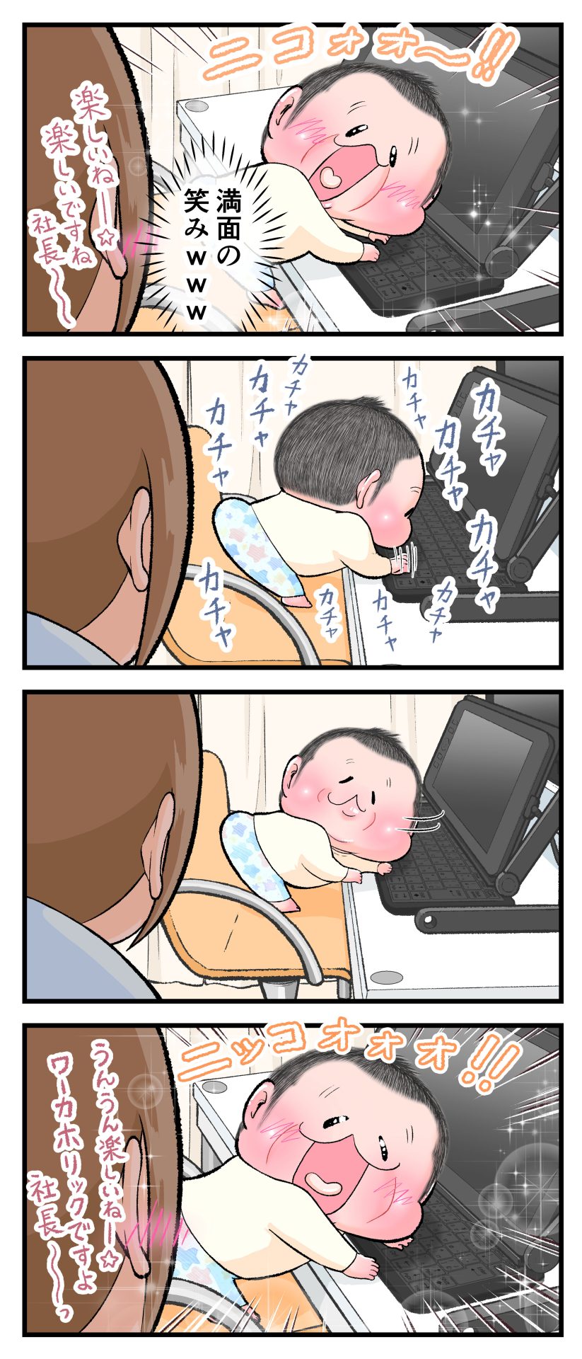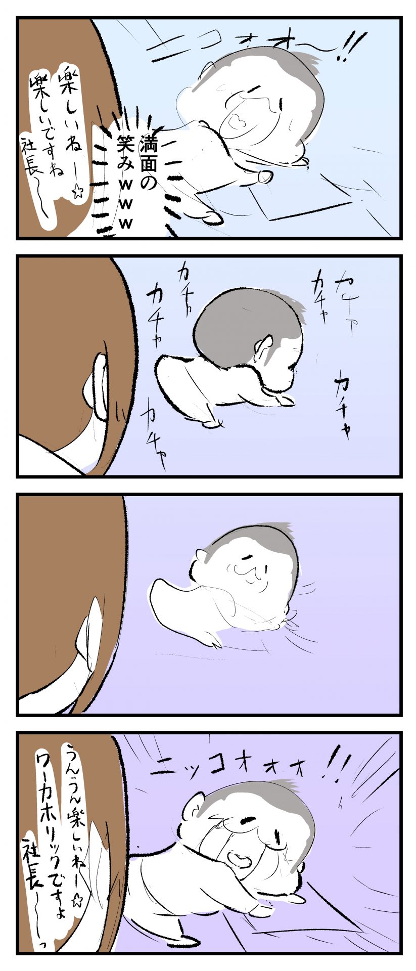 ぷにすけのお仕事②2021.05.061歳 育児漫画 ぷにすけ:1歳10ヶ月頃 ラフ絵 あとがき今までで一番の笑顔だったかもしれませんw 4 同じカテゴリの記事 思わず二度聞き…!7歳ぷにすけの人生名言→からのギャップ ぷにおにとっての学校とは…?時間割より気になる“あれ” なにその内緒話…!給食のチーズドリアでぷにおが秘密にしたかったあるできごととは…!? #22 巻き起こせ!正の”時短”スパイラル!使い方でこんなに変わる、洗濯機のヒミツ 登校前のギリギリ時間!「待ってほしい」8歳が放った一言が強すぎた…! お母さんの誕生日、欲しいものは…?子どもたちに現実を突きつけられた話~授乳中の、胸が痛む一人時間 生後4ヶ月の赤ちゃんが会長すぎる…!ファミレスでの“会議みたいなしぐさ”がたまらない 生後2ヶ月の赤ちゃんと初ファミレスへ→まさかの「4対1席」に!?子連れ外食のコツも 「寒っ…!」7ヶ月赤ちゃん、ムチムチボディーを震わせててたまらなかった件 #21 テッカテカの君が尊い!はじめての育児で、ついマメにやっちゃう”ひと手間” スパゲティーニプニオニーニ☆8歳息子「目から謎のパスタ」コントの話 腹筋すご!もとの姿勢に戻ろうとする5ヶ月赤ちゃん 5ヶ月赤ちゃんの妹を見つめる兄がつい出た言葉…☆ 離乳食後ににおい…?6ヶ月赤ちゃんのニヤけ顔が何とも言えなかった 6ヶ月赤ちゃんがタグに夢中!ハムハムし尽くした結果… 6ヶ月ぷにみ。おすわりしながら、そっと見上げてくれたあの笑顔 #20 その「ちぱちぱ」は反則~!抱っこ紐の中で1歳息子がくすぐったい攻撃…! 5ヶ月ぷにみ、離乳食デビュー。初めての味への反応は…?③ 5ヶ月ぷにみ、離乳食デビュー。初めての味への反応は…?② 5ヶ月ぷにみ、離乳食デビュー。初めての味への反応は…?① 何かを味わってる?4ヶ月赤ちゃんのお口の動きが尊い件 なんだこの口の動きは…生後4ヶ月ぷにみ、もぐもぐを真似する 「こっち見て~☆」3ヶ月ぷにみ、授乳中のアイコンタクトが止まらない #19 妙に腰をくねらせる~!息子の「出してるよ」サインが、バリエーション豊富な件 ハイパーご機嫌おっぱいタイム☆4ヶ月ぷにみのあんよの動き 5ヶ月ぷにみ、コロコロからのこの動きがたまらない 立たせると笑う!?立つのが好きすぎる3〜4ヶ月のぷにみ 2ヶ月で立ちたい!?おむつ替え中に足ピーンするぷにみ ぷにみ会長にメロメロすぎるぷにすけ社長㉑ #18 「子育てに理解ある職場か」だけが判断基準じゃない。それでも、働き方を変えた理由 かわいい乳歯の破壊力…☆ 歯じめまして!が見えた瞬間…急遽閉ざされた小さなお口 ザ・貫禄 赤ちゃんの笑いの合格音、今日も鳴りました タオルで拭かれてるだけなのに可愛さが限界突破する赤ちゃん なぜか脚マッサージが効いた件 #17 「お母さんと寝よう…?」この後、3歳息子の”あざとさ”にキュンとなる…♡ 思い出のぬいぐるみが繋ぐ兄妹の時間 まんまるなお口☆ 音読の宿題中に起きた言い間違い事件 トイレ直前の舞い 鷲掴み♡ #16 「おかあさん、もすもすしよう!」息子からの謎の誘い☆尊さで心がはちきれそうになった件 ぷにおが感じた、ぷにみのほっぺの感触 ぷにおが思うぷにみの将来 謎のあっちむいてほいゲーム 脱衣所バーテンダー 気持ちだけでも嬉しかった件 そもそもぷにすけ ぷにみ会長にメロメロすぎるぷにすけ社長⑳ #15 深夜の授乳中、旦那からの「お茶とアヒルの差し入れ」が最高に嬉しかった理由 ぷにみ会長にメロメロすぎるぷにすけ社長⑲ ぷにみ会長にメロメロすぎるぷにすけ社長⑱ ぷにみ会長にメロメロすぎるぷにすけ社長⑰ ぷにみ会長にメロメロすぎるぷにすけ社長⑯ 小さな体からすごい音!ぷにみのびっくりサウンド! ぷにみ会長にメロメロすぎるぷにすけ社長⑮ ぷにみ会長にメロメロすぎるぷにすけ社長⑭ ぷにみ会長にメロメロすぎるぷにすけ社長⑬ ぷにみ会長にメロメロすぎるぷにすけ社長⑫ ぷにみ会長にメロメロすぎるぷにすけ社長⑪ ぷにみ会長にメロメロすぎるぷにすけ社長⑩ #14 緊張してる?泣きそうかも~!ドキドキの「はじめてのバースデーフォト」体験 ぷにみ会長にメロメロすぎるぷにすけ社長⑨ ぷにみ会長にメロメロすぎるぷにすけ社長⑧ ぷにみ会長にメロメロすぎるぷにすけ社長⑦ ぷにみ会長にメロメロすぎるぷにすけ社長⑥ ぷにみ会長にメロメロすぎるぷにすけ社長⑤ #13 友人おすすめの”出産時の便利グッズ”。半信半疑で買ったら…本当に大活躍だった! ぷにみ会長にメロメロすぎるぷにすけ社長④ ぷにみ会長にメロメロすぎるぷにすけ社長③ ぷにみ会長にメロメロすぎるぷにすけ社長② ぷにみ会長にメロメロすぎるぷにすけ社長① ノリノリぷにお 寝かしつけ中のパパ…ぷにみの小さなおててがつかんだものとは…☆ #12 「さっきはゴメンね…!」1歳次男の”おわびの気持ち”がなかなかシュールだった件☆ 起動した瞬間(その2) ダジャレにハマるぷにすけ、「校長先生」のくだりが秀逸爆笑展開…! お腹いっぱいになった新生児の反応がたくましすぎた件 #11 「あ~ぶ