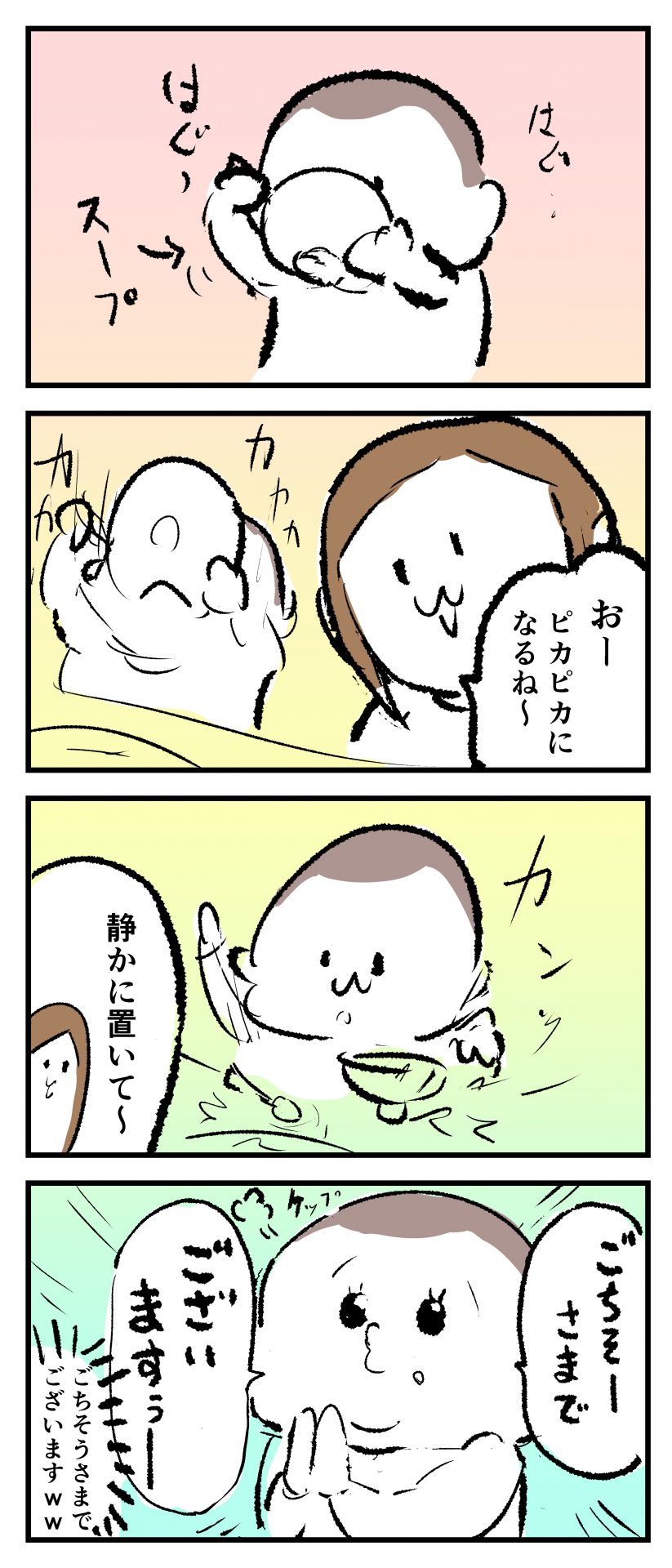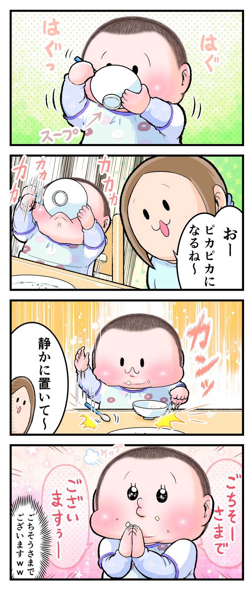 ごちそうさまでございますぅ~2021.05.073歳 育児漫画 ぷにお:3歳7ヶ月頃 ラフ絵 あとがき 食べ方とかこちらが注意するようになってきた時期ですが、そこだけお上品(?)なのかいっ…とツッコミたくなる時がよくあります。あとこういう変な敬語がたまに出るので聞き逃せませんw 3 同じカテゴリの記事 思わず二度聞き…!7歳ぷにすけの人生名言→からのギャップ ぷにおにとっての学校とは…?時間割より気になる“あれ” なにその内緒話…!給食のチーズドリアでぷにおが秘密にしたかったあるできごととは…!? #22 巻き起こせ!正の”時短”スパイラル!使い方でこんなに変わる、洗濯機のヒミツ 登校前のギリギリ時間!「待ってほしい」8歳が放った一言が強すぎた…! お母さんの誕生日、欲しいものは…?子どもたちに現実を突きつけられた話~授乳中の、胸が痛む一人時間 生後4ヶ月の赤ちゃんが会長すぎる…!ファミレスでの“会議みたいなしぐさ”がたまらない 生後2ヶ月の赤ちゃんと初ファミレスへ→まさかの「4対1席」に!?子連れ外食のコツも 「寒っ…!」7ヶ月赤ちゃん、ムチムチボディーを震わせててたまらなかった件 #21 テッカテカの君が尊い!はじめての育児で、ついマメにやっちゃう”ひと手間” スパゲティーニプニオニーニ☆8歳息子「目から謎のパスタ」コントの話 腹筋すご!もとの姿勢に戻ろうとする5ヶ月赤ちゃん 5ヶ月赤ちゃんの妹を見つめる兄がつい出た言葉…☆ 離乳食後ににおい…?6ヶ月赤ちゃんのニヤけ顔が何とも言えなかった 6ヶ月赤ちゃんがタグに夢中!ハムハムし尽くした結果… 6ヶ月ぷにみ。おすわりしながら、そっと見上げてくれたあの笑顔 #20 その「ちぱちぱ」は反則~!抱っこ紐の中で1歳息子がくすぐったい攻撃…! 5ヶ月ぷにみ、離乳食デビュー。初めての味への反応は…?③ 5ヶ月ぷにみ、離乳食デビュー。初めての味への反応は…?② 5ヶ月ぷにみ、離乳食デビュー。初めての味への反応は…?① 何かを味わってる?4ヶ月赤ちゃんのお口の動きが尊い件 なんだこの口の動きは…生後4ヶ月ぷにみ、もぐもぐを真似する 「こっち見て~☆」3ヶ月ぷにみ、授乳中のアイコンタクトが止まらない #19 妙に腰をくねらせる~!息子の「出してるよ」サインが、バリエーション豊富な件 ハイパーご機嫌おっぱいタイム☆4ヶ月ぷにみのあんよの動き 5ヶ月ぷにみ、コロコロからのこの動きがたまらない 立たせると笑う!?立つのが好きすぎる3〜4ヶ月のぷにみ 2ヶ月で立ちたい!?おむつ替え中に足ピーンするぷにみ ぷにみ会長にメロメロすぎるぷにすけ社長㉑ #18 「子育てに理解ある職場か」だけが判断基準じゃない。それでも、働き方を変えた理由 かわいい乳歯の破壊力…☆ 歯じめまして!が見えた瞬間…急遽閉ざされた小さなお口 ザ・貫禄 赤ちゃんの笑いの合格音、今日も鳴りました タオルで拭かれてるだけなのに可愛さが限界突破する赤ちゃん なぜか脚マッサージが効いた件 #17 「お母さんと寝よう…?」この後、3歳息子の”あざとさ”にキュンとなる…♡ 思い出のぬいぐるみが繋ぐ兄妹の時間 まんまるなお口☆ 音読の宿題中に起きた言い間違い事件 トイレ直前の舞い 鷲掴み♡ #16 「おかあさん、もすもすしよう!」息子からの謎の誘い☆尊さで心がはちきれそうになった件 ぷにおが感じた、ぷにみのほっぺの感触 ぷにおが思うぷにみの将来 謎のあっちむいてほいゲーム 脱衣所バーテンダー 気持ちだけでも嬉しかった件 そもそもぷにすけ ぷにみ会長にメロメロすぎるぷにすけ社長⑳ #15 深夜の授乳中、旦那からの「お茶とアヒルの差し入れ」が最高に嬉しかった理由 ぷにみ会長にメロメロすぎるぷにすけ社長⑲ ぷにみ会長にメロメロすぎるぷにすけ社長⑱ ぷにみ会長にメロメロすぎるぷにすけ社長⑰ ぷにみ会長にメロメロすぎるぷにすけ社長⑯ 小さな体からすごい音!ぷにみのびっくりサウンド! ぷにみ会長にメロメロすぎるぷにすけ社長⑮ ぷにみ会長にメロメロすぎるぷにすけ社長⑭ ぷにみ会長にメロメロすぎるぷにすけ社長⑬ ぷにみ会長にメロメロすぎるぷにすけ社長⑫ ぷにみ会長にメロメロすぎるぷにすけ社長⑪ ぷにみ会長にメロメロすぎるぷにすけ社長⑩ #14 緊張してる?泣きそうかも~!ドキドキの「はじめてのバースデーフォト」体験 ぷにみ会長にメロメロすぎるぷにすけ社長⑨ ぷにみ会長にメロメロすぎるぷにすけ社長⑧ ぷにみ会長にメロメロすぎるぷにすけ社長⑦ ぷにみ会長にメロメロすぎるぷにすけ社長⑥ ぷにみ会長にメロメロすぎるぷにすけ社長⑤ #13 友人おすすめの”出産時の便利グッズ”。半信半疑で買ったら…本当に大活躍だった! ぷにみ会長にメロメロすぎるぷにすけ社長④ ぷにみ会長にメロメロすぎるぷにすけ社長③ ぷにみ会長にメロメロすぎるぷにすけ社長② ぷにみ会長にメロメロすぎるぷにすけ社長① ノリノリぷにお 寝かしつけ中のパパ…ぷにみの小さなおててがつかんだものとは…☆ #12 「さっきはゴメンね…!」1歳次男の”おわびの気持ち”がなかなかシュールだった件☆ 起動し