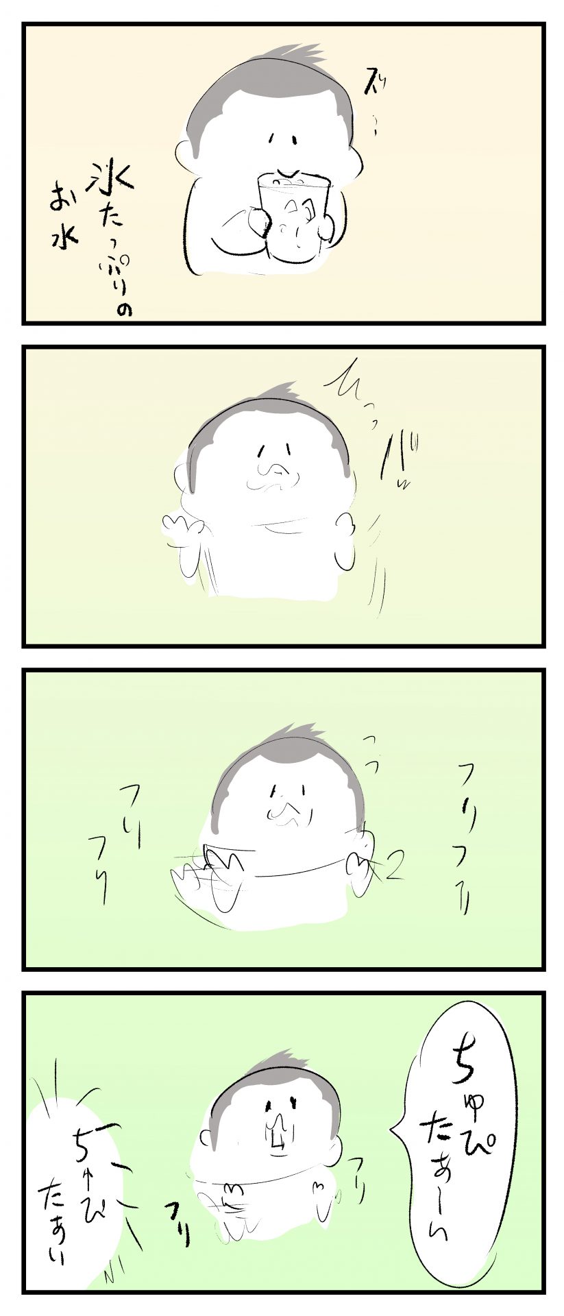 冷たい時~2021.05.081歳 育児漫画 ぷにすけ:1歳8ヶ月頃 ラフ絵 あとがき2歳くらいまでは冷たいものを食べた時は「ちゅぴたい」と言う事が続いていましたが、2歳3ヶ月頃から「ちべたい」になり、気づいた頃には普通に「つめたい」と言うようになっていたので、時折「ちゅぴたい」の時期を懐古していますw 4 同じカテゴリの記事 思わず二度聞き…!7歳ぷにすけの人生名言→からのギャップ ぷにおにとっての学校とは…?時間割より気になる“あれ” なにその内緒話…!給食のチーズドリアでぷにおが秘密にしたかったあるできごととは…!? #22 巻き起こせ!正の”時短”スパイラル!使い方でこんなに変わる、洗濯機のヒミツ 登校前のギリギリ時間!「待ってほしい」8歳が放った一言が強すぎた…! お母さんの誕生日、欲しいものは…?子どもたちに現実を突きつけられた話~授乳中の、胸が痛む一人時間 生後4ヶ月の赤ちゃんが会長すぎる…!ファミレスでの“会議みたいなしぐさ”がたまらない 生後2ヶ月の赤ちゃんと初ファミレスへ→まさかの「4対1席」に!?子連れ外食のコツも 「寒っ…!」7ヶ月赤ちゃん、ムチムチボディーを震わせててたまらなかった件 #21 テッカテカの君が尊い!はじめての育児で、ついマメにやっちゃう”ひと手間” スパゲティーニプニオニーニ☆8歳息子「目から謎のパスタ」コントの話 腹筋すご!もとの姿勢に戻ろうとする5ヶ月赤ちゃん 5ヶ月赤ちゃんの妹を見つめる兄がつい出た言葉…☆ 離乳食後ににおい…?6ヶ月赤ちゃんのニヤけ顔が何とも言えなかった 6ヶ月赤ちゃんがタグに夢中!ハムハムし尽くした結果… 6ヶ月ぷにみ。おすわりしながら、そっと見上げてくれたあの笑顔 #20 その「ちぱちぱ」は反則~!抱っこ紐の中で1歳息子がくすぐったい攻撃…! 5ヶ月ぷにみ、離乳食デビュー。初めての味への反応は…?③ 5ヶ月ぷにみ、離乳食デビュー。初めての味への反応は…?② 5ヶ月ぷにみ、離乳食デビュー。初めての味への反応は…?① 何かを味わってる?4ヶ月赤ちゃんのお口の動きが尊い件 なんだこの口の動きは…生後4ヶ月ぷにみ、もぐもぐを真似する 「こっち見て~☆」3ヶ月ぷにみ、授乳中のアイコンタクトが止まらない #19 妙に腰をくねらせる~!息子の「出してるよ」サインが、バリエーション豊富な件 ハイパーご機嫌おっぱいタイム☆4ヶ月ぷにみのあんよの動き 5ヶ月ぷにみ、コロコロからのこの動きがたまらない 立たせると笑う!?立つのが好きすぎる3〜4ヶ月のぷにみ 2ヶ月で立ちたい!?おむつ替え中に足ピーンするぷにみ ぷにみ会長にメロメロすぎるぷにすけ社長㉑ #18 「子育てに理解ある職場か」だけが判断基準じゃない。それでも、働き方を変えた理由 かわいい乳歯の破壊力…☆ 歯じめまして!が見えた瞬間…急遽閉ざされた小さなお口 ザ・貫禄 赤ちゃんの笑いの合格音、今日も鳴りました タオルで拭かれてるだけなのに可愛さが限界突破する赤ちゃん なぜか脚マッサージが効いた件 #17 「お母さんと寝よう…?」この後、3歳息子の”あざとさ”にキュンとなる…♡ 思い出のぬいぐるみが繋ぐ兄妹の時間 まんまるなお口☆ 音読の宿題中に起きた言い間違い事件 トイレ直前の舞い 鷲掴み♡ #16 「おかあさん、もすもすしよう!」息子からの謎の誘い☆尊さで心がはちきれそうになった件 ぷにおが感じた、ぷにみのほっぺの感触 ぷにおが思うぷにみの将来 謎のあっちむいてほいゲーム 脱衣所バーテンダー 気持ちだけでも嬉しかった件 そもそもぷにすけ ぷにみ会長にメロメロすぎるぷにすけ社長⑳ #15 深夜の授乳中、旦那からの「お茶とアヒルの差し入れ」が最高に嬉しかった理由 ぷにみ会長にメロメロすぎるぷにすけ社長⑲ ぷにみ会長にメロメロすぎるぷにすけ社長⑱ ぷにみ会長にメロメロすぎるぷにすけ社長⑰ ぷにみ会長にメロメロすぎるぷにすけ社長⑯ 小さな体からすごい音!ぷにみのびっくりサウンド! ぷにみ会長にメロメロすぎるぷにすけ社長⑮ ぷにみ会長にメロメロすぎるぷにすけ社長⑭ ぷにみ会長にメロメロすぎるぷにすけ社長⑬ ぷにみ会長にメロメロすぎるぷにすけ社長⑫ ぷにみ会長にメロメロすぎるぷにすけ社長⑪ ぷにみ会長にメロメロすぎるぷにすけ社長⑩ #14 緊張してる?泣きそうかも~!ドキドキの「はじめてのバースデーフォト」体験 ぷにみ会長にメロメロすぎるぷにすけ社長⑨ ぷにみ会長にメロメロすぎるぷにすけ社長⑧ ぷにみ会長にメロメロすぎるぷにすけ社長⑦ ぷにみ会長にメロメロすぎるぷにすけ社長⑥ ぷにみ会長にメロメロすぎるぷにすけ社長⑤ #13 友人おすすめの”出産時の便利グッズ”。半信半疑で買ったら…本当に大活躍だった! ぷにみ会長にメロメロすぎるぷにすけ社長④ ぷにみ会長にメロメロすぎるぷにすけ社長③ ぷにみ会長にメロメロすぎるぷにすけ社長② ぷにみ会長にメロメロすぎるぷにすけ社長① ノリノリぷにお 寝かしつけ中のパパ…ぷにみの小さなおててがつかんだものとは…☆ #12 「さっきはゴメンね…!」1歳次男の”おわびの気持ち”がなかな