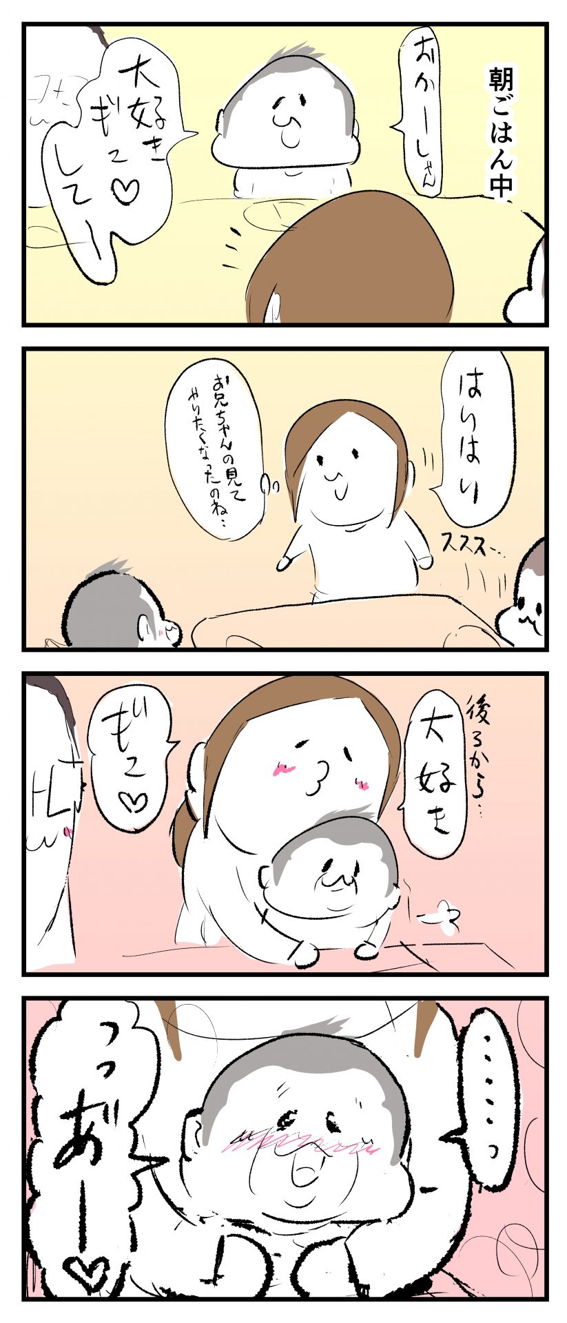 僕にも大好きギュッして♡2021.06.032歳 育児漫画 ぷにすけ:2歳3ヶ月頃 ラフ絵 あとがきおじさんが温泉に浸かった瞬間の「っっあ”~あったまる~」って感じの言い方でしたw 5 同じカテゴリの記事 思わず二度聞き…!7歳ぷにすけの人生名言→からのギャップ ぷにおにとっての学校とは…?時間割より気になる“あれ” なにその内緒話…!給食のチーズドリアでぷにおが秘密にしたかったあるできごととは…!? #22 巻き起こせ!正の”時短”スパイラル!使い方でこんなに変わる、洗濯機のヒミツ 登校前のギリギリ時間!「待ってほしい」8歳が放った一言が強すぎた…! お母さんの誕生日、欲しいものは…?子どもたちに現実を突きつけられた話~授乳中の、胸が痛む一人時間 生後4ヶ月の赤ちゃんが会長すぎる…!ファミレスでの“会議みたいなしぐさ”がたまらない 生後2ヶ月の赤ちゃんと初ファミレスへ→まさかの「4対1席」に!?子連れ外食のコツも 「寒っ…!」7ヶ月赤ちゃん、ムチムチボディーを震わせててたまらなかった件 #21 テッカテカの君が尊い!はじめての育児で、ついマメにやっちゃう”ひと手間” スパゲティーニプニオニーニ☆8歳息子「目から謎のパスタ」コントの話 腹筋すご!もとの姿勢に戻ろうとする5ヶ月赤ちゃん 5ヶ月赤ちゃんの妹を見つめる兄がつい出た言葉…☆ 離乳食後ににおい…?6ヶ月赤ちゃんのニヤけ顔が何とも言えなかった 6ヶ月赤ちゃんがタグに夢中!ハムハムし尽くした結果… 6ヶ月ぷにみ。おすわりしながら、そっと見上げてくれたあの笑顔 #20 その「ちぱちぱ」は反則~!抱っこ紐の中で1歳息子がくすぐったい攻撃…! 5ヶ月ぷにみ、離乳食デビュー。初めての味への反応は…?③ 5ヶ月ぷにみ、離乳食デビュー。初めての味への反応は…?② 5ヶ月ぷにみ、離乳食デビュー。初めての味への反応は…?① 何かを味わってる?4ヶ月赤ちゃんのお口の動きが尊い件 なんだこの口の動きは…生後4ヶ月ぷにみ、もぐもぐを真似する 「こっち見て~☆」3ヶ月ぷにみ、授乳中のアイコンタクトが止まらない #19 妙に腰をくねらせる~!息子の「出してるよ」サインが、バリエーション豊富な件 ハイパーご機嫌おっぱいタイム☆4ヶ月ぷにみのあんよの動き 5ヶ月ぷにみ、コロコロからのこの動きがたまらない 立たせると笑う!?立つのが好きすぎる3〜4ヶ月のぷにみ 2ヶ月で立ちたい!?おむつ替え中に足ピーンするぷにみ ぷにみ会長にメロメロすぎるぷにすけ社長㉑ #18 「子育てに理解ある職場か」だけが判断基準じゃない。それでも、働き方を変えた理由 かわいい乳歯の破壊力…☆ 歯じめまして!が見えた瞬間…急遽閉ざされた小さなお口 ザ・貫禄 赤ちゃんの笑いの合格音、今日も鳴りました タオルで拭かれてるだけなのに可愛さが限界突破する赤ちゃん なぜか脚マッサージが効いた件 #17 「お母さんと寝よう…?」この後、3歳息子の”あざとさ”にキュンとなる…♡ 思い出のぬいぐるみが繋ぐ兄妹の時間 まんまるなお口☆ 音読の宿題中に起きた言い間違い事件 トイレ直前の舞い 鷲掴み♡ #16 「おかあさん、もすもすしよう!」息子からの謎の誘い☆尊さで心がはちきれそうになった件 ぷにおが感じた、ぷにみのほっぺの感触 ぷにおが思うぷにみの将来 謎のあっちむいてほいゲーム 脱衣所バーテンダー 気持ちだけでも嬉しかった件 そもそもぷにすけ ぷにみ会長にメロメロすぎるぷにすけ社長⑳ #15 深夜の授乳中、旦那からの「お茶とアヒルの差し入れ」が最高に嬉しかった理由 ぷにみ会長にメロメロすぎるぷにすけ社長⑲ ぷにみ会長にメロメロすぎるぷにすけ社長⑱ ぷにみ会長にメロメロすぎるぷにすけ社長⑰ ぷにみ会長にメロメロすぎるぷにすけ社長⑯ 小さな体からすごい音!ぷにみのびっくりサウンド! ぷにみ会長にメロメロすぎるぷにすけ社長⑮ ぷにみ会長にメロメロすぎるぷにすけ社長⑭ ぷにみ会長にメロメロすぎるぷにすけ社長⑬ ぷにみ会長にメロメロすぎるぷにすけ社長⑫ ぷにみ会長にメロメロすぎるぷにすけ社長⑪ ぷにみ会長にメロメロすぎるぷにすけ社長⑩ #14 緊張してる?泣きそうかも~!ドキドキの「はじめてのバースデーフォト」体験 ぷにみ会長にメロメロすぎるぷにすけ社長⑨ ぷにみ会長にメロメロすぎるぷにすけ社長⑧ ぷにみ会長にメロメロすぎるぷにすけ社長⑦ ぷにみ会長にメロメロすぎるぷにすけ社長⑥ ぷにみ会長にメロメロすぎるぷにすけ社長⑤ #13 友人おすすめの”出産時の便利グッズ”。半信半疑で買ったら…本当に大活躍だった! ぷにみ会長にメロメロすぎるぷにすけ社長④ ぷにみ会長にメロメロすぎるぷにすけ社長③ ぷにみ会長にメロメロすぎるぷにすけ社長② ぷにみ会長にメロメロすぎるぷにすけ社長① ノリノリぷにお 寝かしつけ中のパパ…ぷにみの小さなおててがつかんだものとは…☆ #12 「さっきはゴメンね…!」1歳次男の”おわびの気持ち”がなかなかシュールだった件☆ 起動した瞬間(その2) ダジャレにハマるぷにすけ、「校長先生」のくだりが秀逸爆笑展開…! お腹いっぱいになっ