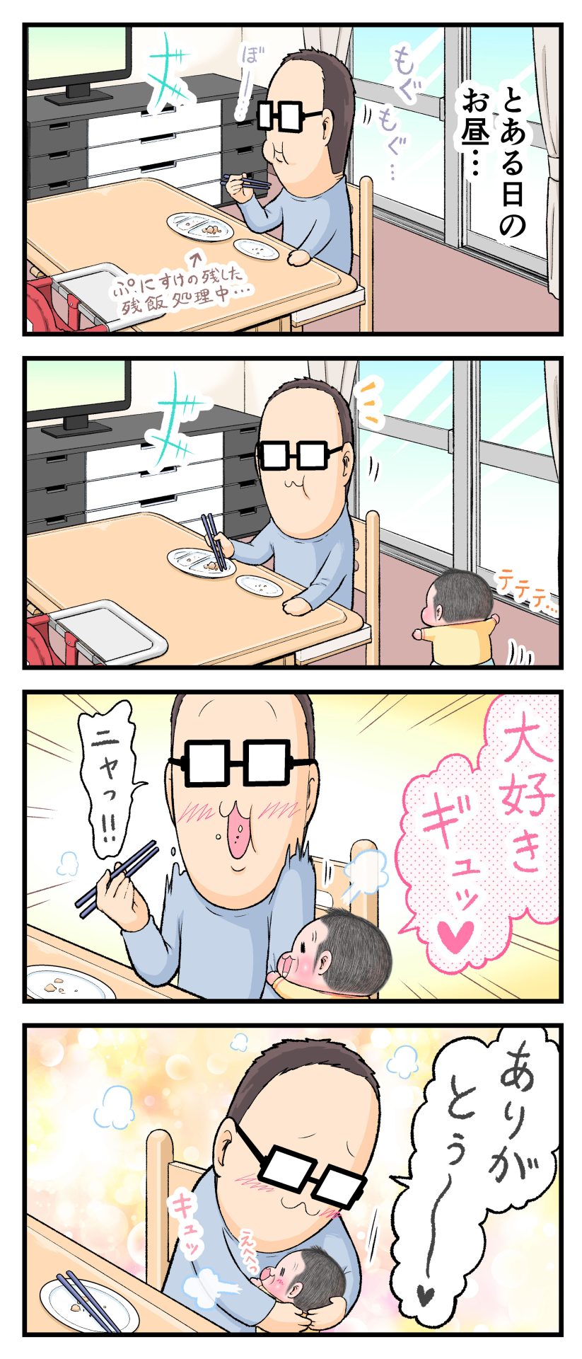 お父さんにもギュッ♡2021.06.042歳 育児漫画 ぷにすけ:2歳3ヶ月頃 ラフ絵 あとがき不意打ち喰らったお父さんは動揺しながら甲高い声になっていましたw 5 同じカテゴリの記事 思わず二度聞き…!7歳ぷにすけの人生名言→からのギャップ ぷにおにとっての学校とは…?時間割より気になる“あれ” なにその内緒話…!給食のチーズドリアでぷにおが秘密にしたかったあるできごととは…!? #22 巻き起こせ!正の”時短”スパイラル!使い方でこんなに変わる、洗濯機のヒミツ 登校前のギリギリ時間!「待ってほしい」8歳が放った一言が強すぎた…! お母さんの誕生日、欲しいものは…?子どもたちに現実を突きつけられた話~授乳中の、胸が痛む一人時間 生後4ヶ月の赤ちゃんが会長すぎる…!ファミレスでの“会議みたいなしぐさ”がたまらない 生後2ヶ月の赤ちゃんと初ファミレスへ→まさかの「4対1席」に!?子連れ外食のコツも 「寒っ…!」7ヶ月赤ちゃん、ムチムチボディーを震わせててたまらなかった件 #21 テッカテカの君が尊い!はじめての育児で、ついマメにやっちゃう”ひと手間” スパゲティーニプニオニーニ☆8歳息子「目から謎のパスタ」コントの話 腹筋すご!もとの姿勢に戻ろうとする5ヶ月赤ちゃん 5ヶ月赤ちゃんの妹を見つめる兄がつい出た言葉…☆ 離乳食後ににおい…?6ヶ月赤ちゃんのニヤけ顔が何とも言えなかった 6ヶ月赤ちゃんがタグに夢中!ハムハムし尽くした結果… 6ヶ月ぷにみ。おすわりしながら、そっと見上げてくれたあの笑顔 #20 その「ちぱちぱ」は反則~!抱っこ紐の中で1歳息子がくすぐったい攻撃…! 5ヶ月ぷにみ、離乳食デビュー。初めての味への反応は…?③ 5ヶ月ぷにみ、離乳食デビュー。初めての味への反応は…?② 5ヶ月ぷにみ、離乳食デビュー。初めての味への反応は…?① 何かを味わってる?4ヶ月赤ちゃんのお口の動きが尊い件 なんだこの口の動きは…生後4ヶ月ぷにみ、もぐもぐを真似する 「こっち見て~☆」3ヶ月ぷにみ、授乳中のアイコンタクトが止まらない #19 妙に腰をくねらせる~!息子の「出してるよ」サインが、バリエーション豊富な件 ハイパーご機嫌おっぱいタイム☆4ヶ月ぷにみのあんよの動き 5ヶ月ぷにみ、コロコロからのこの動きがたまらない 立たせると笑う!?立つのが好きすぎる3〜4ヶ月のぷにみ 2ヶ月で立ちたい!?おむつ替え中に足ピーンするぷにみ ぷにみ会長にメロメロすぎるぷにすけ社長㉑ #18 「子育てに理解ある職場か」だけが判断基準じゃない。それでも、働き方を変えた理由 かわいい乳歯の破壊力…☆ 歯じめまして!が見えた瞬間…急遽閉ざされた小さなお口 ザ・貫禄 赤ちゃんの笑いの合格音、今日も鳴りました タオルで拭かれてるだけなのに可愛さが限界突破する赤ちゃん なぜか脚マッサージが効いた件 #17 「お母さんと寝よう…?」この後、3歳息子の”あざとさ”にキュンとなる…♡ 思い出のぬいぐるみが繋ぐ兄妹の時間 まんまるなお口☆ 音読の宿題中に起きた言い間違い事件 トイレ直前の舞い 鷲掴み♡ #16 「おかあさん、もすもすしよう!」息子からの謎の誘い☆尊さで心がはちきれそうになった件 ぷにおが感じた、ぷにみのほっぺの感触 ぷにおが思うぷにみの将来 謎のあっちむいてほいゲーム 脱衣所バーテンダー 気持ちだけでも嬉しかった件 そもそもぷにすけ ぷにみ会長にメロメロすぎるぷにすけ社長⑳ #15 深夜の授乳中、旦那からの「お茶とアヒルの差し入れ」が最高に嬉しかった理由 ぷにみ会長にメロメロすぎるぷにすけ社長⑲ ぷにみ会長にメロメロすぎるぷにすけ社長⑱ ぷにみ会長にメロメロすぎるぷにすけ社長⑰ ぷにみ会長にメロメロすぎるぷにすけ社長⑯ 小さな体からすごい音!ぷにみのびっくりサウンド! ぷにみ会長にメロメロすぎるぷにすけ社長⑮ ぷにみ会長にメロメロすぎるぷにすけ社長⑭ ぷにみ会長にメロメロすぎるぷにすけ社長⑬ ぷにみ会長にメロメロすぎるぷにすけ社長⑫ ぷにみ会長にメロメロすぎるぷにすけ社長⑪ ぷにみ会長にメロメロすぎるぷにすけ社長⑩ #14 緊張してる?泣きそうかも~!ドキドキの「はじめてのバースデーフォト」体験 ぷにみ会長にメロメロすぎるぷにすけ社長⑨ ぷにみ会長にメロメロすぎるぷにすけ社長⑧ ぷにみ会長にメロメロすぎるぷにすけ社長⑦ ぷにみ会長にメロメロすぎるぷにすけ社長⑥ ぷにみ会長にメロメロすぎるぷにすけ社長⑤ #13 友人おすすめの”出産時の便利グッズ”。半信半疑で買ったら…本当に大活躍だった! ぷにみ会長にメロメロすぎるぷにすけ社長④ ぷにみ会長にメロメロすぎるぷにすけ社長③ ぷにみ会長にメロメロすぎるぷにすけ社長② ぷにみ会長にメロメロすぎるぷにすけ社長① ノリノリぷにお 寝かしつけ中のパパ…ぷにみの小さなおててがつかんだものとは…☆ #12 「さっきはゴメンね…!」1歳次男の”おわびの気持ち”がなかなかシュールだった件☆ 起動した瞬間(その2) ダジャレにハマるぷにすけ、「校長先生」のくだりが秀逸爆笑展開…! お腹いっぱいになった新生児の反応がた