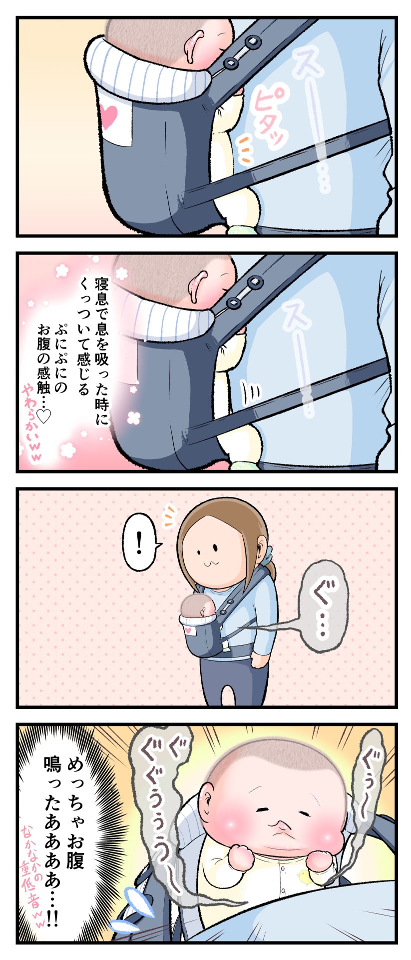 腹で感じるお腹の感触2021.08.030歳 育児漫画 ぷにお:0歳3ヶ月頃 ラフ絵 あとがき抱っこ紐の中で密着してるからお腹の音の響きがこちらのお腹越しにダイレクトに伝わってきました。赤ちゃんもこんなしっかりした音でお腹鳴るんだなと思ったと同時に、早くおっぱいあげたい気持ちMAXになりましたw 6 同じカテゴリの記事 思わず二度聞き…!7歳ぷにすけの人生名言→からのギャップ ぷにおにとっての学校とは…?時間割より気になる“あれ” なにその内緒話…!給食のチーズドリアでぷにおが秘密にしたかったあるできごととは…!? #22 巻き起こせ!正の”時短”スパイラル!使い方でこんなに変わる、洗濯機のヒミツ 登校前のギリギリ時間!「待ってほしい」8歳が放った一言が強すぎた…! お母さんの誕生日、欲しいものは…?子どもたちに現実を突きつけられた話~授乳中の、胸が痛む一人時間 生後4ヶ月の赤ちゃんが会長すぎる…!ファミレスでの“会議みたいなしぐさ”がたまらない 生後2ヶ月の赤ちゃんと初ファミレスへ→まさかの「4対1席」に!?子連れ外食のコツも 「寒っ…!」7ヶ月赤ちゃん、ムチムチボディーを震わせててたまらなかった件 #21 テッカテカの君が尊い!はじめての育児で、ついマメにやっちゃう”ひと手間” スパゲティーニプニオニーニ☆8歳息子「目から謎のパスタ」コントの話 腹筋すご!もとの姿勢に戻ろうとする5ヶ月赤ちゃん 5ヶ月赤ちゃんの妹を見つめる兄がつい出た言葉…☆ 離乳食後ににおい…?6ヶ月赤ちゃんのニヤけ顔が何とも言えなかった 6ヶ月赤ちゃんがタグに夢中!ハムハムし尽くした結果… 6ヶ月ぷにみ。おすわりしながら、そっと見上げてくれたあの笑顔 #20 その「ちぱちぱ」は反則~!抱っこ紐の中で1歳息子がくすぐったい攻撃…! 5ヶ月ぷにみ、離乳食デビュー。初めての味への反応は…?③ 5ヶ月ぷにみ、離乳食デビュー。初めての味への反応は…?② 5ヶ月ぷにみ、離乳食デビュー。初めての味への反応は…?① 何かを味わってる?4ヶ月赤ちゃんのお口の動きが尊い件 なんだこの口の動きは…生後4ヶ月ぷにみ、もぐもぐを真似する 「こっち見て~☆」3ヶ月ぷにみ、授乳中のアイコンタクトが止まらない #19 妙に腰をくねらせる~!息子の「出してるよ」サインが、バリエーション豊富な件 ハイパーご機嫌おっぱいタイム☆4ヶ月ぷにみのあんよの動き 5ヶ月ぷにみ、コロコロからのこの動きがたまらない 立たせると笑う!?立つのが好きすぎる3〜4ヶ月のぷにみ 2ヶ月で立ちたい!?おむつ替え中に足ピーンするぷにみ ぷにみ会長にメロメロすぎるぷにすけ社長㉑ #18 「子育てに理解ある職場か」だけが判断基準じゃない。それでも、働き方を変えた理由 かわいい乳歯の破壊力…☆ 歯じめまして!が見えた瞬間…急遽閉ざされた小さなお口 ザ・貫禄 赤ちゃんの笑いの合格音、今日も鳴りました タオルで拭かれてるだけなのに可愛さが限界突破する赤ちゃん なぜか脚マッサージが効いた件 #17 「お母さんと寝よう…?」この後、3歳息子の”あざとさ”にキュンとなる…♡ 思い出のぬいぐるみが繋ぐ兄妹の時間 まんまるなお口☆ 音読の宿題中に起きた言い間違い事件 トイレ直前の舞い 鷲掴み♡ #16 「おかあさん、もすもすしよう!」息子からの謎の誘い☆尊さで心がはちきれそうになった件 ぷにおが感じた、ぷにみのほっぺの感触 ぷにおが思うぷにみの将来 謎のあっちむいてほいゲーム 脱衣所バーテンダー 気持ちだけでも嬉しかった件 そもそもぷにすけ ぷにみ会長にメロメロすぎるぷにすけ社長⑳ #15 深夜の授乳中、旦那からの「お茶とアヒルの差し入れ」が最高に嬉しかった理由 ぷにみ会長にメロメロすぎるぷにすけ社長⑲ ぷにみ会長にメロメロすぎるぷにすけ社長⑱ ぷにみ会長にメロメロすぎるぷにすけ社長⑰ ぷにみ会長にメロメロすぎるぷにすけ社長⑯ 小さな体からすごい音!ぷにみのびっくりサウンド! ぷにみ会長にメロメロすぎるぷにすけ社長⑮ ぷにみ会長にメロメロすぎるぷにすけ社長⑭ ぷにみ会長にメロメロすぎるぷにすけ社長⑬ ぷにみ会長にメロメロすぎるぷにすけ社長⑫ ぷにみ会長にメロメロすぎるぷにすけ社長⑪ ぷにみ会長にメロメロすぎるぷにすけ社長⑩ #14 緊張してる?泣きそうかも~!ドキドキの「はじめてのバースデーフォト」体験 ぷにみ会長にメロメロすぎるぷにすけ社長⑨ ぷにみ会長にメロメロすぎるぷにすけ社長⑧ ぷにみ会長にメロメロすぎるぷにすけ社長⑦ ぷにみ会長にメロメロすぎるぷにすけ社長⑥ ぷにみ会長にメロメロすぎるぷにすけ社長⑤ #13 友人おすすめの”出産時の便利グッズ”。半信半疑で買ったら…本当に大活躍だった! ぷにみ会長にメロメロすぎるぷにすけ社長④ ぷにみ会長にメロメロすぎるぷにすけ社長③ ぷにみ会長にメロメロすぎるぷにすけ社長② ぷにみ会長にメロメロすぎるぷにすけ社長① ノリノリぷにお 寝かしつけ中のパパ…ぷにみの小さなおててがつかんだものとは…☆ #12 「さっきはゴメンね…!」1歳次男の”おわびの気持ち”がなかなかシュ