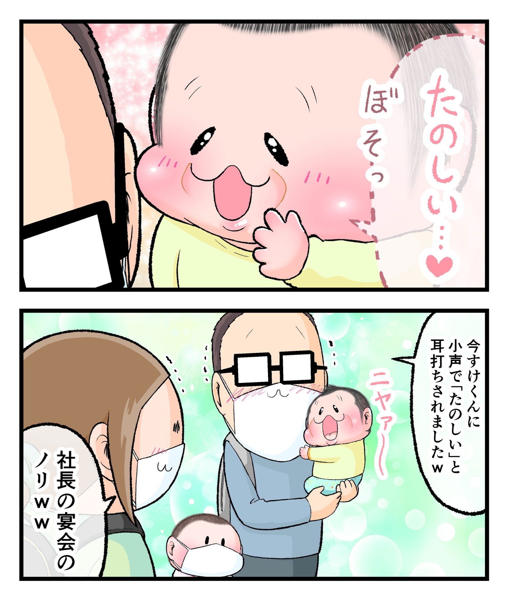 楽しい一次会2021.11.142歳 4歳 育児漫画 ぷにお:4歳0ヶ月 ぷにすけ:2歳8ヶ月 頃 ラフ絵 あとがき二次会はおうちで夕ご飯しましたw 6 同じカテゴリの記事 思わず二度聞き…!7歳ぷにすけの人生名言→からのギャップ ぷにおにとっての学校とは…?時間割より気になる“あれ” なにその内緒話…!給食のチーズドリアでぷにおが秘密にしたかったあるできごととは…!? #22 巻き起こせ!正の”時短”スパイラル!使い方でこんなに変わる、洗濯機のヒミツ 登校前のギリギリ時間!「待ってほしい」8歳が放った一言が強すぎた…! お母さんの誕生日、欲しいものは…?子どもたちに現実を突きつけられた話~授乳中の、胸が痛む一人時間 生後4ヶ月の赤ちゃんが会長すぎる…!ファミレスでの“会議みたいなしぐさ”がたまらない 生後2ヶ月の赤ちゃんと初ファミレスへ→まさかの「4対1席」に!?子連れ外食のコツも 「寒っ…!」7ヶ月赤ちゃん、ムチムチボディーを震わせててたまらなかった件 #21 テッカテカの君が尊い!はじめての育児で、ついマメにやっちゃう”ひと手間” スパゲティーニプニオニーニ☆8歳息子「目から謎のパスタ」コントの話 腹筋すご!もとの姿勢に戻ろうとする5ヶ月赤ちゃん 5ヶ月赤ちゃんの妹を見つめる兄がつい出た言葉…☆ 離乳食後ににおい…?6ヶ月赤ちゃんのニヤけ顔が何とも言えなかった 6ヶ月赤ちゃんがタグに夢中!ハムハムし尽くした結果… 6ヶ月ぷにみ。おすわりしながら、そっと見上げてくれたあの笑顔 #20 その「ちぱちぱ」は反則~!抱っこ紐の中で1歳息子がくすぐったい攻撃…! 5ヶ月ぷにみ、離乳食デビュー。初めての味への反応は…?③ 5ヶ月ぷにみ、離乳食デビュー。初めての味への反応は…?② 5ヶ月ぷにみ、離乳食デビュー。初めての味への反応は…?① 何かを味わってる?4ヶ月赤ちゃんのお口の動きが尊い件 なんだこの口の動きは…生後4ヶ月ぷにみ、もぐもぐを真似する 「こっち見て~☆」3ヶ月ぷにみ、授乳中のアイコンタクトが止まらない #19 妙に腰をくねらせる~!息子の「出してるよ」サインが、バリエーション豊富な件 ハイパーご機嫌おっぱいタイム☆4ヶ月ぷにみのあんよの動き 5ヶ月ぷにみ、コロコロからのこの動きがたまらない 立たせると笑う!?立つのが好きすぎる3〜4ヶ月のぷにみ 2ヶ月で立ちたい!?おむつ替え中に足ピーンするぷにみ ぷにみ会長にメロメロすぎるぷにすけ社長㉑ #18 「子育てに理解ある職場か」だけが判断基準じゃない。それでも、働き方を変えた理由 かわいい乳歯の破壊力…☆ 歯じめまして!が見えた瞬間…急遽閉ざされた小さなお口 ザ・貫禄 赤ちゃんの笑いの合格音、今日も鳴りました タオルで拭かれてるだけなのに可愛さが限界突破する赤ちゃん なぜか脚マッサージが効いた件 #17 「お母さんと寝よう…?」この後、3歳息子の”あざとさ”にキュンとなる…♡ 思い出のぬいぐるみが繋ぐ兄妹の時間 まんまるなお口☆ 音読の宿題中に起きた言い間違い事件 トイレ直前の舞い 鷲掴み♡ #16 「おかあさん、もすもすしよう!」息子からの謎の誘い☆尊さで心がはちきれそうになった件 ぷにおが感じた、ぷにみのほっぺの感触 ぷにおが思うぷにみの将来 謎のあっちむいてほいゲーム 脱衣所バーテンダー 気持ちだけでも嬉しかった件 そもそもぷにすけ ぷにみ会長にメロメロすぎるぷにすけ社長⑳ #15 深夜の授乳中、旦那からの「お茶とアヒルの差し入れ」が最高に嬉しかった理由 ぷにみ会長にメロメロすぎるぷにすけ社長⑲ ぷにみ会長にメロメロすぎるぷにすけ社長⑱ ぷにみ会長にメロメロすぎるぷにすけ社長⑰ ぷにみ会長にメロメロすぎるぷにすけ社長⑯ 小さな体からすごい音!ぷにみのびっくりサウンド! ぷにみ会長にメロメロすぎるぷにすけ社長⑮ ぷにみ会長にメロメロすぎるぷにすけ社長⑭ ぷにみ会長にメロメロすぎるぷにすけ社長⑬ ぷにみ会長にメロメロすぎるぷにすけ社長⑫ ぷにみ会長にメロメロすぎるぷにすけ社長⑪ ぷにみ会長にメロメロすぎるぷにすけ社長⑩ #14 緊張してる?泣きそうかも~!ドキドキの「はじめてのバースデーフォト」体験 ぷにみ会長にメロメロすぎるぷにすけ社長⑨ ぷにみ会長にメロメロすぎるぷにすけ社長⑧ ぷにみ会長にメロメロすぎるぷにすけ社長⑦ ぷにみ会長にメロメロすぎるぷにすけ社長⑥ ぷにみ会長にメロメロすぎるぷにすけ社長⑤ #13 友人おすすめの”出産時の便利グッズ”。半信半疑で買ったら…本当に大活躍だった! ぷにみ会長にメロメロすぎるぷにすけ社長④ ぷにみ会長にメロメロすぎるぷにすけ社長③ ぷにみ会長にメロメロすぎるぷにすけ社長② ぷにみ会長にメロメロすぎるぷにすけ社長① ノリノリぷにお 寝かしつけ中のパパ…ぷにみの小さなおててがつかんだものとは…☆ #12 「さっきはゴメンね…!」1歳次男の”おわびの気持ち”がなかなかシュールだった件☆ 起動した瞬間(その2) ダジャレにハマるぷにすけ、「校長先生」のくだりが秀逸爆笑展開…! お腹いっぱいになった新生児の反応がたくましすぎた件 #11 「あ
