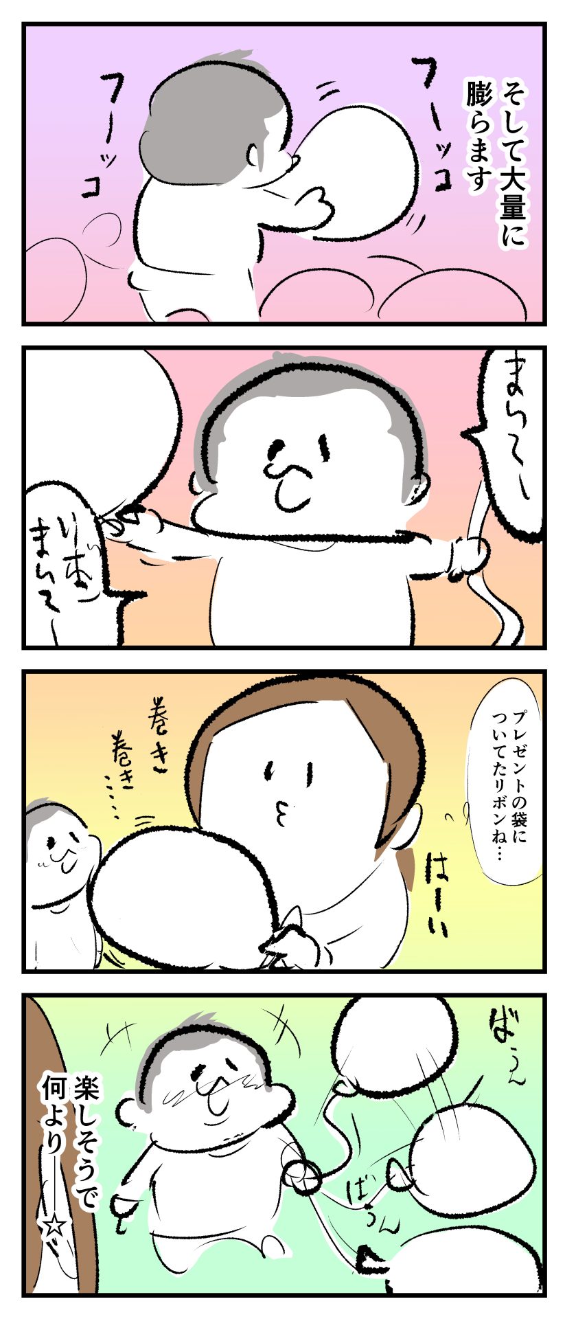 この日は一日中「リボン巻いて…」「はずして…この色の風船に巻いて…」「やっぱりはずしてこっちの色の風船に巻いて…」「この色とこの色の風船をリボンでダブルで巻いて…」とかの連続でしたw