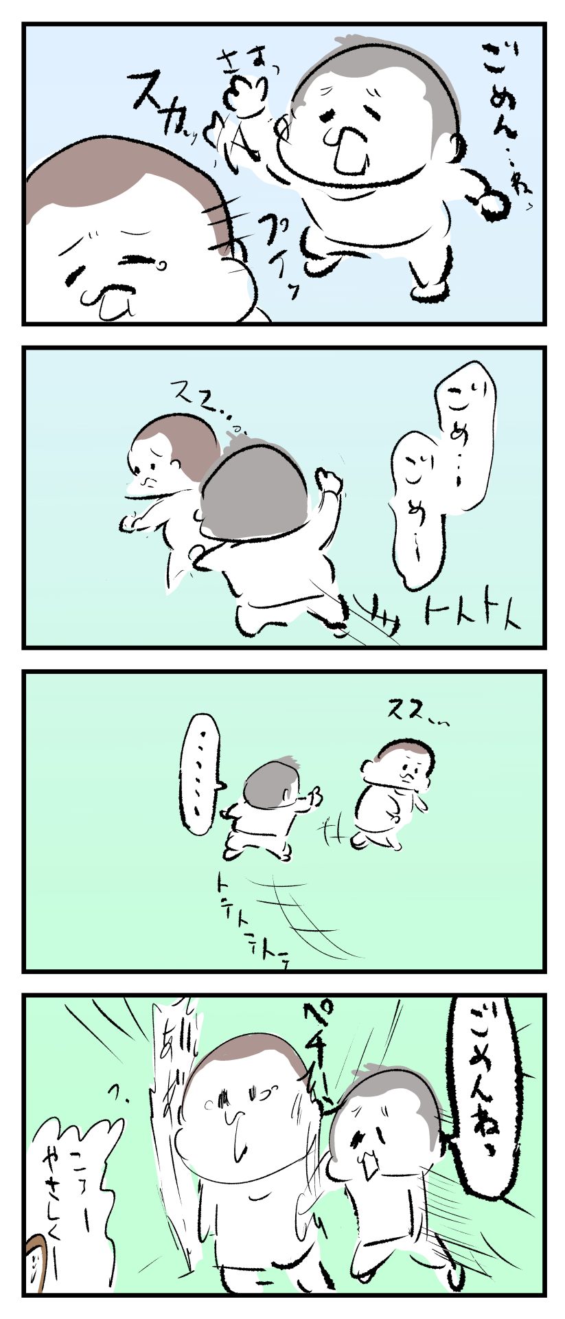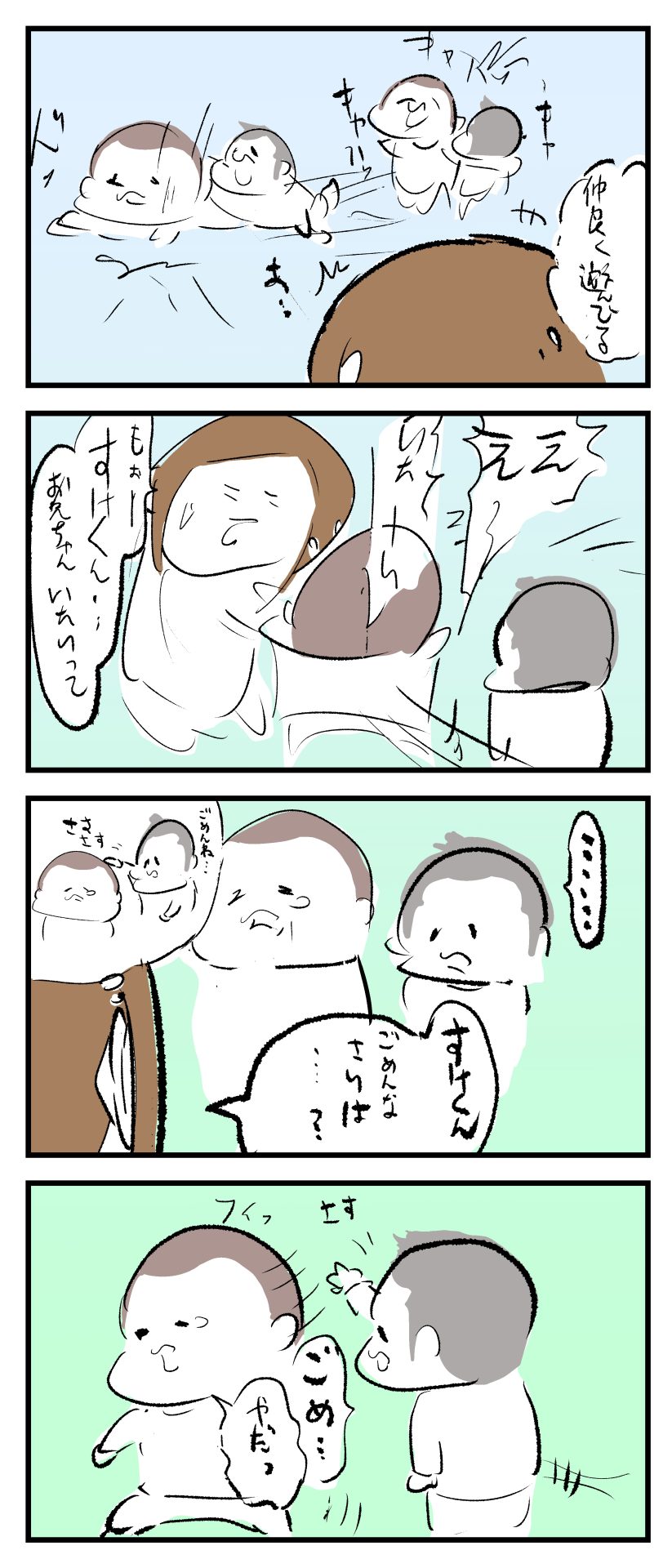 クリティカルヒットよしよし2022.01.042歳 3歳 育児漫画 ぷにお:3歳11ヶ月 ぷにすけ:2歳7ヶ月頃 あとがきその後しばらくしたら、また仲良く遊んでいましたw 2 同じカテゴリの記事 思わず二度聞き…!7歳ぷにすけの人生名言→からのギャップ ぷにおにとっての学校とは…?時間割より気になる“あれ” なにその内緒話…!給食のチーズドリアでぷにおが秘密にしたかったあるできごととは…!? #22 巻き起こせ!正の”時短”スパイラル!使い方でこんなに変わる、洗濯機のヒミツ 登校前のギリギリ時間!「待ってほしい」8歳が放った一言が強すぎた…! お母さんの誕生日、欲しいものは…?子どもたちに現実を突きつけられた話~授乳中の、胸が痛む一人時間 生後4ヶ月の赤ちゃんが会長すぎる…!ファミレスでの“会議みたいなしぐさ”がたまらない 生後2ヶ月の赤ちゃんと初ファミレスへ→まさかの「4対1席」に!?子連れ外食のコツも 「寒っ…!」7ヶ月赤ちゃん、ムチムチボディーを震わせててたまらなかった件 #21 テッカテカの君が尊い!はじめての育児で、ついマメにやっちゃう”ひと手間” スパゲティーニプニオニーニ☆8歳息子「目から謎のパスタ」コントの話 腹筋すご!もとの姿勢に戻ろうとする5ヶ月赤ちゃん 5ヶ月赤ちゃんの妹を見つめる兄がつい出た言葉…☆ 離乳食後ににおい…?6ヶ月赤ちゃんのニヤけ顔が何とも言えなかった 6ヶ月赤ちゃんがタグに夢中!ハムハムし尽くした結果… 6ヶ月ぷにみ。おすわりしながら、そっと見上げてくれたあの笑顔 #20 その「ちぱちぱ」は反則~!抱っこ紐の中で1歳息子がくすぐったい攻撃…! 5ヶ月ぷにみ、離乳食デビュー。初めての味への反応は…?③ 5ヶ月ぷにみ、離乳食デビュー。初めての味への反応は…?② 5ヶ月ぷにみ、離乳食デビュー。初めての味への反応は…?① 何かを味わってる?4ヶ月赤ちゃんのお口の動きが尊い件 なんだこの口の動きは…生後4ヶ月ぷにみ、もぐもぐを真似する 「こっち見て~☆」3ヶ月ぷにみ、授乳中のアイコンタクトが止まらない #19 妙に腰をくねらせる~!息子の「出してるよ」サインが、バリエーション豊富な件 ハイパーご機嫌おっぱいタイム☆4ヶ月ぷにみのあんよの動き 5ヶ月ぷにみ、コロコロからのこの動きがたまらない 立たせると笑う!?立つのが好きすぎる3〜4ヶ月のぷにみ 2ヶ月で立ちたい!?おむつ替え中に足ピーンするぷにみ ぷにみ会長にメロメロすぎるぷにすけ社長㉑ #18 「子育てに理解ある職場か」だけが判断基準じゃない。それでも、働き方を変えた理由 かわいい乳歯の破壊力…☆ 歯じめまして!が見えた瞬間…急遽閉ざされた小さなお口 ザ・貫禄 赤ちゃんの笑いの合格音、今日も鳴りました タオルで拭かれてるだけなのに可愛さが限界突破する赤ちゃん なぜか脚マッサージが効いた件 #17 「お母さんと寝よう…?」この後、3歳息子の”あざとさ”にキュンとなる…♡ 思い出のぬいぐるみが繋ぐ兄妹の時間 まんまるなお口☆ 音読の宿題中に起きた言い間違い事件 トイレ直前の舞い 鷲掴み♡ #16 「おかあさん、もすもすしよう!」息子からの謎の誘い☆尊さで心がはちきれそうになった件 ぷにおが感じた、ぷにみのほっぺの感触 ぷにおが思うぷにみの将来 謎のあっちむいてほいゲーム 脱衣所バーテンダー 気持ちだけでも嬉しかった件 そもそもぷにすけ ぷにみ会長にメロメロすぎるぷにすけ社長⑳ #15 深夜の授乳中、旦那からの「お茶とアヒルの差し入れ」が最高に嬉しかった理由 ぷにみ会長にメロメロすぎるぷにすけ社長⑲ ぷにみ会長にメロメロすぎるぷにすけ社長⑱ ぷにみ会長にメロメロすぎるぷにすけ社長⑰ ぷにみ会長にメロメロすぎるぷにすけ社長⑯ 小さな体からすごい音!ぷにみのびっくりサウンド! ぷにみ会長にメロメロすぎるぷにすけ社長⑮ ぷにみ会長にメロメロすぎるぷにすけ社長⑭ ぷにみ会長にメロメロすぎるぷにすけ社長⑬ ぷにみ会長にメロメロすぎるぷにすけ社長⑫ ぷにみ会長にメロメロすぎるぷにすけ社長⑪ ぷにみ会長にメロメロすぎるぷにすけ社長⑩ #14 緊張してる?泣きそうかも~!ドキドキの「はじめてのバースデーフォト」体験 ぷにみ会長にメロメロすぎるぷにすけ社長⑨ ぷにみ会長にメロメロすぎるぷにすけ社長⑧ ぷにみ会長にメロメロすぎるぷにすけ社長⑦ ぷにみ会長にメロメロすぎるぷにすけ社長⑥ ぷにみ会長にメロメロすぎるぷにすけ社長⑤ #13 友人おすすめの”出産時の便利グッズ”。半信半疑で買ったら…本当に大活躍だった! ぷにみ会長にメロメロすぎるぷにすけ社長④ ぷにみ会長にメロメロすぎるぷにすけ社長③ ぷにみ会長にメロメロすぎるぷにすけ社長② ぷにみ会長にメロメロすぎるぷにすけ社長① ノリノリぷにお 寝かしつけ中のパパ…ぷにみの小さなおててがつかんだものとは…☆ #12 「さっきはゴメンね…!」1歳次男の”おわびの気持ち”がなかなかシュールだった件☆ 起動した瞬間(その2) ダジャレにハマるぷにすけ、「校長先生」のくだりが秀逸爆笑展開…! お腹いっぱいになった新生児の反応が
