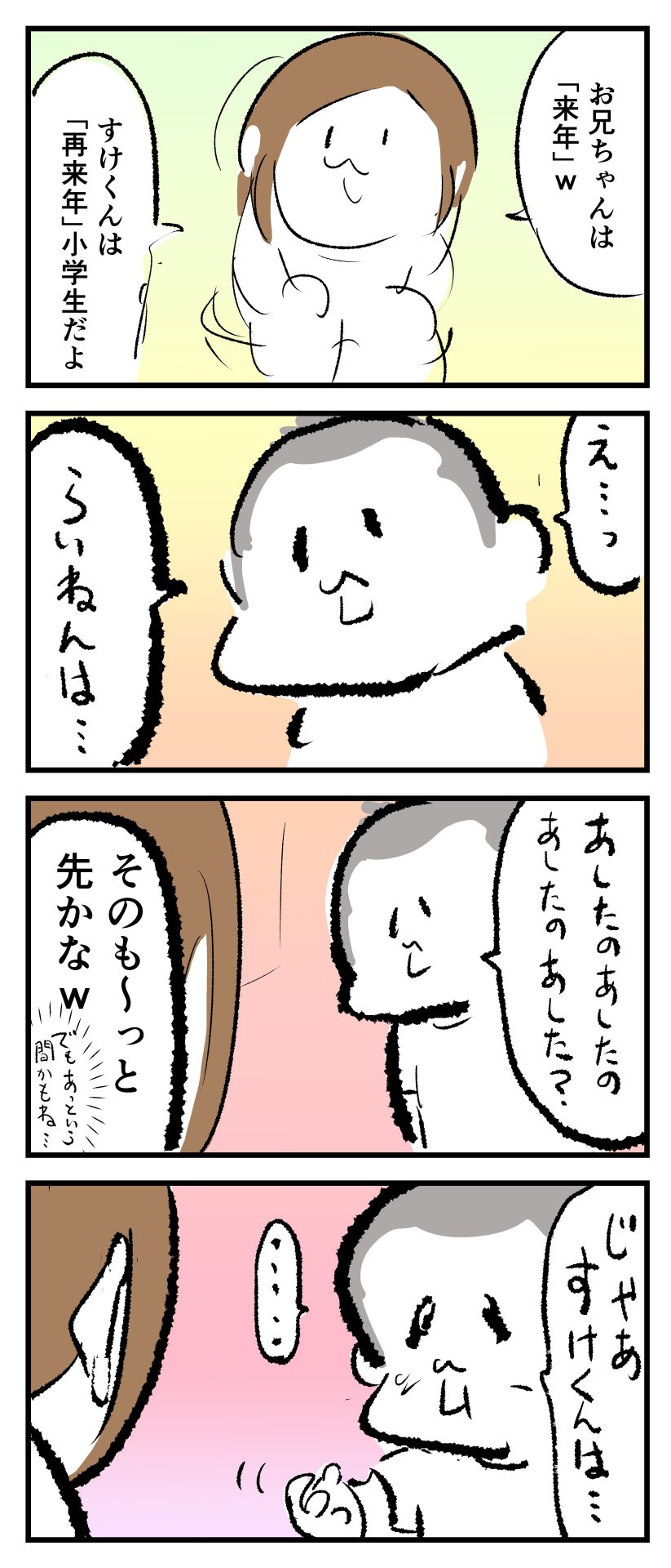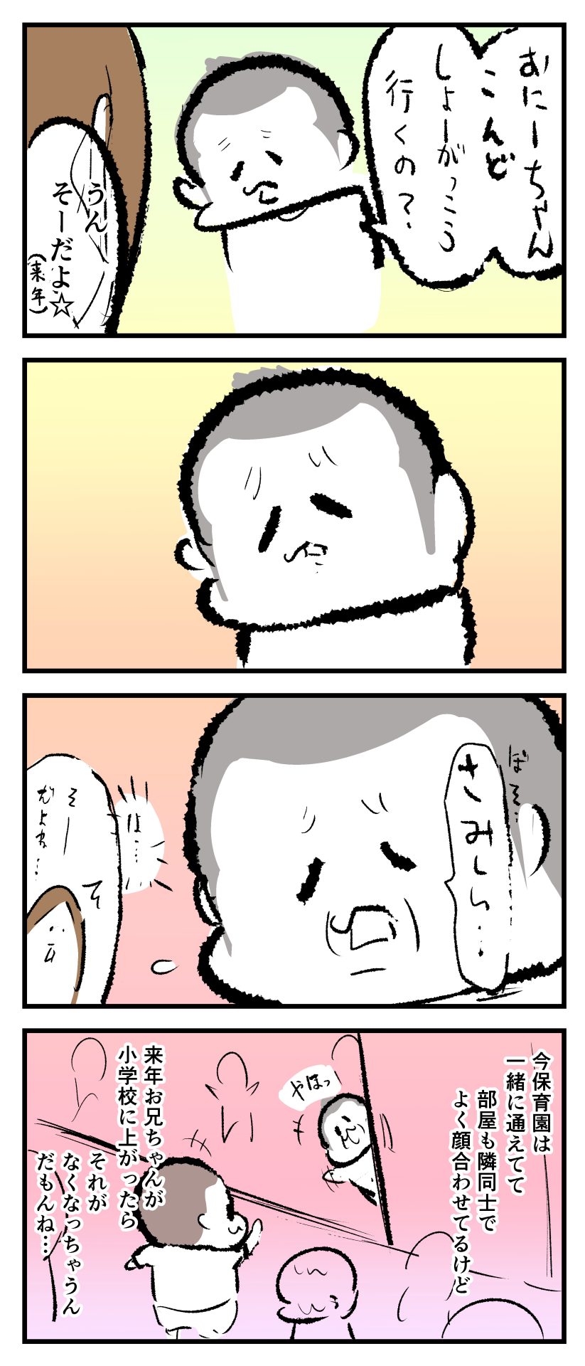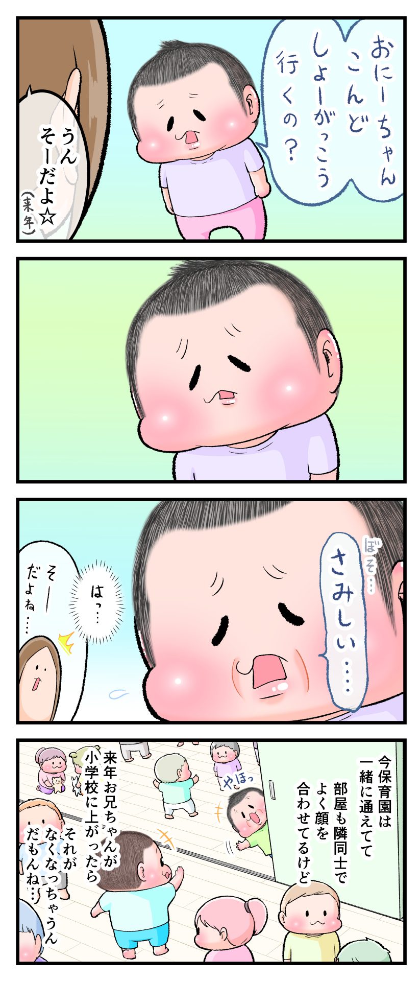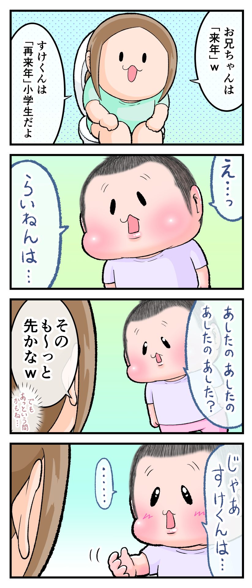 言葉にできない感情の表情筋②2023.09.074歳 5歳 育児漫画 言葉にできない感情の表情筋 ぷにお:5歳11ヶ月 ぷにすけ:4歳7ヶ月頃 ラフ絵 続く…。続きは本日20:00更新予定…☆ 1 同じカテゴリの記事 思わず二度聞き…!7歳ぷにすけの人生名言→からのギャップ ぷにおにとっての学校とは…?時間割より気になる“あれ” なにその内緒話…!給食のチーズドリアでぷにおが秘密にしたかったあるできごととは…!? #22 巻き起こせ!正の”時短”スパイラル!使い方でこんなに変わる、洗濯機のヒミツ 登校前のギリギリ時間!「待ってほしい」8歳が放った一言が強すぎた…! お母さんの誕生日、欲しいものは…?子どもたちに現実を突きつけられた話~授乳中の、胸が痛む一人時間 生後4ヶ月の赤ちゃんが会長すぎる…!ファミレスでの“会議みたいなしぐさ”がたまらない 生後2ヶ月の赤ちゃんと初ファミレスへ→まさかの「4対1席」に!?子連れ外食のコツも 「寒っ…!」7ヶ月赤ちゃん、ムチムチボディーを震わせててたまらなかった件 #21 テッカテカの君が尊い!はじめての育児で、ついマメにやっちゃう”ひと手間” スパゲティーニプニオニーニ☆8歳息子「目から謎のパスタ」コントの話 腹筋すご!もとの姿勢に戻ろうとする5ヶ月赤ちゃん 5ヶ月赤ちゃんの妹を見つめる兄がつい出た言葉…☆ 離乳食後ににおい…?6ヶ月赤ちゃんのニヤけ顔が何とも言えなかった 6ヶ月赤ちゃんがタグに夢中!ハムハムし尽くした結果… 6ヶ月ぷにみ。おすわりしながら、そっと見上げてくれたあの笑顔 #20 その「ちぱちぱ」は反則~!抱っこ紐の中で1歳息子がくすぐったい攻撃…! 5ヶ月ぷにみ、離乳食デビュー。初めての味への反応は…?③ 5ヶ月ぷにみ、離乳食デビュー。初めての味への反応は…?② 5ヶ月ぷにみ、離乳食デビュー。初めての味への反応は…?① 何かを味わってる?4ヶ月赤ちゃんのお口の動きが尊い件 なんだこの口の動きは…生後4ヶ月ぷにみ、もぐもぐを真似する 「こっち見て~☆」3ヶ月ぷにみ、授乳中のアイコンタクトが止まらない #19 妙に腰をくねらせる~!息子の「出してるよ」サインが、バリエーション豊富な件 ハイパーご機嫌おっぱいタイム☆4ヶ月ぷにみのあんよの動き 5ヶ月ぷにみ、コロコロからのこの動きがたまらない 立たせると笑う!?立つのが好きすぎる3〜4ヶ月のぷにみ 2ヶ月で立ちたい!?おむつ替え中に足ピーンするぷにみ ぷにみ会長にメロメロすぎるぷにすけ社長㉑ #18 「子育てに理解ある職場か」だけが判断基準じゃない。それでも、働き方を変えた理由 かわいい乳歯の破壊力…☆ 歯じめまして!が見えた瞬間…急遽閉ざされた小さなお口 ザ・貫禄 赤ちゃんの笑いの合格音、今日も鳴りました タオルで拭かれてるだけなのに可愛さが限界突破する赤ちゃん なぜか脚マッサージが効いた件 #17 「お母さんと寝よう…?」この後、3歳息子の”あざとさ”にキュンとなる…♡ 思い出のぬいぐるみが繋ぐ兄妹の時間 まんまるなお口☆ 音読の宿題中に起きた言い間違い事件 トイレ直前の舞い 鷲掴み♡ #16 「おかあさん、もすもすしよう!」息子からの謎の誘い☆尊さで心がはちきれそうになった件 ぷにおが感じた、ぷにみのほっぺの感触 ぷにおが思うぷにみの将来 謎のあっちむいてほいゲーム 脱衣所バーテンダー 気持ちだけでも嬉しかった件 そもそもぷにすけ ぷにみ会長にメロメロすぎるぷにすけ社長⑳ #15 深夜の授乳中、旦那からの「お茶とアヒルの差し入れ」が最高に嬉しかった理由 ぷにみ会長にメロメロすぎるぷにすけ社長⑲ ぷにみ会長にメロメロすぎるぷにすけ社長⑱ ぷにみ会長にメロメロすぎるぷにすけ社長⑰ ぷにみ会長にメロメロすぎるぷにすけ社長⑯ 小さな体からすごい音!ぷにみのびっくりサウンド! ぷにみ会長にメロメロすぎるぷにすけ社長⑮ ぷにみ会長にメロメロすぎるぷにすけ社長⑭ ぷにみ会長にメロメロすぎるぷにすけ社長⑬ ぷにみ会長にメロメロすぎるぷにすけ社長⑫ ぷにみ会長にメロメロすぎるぷにすけ社長⑪ ぷにみ会長にメロメロすぎるぷにすけ社長⑩ #14 緊張してる?泣きそうかも~!ドキドキの「はじめてのバースデーフォト」体験 ぷにみ会長にメロメロすぎるぷにすけ社長⑨ ぷにみ会長にメロメロすぎるぷにすけ社長⑧ ぷにみ会長にメロメロすぎるぷにすけ社長⑦ ぷにみ会長にメロメロすぎるぷにすけ社長⑥ ぷにみ会長にメロメロすぎるぷにすけ社長⑤ #13 友人おすすめの”出産時の便利グッズ”。半信半疑で買ったら…本当に大活躍だった! ぷにみ会長にメロメロすぎるぷにすけ社長④ ぷにみ会長にメロメロすぎるぷにすけ社長③ ぷにみ会長にメロメロすぎるぷにすけ社長② ぷにみ会長にメロメロすぎるぷにすけ社長① ノリノリぷにお 寝かしつけ中のパパ…ぷにみの小さなおててがつかんだものとは…☆ #12 「さっきはゴメンね…!」1歳次男の”おわびの気持ち”がなかなかシュールだった件☆ 起動した瞬間(その2) ダジャレにハマるぷにすけ、「校長先生」のくだりが秀逸爆笑展開…! お腹いっぱいになった