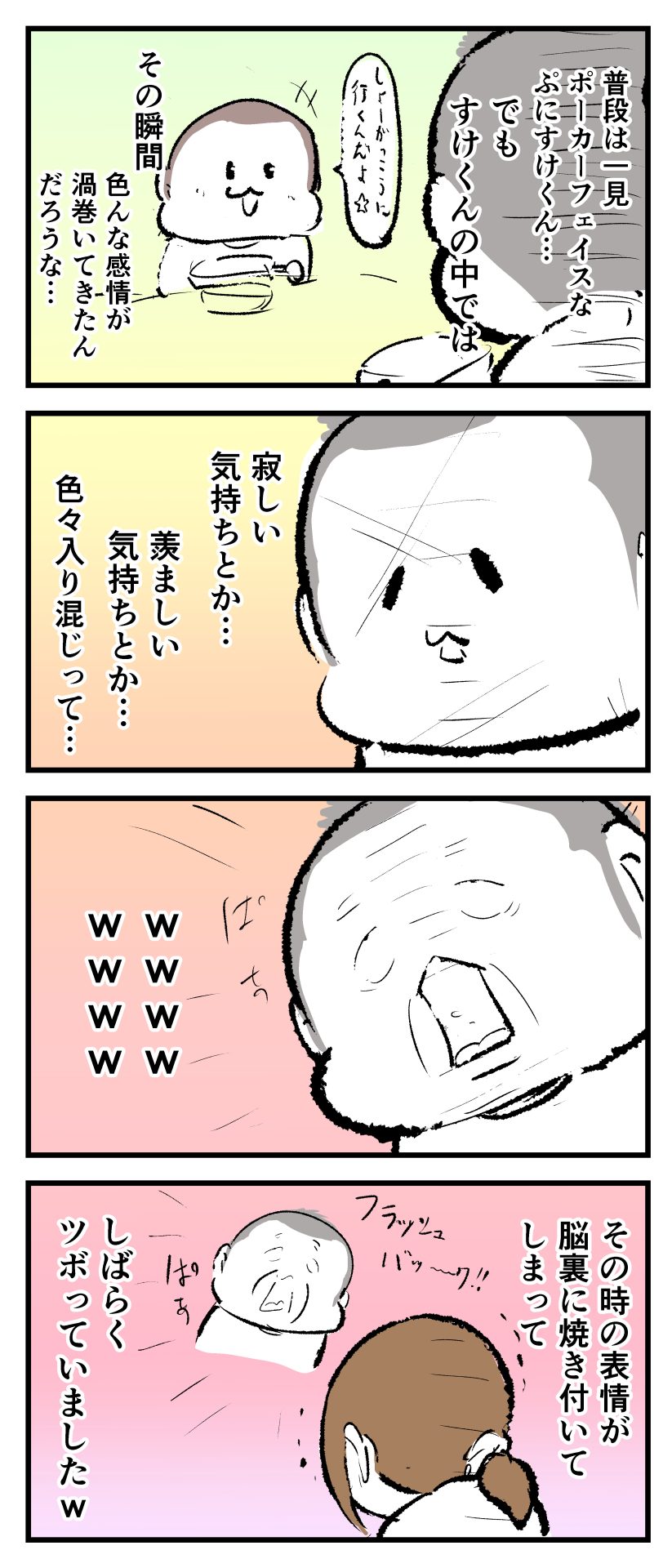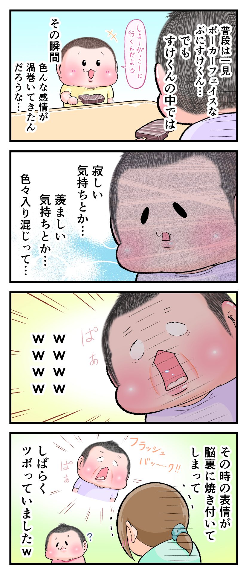 次男ぷにすけは、普段はわりと無表情な雰囲気を醸し出していますが、ふとした時に今まで封印してきた表情筋を爆発的に解放してくるので、そのギャップに悶えることがありますw