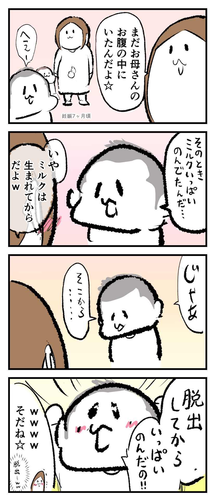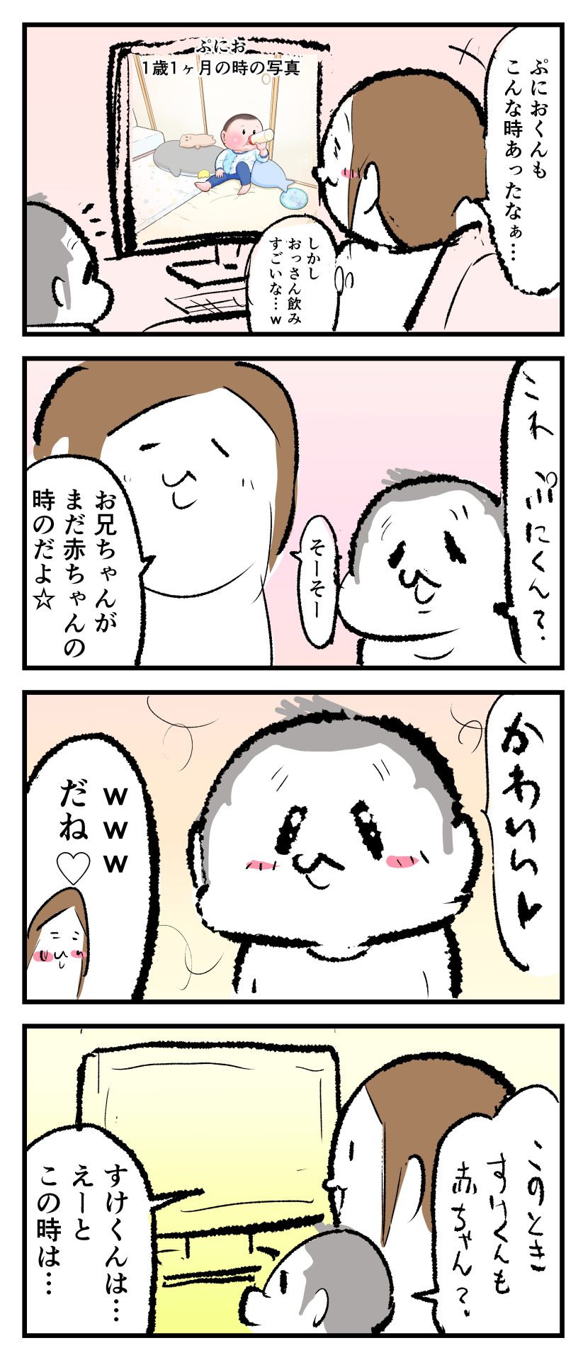 祝杯2023.11.170歳 1歳 4歳 育児漫画 ぷにすけ:4歳3ヶ月頃 あとがき脱出できた後のミルクって最高だな…って感じに聞こえましたw 2 同じカテゴリの記事 思わず二度聞き…!7歳ぷにすけの人生名言→からのギャップ ぷにおにとっての学校とは…?時間割より気になる“あれ” なにその内緒話…!給食のチーズドリアでぷにおが秘密にしたかったあるできごととは…!? #22 巻き起こせ!正の”時短”スパイラル!使い方でこんなに変わる、洗濯機のヒミツ 登校前のギリギリ時間!「待ってほしい」8歳が放った一言が強すぎた…! お母さんの誕生日、欲しいものは…?子どもたちに現実を突きつけられた話~授乳中の、胸が痛む一人時間 生後4ヶ月の赤ちゃんが会長すぎる…!ファミレスでの“会議みたいなしぐさ”がたまらない 生後2ヶ月の赤ちゃんと初ファミレスへ→まさかの「4対1席」に!?子連れ外食のコツも 「寒っ…!」7ヶ月赤ちゃん、ムチムチボディーを震わせててたまらなかった件 #21 テッカテカの君が尊い!はじめての育児で、ついマメにやっちゃう”ひと手間” スパゲティーニプニオニーニ☆8歳息子「目から謎のパスタ」コントの話 腹筋すご!もとの姿勢に戻ろうとする5ヶ月赤ちゃん 5ヶ月赤ちゃんの妹を見つめる兄がつい出た言葉…☆ 離乳食後ににおい…?6ヶ月赤ちゃんのニヤけ顔が何とも言えなかった 6ヶ月赤ちゃんがタグに夢中!ハムハムし尽くした結果… 6ヶ月ぷにみ。おすわりしながら、そっと見上げてくれたあの笑顔 #20 その「ちぱちぱ」は反則~!抱っこ紐の中で1歳息子がくすぐったい攻撃…! 5ヶ月ぷにみ、離乳食デビュー。初めての味への反応は…?③ 5ヶ月ぷにみ、離乳食デビュー。初めての味への反応は…?② 5ヶ月ぷにみ、離乳食デビュー。初めての味への反応は…?① 何かを味わってる?4ヶ月赤ちゃんのお口の動きが尊い件 なんだこの口の動きは…生後4ヶ月ぷにみ、もぐもぐを真似する 「こっち見て~☆」3ヶ月ぷにみ、授乳中のアイコンタクトが止まらない #19 妙に腰をくねらせる~!息子の「出してるよ」サインが、バリエーション豊富な件 ハイパーご機嫌おっぱいタイム☆4ヶ月ぷにみのあんよの動き 5ヶ月ぷにみ、コロコロからのこの動きがたまらない 立たせると笑う!?立つのが好きすぎる3〜4ヶ月のぷにみ 2ヶ月で立ちたい!?おむつ替え中に足ピーンするぷにみ ぷにみ会長にメロメロすぎるぷにすけ社長㉑ #18 「子育てに理解ある職場か」だけが判断基準じゃない。それでも、働き方を変えた理由 かわいい乳歯の破壊力…☆ 歯じめまして!が見えた瞬間…急遽閉ざされた小さなお口 ザ・貫禄 赤ちゃんの笑いの合格音、今日も鳴りました タオルで拭かれてるだけなのに可愛さが限界突破する赤ちゃん なぜか脚マッサージが効いた件 #17 「お母さんと寝よう…?」この後、3歳息子の”あざとさ”にキュンとなる…♡ 思い出のぬいぐるみが繋ぐ兄妹の時間 まんまるなお口☆ 音読の宿題中に起きた言い間違い事件 トイレ直前の舞い 鷲掴み♡ #16 「おかあさん、もすもすしよう!」息子からの謎の誘い☆尊さで心がはちきれそうになった件 ぷにおが感じた、ぷにみのほっぺの感触 ぷにおが思うぷにみの将来 謎のあっちむいてほいゲーム 脱衣所バーテンダー 気持ちだけでも嬉しかった件 そもそもぷにすけ ぷにみ会長にメロメロすぎるぷにすけ社長⑳ #15 深夜の授乳中、旦那からの「お茶とアヒルの差し入れ」が最高に嬉しかった理由 ぷにみ会長にメロメロすぎるぷにすけ社長⑲ ぷにみ会長にメロメロすぎるぷにすけ社長⑱ ぷにみ会長にメロメロすぎるぷにすけ社長⑰ ぷにみ会長にメロメロすぎるぷにすけ社長⑯ 小さな体からすごい音!ぷにみのびっくりサウンド! ぷにみ会長にメロメロすぎるぷにすけ社長⑮ ぷにみ会長にメロメロすぎるぷにすけ社長⑭ ぷにみ会長にメロメロすぎるぷにすけ社長⑬ ぷにみ会長にメロメロすぎるぷにすけ社長⑫ ぷにみ会長にメロメロすぎるぷにすけ社長⑪ ぷにみ会長にメロメロすぎるぷにすけ社長⑩ #14 緊張してる?泣きそうかも~!ドキドキの「はじめてのバースデーフォト」体験 ぷにみ会長にメロメロすぎるぷにすけ社長⑨ ぷにみ会長にメロメロすぎるぷにすけ社長⑧ ぷにみ会長にメロメロすぎるぷにすけ社長⑦ ぷにみ会長にメロメロすぎるぷにすけ社長⑥ ぷにみ会長にメロメロすぎるぷにすけ社長⑤ #13 友人おすすめの”出産時の便利グッズ”。半信半疑で買ったら…本当に大活躍だった! ぷにみ会長にメロメロすぎるぷにすけ社長④ ぷにみ会長にメロメロすぎるぷにすけ社長③ ぷにみ会長にメロメロすぎるぷにすけ社長② ぷにみ会長にメロメロすぎるぷにすけ社長① ノリノリぷにお 寝かしつけ中のパパ…ぷにみの小さなおててがつかんだものとは…☆ #12 「さっきはゴメンね…!」1歳次男の”おわびの気持ち”がなかなかシュールだった件☆ 起動した瞬間(その2) ダジャレにハマるぷにすけ、「校長先生」のくだりが秀逸爆笑展開…! お腹いっぱいになった新生児の反応がたくましすぎた件 #11 「あ~