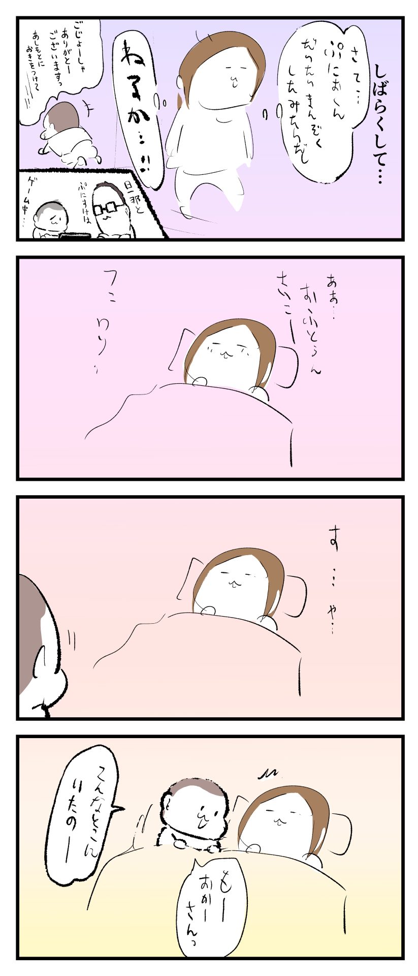 脳を寝かせてくれない2023.12.146歳 育児漫画 ぷにお:6歳1ヶ月頃 あとがき結局その日の夜にまとめて爆睡しましたw 2 同じカテゴリの記事 思わず二度聞き…!7歳ぷにすけの人生名言→からのギャップ ぷにおにとっての学校とは…?時間割より気になる“あれ” なにその内緒話…!給食のチーズドリアでぷにおが秘密にしたかったあるできごととは…!? #22 巻き起こせ!正の”時短”スパイラル!使い方でこんなに変わる、洗濯機のヒミツ 登校前のギリギリ時間!「待ってほしい」8歳が放った一言が強すぎた…! お母さんの誕生日、欲しいものは…?子どもたちに現実を突きつけられた話~授乳中の、胸が痛む一人時間 生後4ヶ月の赤ちゃんが会長すぎる…!ファミレスでの“会議みたいなしぐさ”がたまらない 生後2ヶ月の赤ちゃんと初ファミレスへ→まさかの「4対1席」に!?子連れ外食のコツも 「寒っ…!」7ヶ月赤ちゃん、ムチムチボディーを震わせててたまらなかった件 #21 テッカテカの君が尊い!はじめての育児で、ついマメにやっちゃう”ひと手間” スパゲティーニプニオニーニ☆8歳息子「目から謎のパスタ」コントの話 腹筋すご!もとの姿勢に戻ろうとする5ヶ月赤ちゃん 5ヶ月赤ちゃんの妹を見つめる兄がつい出た言葉…☆ 離乳食後ににおい…?6ヶ月赤ちゃんのニヤけ顔が何とも言えなかった 6ヶ月赤ちゃんがタグに夢中!ハムハムし尽くした結果… 6ヶ月ぷにみ。おすわりしながら、そっと見上げてくれたあの笑顔 #20 その「ちぱちぱ」は反則~!抱っこ紐の中で1歳息子がくすぐったい攻撃…! 5ヶ月ぷにみ、離乳食デビュー。初めての味への反応は…?③ 5ヶ月ぷにみ、離乳食デビュー。初めての味への反応は…?② 5ヶ月ぷにみ、離乳食デビュー。初めての味への反応は…?① 何かを味わってる?4ヶ月赤ちゃんのお口の動きが尊い件 なんだこの口の動きは…生後4ヶ月ぷにみ、もぐもぐを真似する 「こっち見て~☆」3ヶ月ぷにみ、授乳中のアイコンタクトが止まらない #19 妙に腰をくねらせる~!息子の「出してるよ」サインが、バリエーション豊富な件 ハイパーご機嫌おっぱいタイム☆4ヶ月ぷにみのあんよの動き 5ヶ月ぷにみ、コロコロからのこの動きがたまらない 立たせると笑う!?立つのが好きすぎる3〜4ヶ月のぷにみ 2ヶ月で立ちたい!?おむつ替え中に足ピーンするぷにみ ぷにみ会長にメロメロすぎるぷにすけ社長㉑ #18 「子育てに理解ある職場か」だけが判断基準じゃない。それでも、働き方を変えた理由 かわいい乳歯の破壊力…☆ 歯じめまして!が見えた瞬間…急遽閉ざされた小さなお口 ザ・貫禄 赤ちゃんの笑いの合格音、今日も鳴りました タオルで拭かれてるだけなのに可愛さが限界突破する赤ちゃん なぜか脚マッサージが効いた件 #17 「お母さんと寝よう…?」この後、3歳息子の”あざとさ”にキュンとなる…♡ 思い出のぬいぐるみが繋ぐ兄妹の時間 まんまるなお口☆ 音読の宿題中に起きた言い間違い事件 トイレ直前の舞い 鷲掴み♡ #16 「おかあさん、もすもすしよう!」息子からの謎の誘い☆尊さで心がはちきれそうになった件 ぷにおが感じた、ぷにみのほっぺの感触 ぷにおが思うぷにみの将来 謎のあっちむいてほいゲーム 脱衣所バーテンダー 気持ちだけでも嬉しかった件 そもそもぷにすけ ぷにみ会長にメロメロすぎるぷにすけ社長⑳ #15 深夜の授乳中、旦那からの「お茶とアヒルの差し入れ」が最高に嬉しかった理由 ぷにみ会長にメロメロすぎるぷにすけ社長⑲ ぷにみ会長にメロメロすぎるぷにすけ社長⑱ ぷにみ会長にメロメロすぎるぷにすけ社長⑰ ぷにみ会長にメロメロすぎるぷにすけ社長⑯ 小さな体からすごい音!ぷにみのびっくりサウンド! ぷにみ会長にメロメロすぎるぷにすけ社長⑮ ぷにみ会長にメロメロすぎるぷにすけ社長⑭ ぷにみ会長にメロメロすぎるぷにすけ社長⑬ ぷにみ会長にメロメロすぎるぷにすけ社長⑫ ぷにみ会長にメロメロすぎるぷにすけ社長⑪ ぷにみ会長にメロメロすぎるぷにすけ社長⑩ #14 緊張してる?泣きそうかも~!ドキドキの「はじめてのバースデーフォト」体験 ぷにみ会長にメロメロすぎるぷにすけ社長⑨ ぷにみ会長にメロメロすぎるぷにすけ社長⑧ ぷにみ会長にメロメロすぎるぷにすけ社長⑦ ぷにみ会長にメロメロすぎるぷにすけ社長⑥ ぷにみ会長にメロメロすぎるぷにすけ社長⑤ #13 友人おすすめの”出産時の便利グッズ”。半信半疑で買ったら…本当に大活躍だった! ぷにみ会長にメロメロすぎるぷにすけ社長④ ぷにみ会長にメロメロすぎるぷにすけ社長③ ぷにみ会長にメロメロすぎるぷにすけ社長② ぷにみ会長にメロメロすぎるぷにすけ社長① ノリノリぷにお 寝かしつけ中のパパ…ぷにみの小さなおててがつかんだものとは…☆ #12 「さっきはゴメンね…!」1歳次男の”おわびの気持ち”がなかなかシュールだった件☆ 起動した瞬間(その2) ダジャレにハマるぷにすけ、「校長先生」のくだりが秀逸爆笑展開…! お腹いっぱいになった新生児の反応がたくましすぎた件 #11 「あ~ぶっくりした!