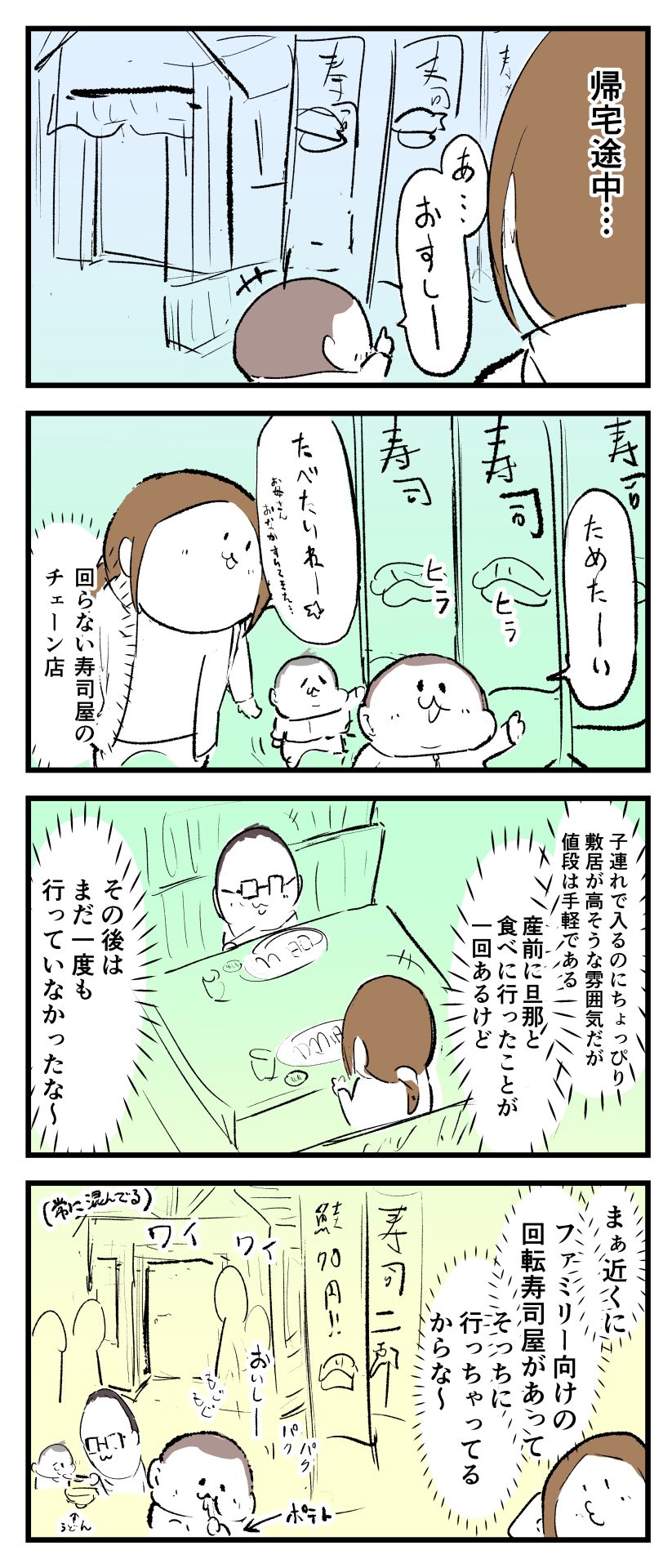 当時3歳だったぷにおはお寿司屋さんで鉄火巻きを1つつまむ程度でほとんどはポテトやうどんラーメンでお腹を満たしていました。