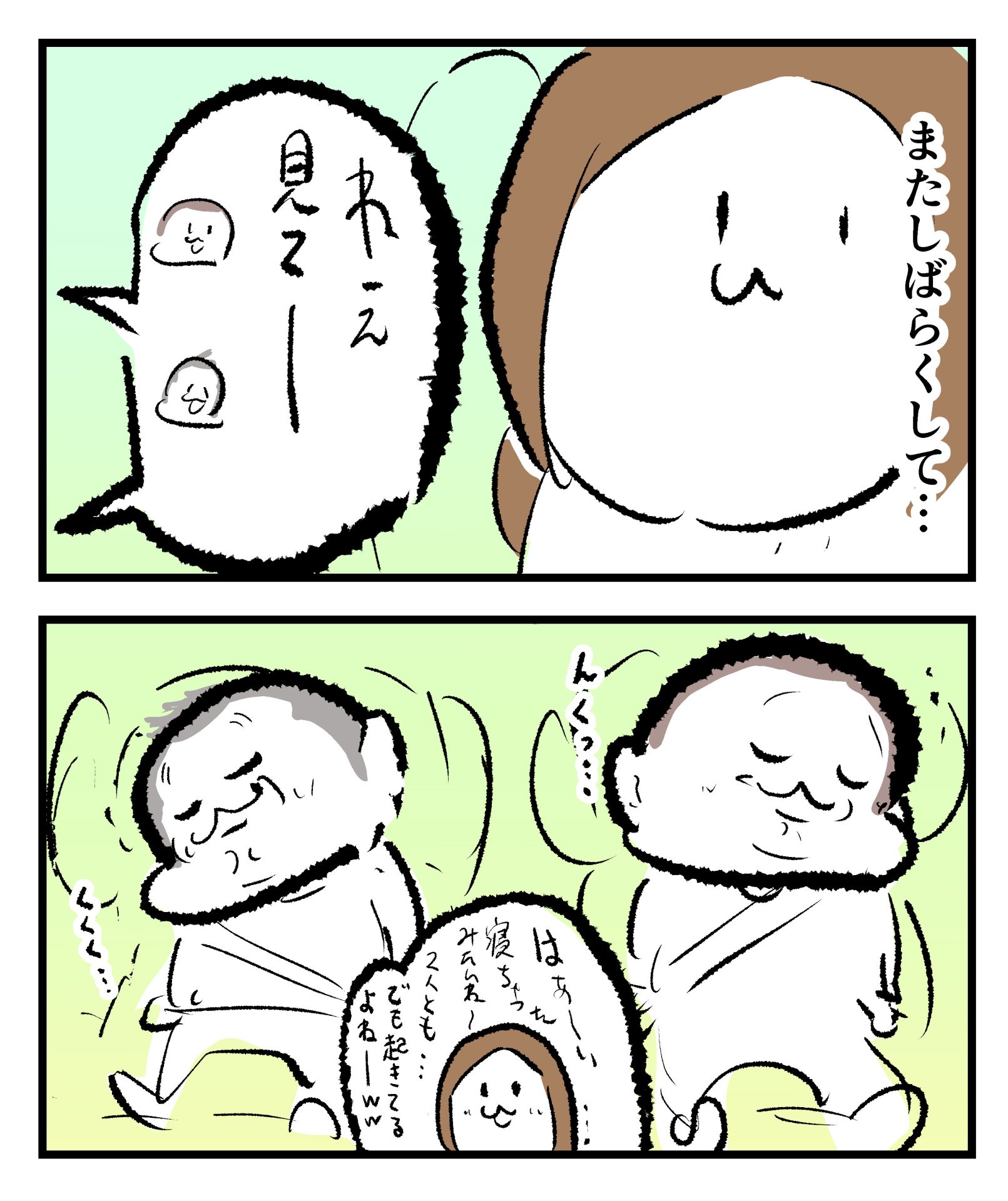 寝たふり~ズ2023.12.244歳 6歳 育児漫画 ぷにお:6歳3ヶ月 ぷにすけ:4歳11ヶ月頃 あとがき口元ニヤけてるのが全開でバレバレでしたw 4 同じカテゴリの記事 思わず二度聞き…!7歳ぷにすけの人生名言→からのギャップ ぷにおにとっての学校とは…?時間割より気になる“あれ” なにその内緒話…!給食のチーズドリアでぷにおが秘密にしたかったあるできごととは…!? #22 巻き起こせ!正の”時短”スパイラル!使い方でこんなに変わる、洗濯機のヒミツ 登校前のギリギリ時間!「待ってほしい」8歳が放った一言が強すぎた…! お母さんの誕生日、欲しいものは…?子どもたちに現実を突きつけられた話~授乳中の、胸が痛む一人時間 生後4ヶ月の赤ちゃんが会長すぎる…!ファミレスでの“会議みたいなしぐさ”がたまらない 生後2ヶ月の赤ちゃんと初ファミレスへ→まさかの「4対1席」に!?子連れ外食のコツも 「寒っ…!」7ヶ月赤ちゃん、ムチムチボディーを震わせててたまらなかった件 #21 テッカテカの君が尊い!はじめての育児で、ついマメにやっちゃう”ひと手間” スパゲティーニプニオニーニ☆8歳息子「目から謎のパスタ」コントの話 腹筋すご!もとの姿勢に戻ろうとする5ヶ月赤ちゃん 5ヶ月赤ちゃんの妹を見つめる兄がつい出た言葉…☆ 離乳食後ににおい…?6ヶ月赤ちゃんのニヤけ顔が何とも言えなかった 6ヶ月赤ちゃんがタグに夢中!ハムハムし尽くした結果… 6ヶ月ぷにみ。おすわりしながら、そっと見上げてくれたあの笑顔 #20 その「ちぱちぱ」は反則~!抱っこ紐の中で1歳息子がくすぐったい攻撃…! 5ヶ月ぷにみ、離乳食デビュー。初めての味への反応は…?③ 5ヶ月ぷにみ、離乳食デビュー。初めての味への反応は…?② 5ヶ月ぷにみ、離乳食デビュー。初めての味への反応は…?① 何かを味わってる?4ヶ月赤ちゃんのお口の動きが尊い件 なんだこの口の動きは…生後4ヶ月ぷにみ、もぐもぐを真似する 「こっち見て~☆」3ヶ月ぷにみ、授乳中のアイコンタクトが止まらない #19 妙に腰をくねらせる~!息子の「出してるよ」サインが、バリエーション豊富な件 ハイパーご機嫌おっぱいタイム☆4ヶ月ぷにみのあんよの動き 5ヶ月ぷにみ、コロコロからのこの動きがたまらない 立たせると笑う!?立つのが好きすぎる3〜4ヶ月のぷにみ 2ヶ月で立ちたい!?おむつ替え中に足ピーンするぷにみ ぷにみ会長にメロメロすぎるぷにすけ社長㉑ #18 「子育てに理解ある職場か」だけが判断基準じゃない。それでも、働き方を変えた理由 かわいい乳歯の破壊力…☆ 歯じめまして!が見えた瞬間…急遽閉ざされた小さなお口 ザ・貫禄 赤ちゃんの笑いの合格音、今日も鳴りました タオルで拭かれてるだけなのに可愛さが限界突破する赤ちゃん なぜか脚マッサージが効いた件 #17 「お母さんと寝よう…?」この後、3歳息子の”あざとさ”にキュンとなる…♡ 思い出のぬいぐるみが繋ぐ兄妹の時間 まんまるなお口☆ 音読の宿題中に起きた言い間違い事件 トイレ直前の舞い 鷲掴み♡ #16 「おかあさん、もすもすしよう!」息子からの謎の誘い☆尊さで心がはちきれそうになった件 ぷにおが感じた、ぷにみのほっぺの感触 ぷにおが思うぷにみの将来 謎のあっちむいてほいゲーム 脱衣所バーテンダー 気持ちだけでも嬉しかった件 そもそもぷにすけ ぷにみ会長にメロメロすぎるぷにすけ社長⑳ #15 深夜の授乳中、旦那からの「お茶とアヒルの差し入れ」が最高に嬉しかった理由 ぷにみ会長にメロメロすぎるぷにすけ社長⑲ ぷにみ会長にメロメロすぎるぷにすけ社長⑱ ぷにみ会長にメロメロすぎるぷにすけ社長⑰ ぷにみ会長にメロメロすぎるぷにすけ社長⑯ 小さな体からすごい音!ぷにみのびっくりサウンド! ぷにみ会長にメロメロすぎるぷにすけ社長⑮ ぷにみ会長にメロメロすぎるぷにすけ社長⑭ ぷにみ会長にメロメロすぎるぷにすけ社長⑬ ぷにみ会長にメロメロすぎるぷにすけ社長⑫ ぷにみ会長にメロメロすぎるぷにすけ社長⑪ ぷにみ会長にメロメロすぎるぷにすけ社長⑩ #14 緊張してる?泣きそうかも~!ドキドキの「はじめてのバースデーフォト」体験 ぷにみ会長にメロメロすぎるぷにすけ社長⑨ ぷにみ会長にメロメロすぎるぷにすけ社長⑧ ぷにみ会長にメロメロすぎるぷにすけ社長⑦ ぷにみ会長にメロメロすぎるぷにすけ社長⑥ ぷにみ会長にメロメロすぎるぷにすけ社長⑤ #13 友人おすすめの”出産時の便利グッズ”。半信半疑で買ったら…本当に大活躍だった! ぷにみ会長にメロメロすぎるぷにすけ社長④ ぷにみ会長にメロメロすぎるぷにすけ社長③ ぷにみ会長にメロメロすぎるぷにすけ社長② ぷにみ会長にメロメロすぎるぷにすけ社長① ノリノリぷにお 寝かしつけ中のパパ…ぷにみの小さなおててがつかんだものとは…☆ #12 「さっきはゴメンね…!」1歳次男の”おわびの気持ち”がなかなかシュールだった件☆ 起動した瞬間(その2) ダジャレにハマるぷにすけ、「校長先生」のくだりが秀逸爆笑展開…! お腹いっぱいになった新生児の反応がたくましすぎた件 #11 「あ
