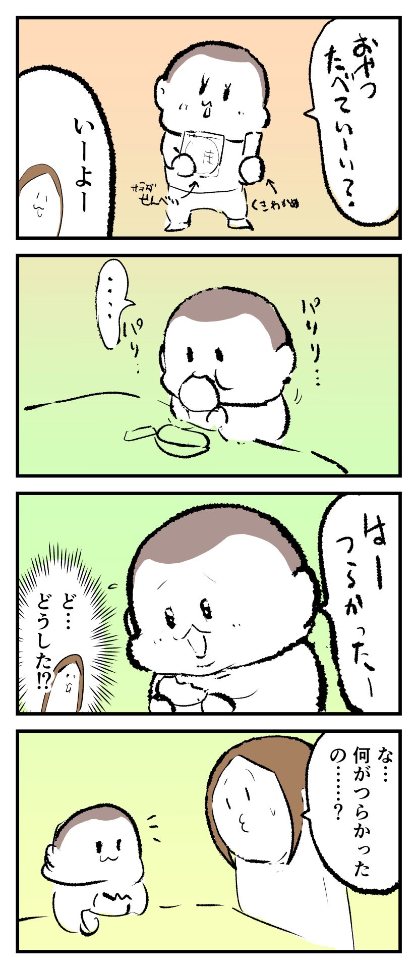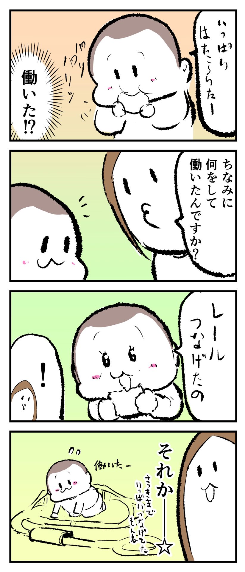 ぷにおのお疲れ様会2023.12.275歳 育児漫画 ぷにお:5歳11ヶ月頃 あとがき遊ぶのは子どもの仕事だからいっぱい遊んでえらいえらい(‘ω’)bでも適宜休息は必要だよね…☆おやつ中は「いっぱい働いた後のおやつは格別だぜぃ」って感じでしたw 3 同じカテゴリの記事 思わず二度聞き…!7歳ぷにすけの人生名言→からのギャップ ぷにおにとっての学校とは…?時間割より気になる“あれ” なにその内緒話…!給食のチーズドリアでぷにおが秘密にしたかったあるできごととは…!? #22 巻き起こせ!正の”時短”スパイラル!使い方でこんなに変わる、洗濯機のヒミツ 登校前のギリギリ時間!「待ってほしい」8歳が放った一言が強すぎた…! お母さんの誕生日、欲しいものは…?子どもたちに現実を突きつけられた話~授乳中の、胸が痛む一人時間 生後4ヶ月の赤ちゃんが会長すぎる…!ファミレスでの“会議みたいなしぐさ”がたまらない 生後2ヶ月の赤ちゃんと初ファミレスへ→まさかの「4対1席」に!?子連れ外食のコツも 「寒っ…!」7ヶ月赤ちゃん、ムチムチボディーを震わせててたまらなかった件 #21 テッカテカの君が尊い!はじめての育児で、ついマメにやっちゃう”ひと手間” スパゲティーニプニオニーニ☆8歳息子「目から謎のパスタ」コントの話 腹筋すご!もとの姿勢に戻ろうとする5ヶ月赤ちゃん 5ヶ月赤ちゃんの妹を見つめる兄がつい出た言葉…☆ 離乳食後ににおい…?6ヶ月赤ちゃんのニヤけ顔が何とも言えなかった 6ヶ月赤ちゃんがタグに夢中!ハムハムし尽くした結果… 6ヶ月ぷにみ。おすわりしながら、そっと見上げてくれたあの笑顔 #20 その「ちぱちぱ」は反則~!抱っこ紐の中で1歳息子がくすぐったい攻撃…! 5ヶ月ぷにみ、離乳食デビュー。初めての味への反応は…?③ 5ヶ月ぷにみ、離乳食デビュー。初めての味への反応は…?② 5ヶ月ぷにみ、離乳食デビュー。初めての味への反応は…?① 何かを味わってる?4ヶ月赤ちゃんのお口の動きが尊い件 なんだこの口の動きは…生後4ヶ月ぷにみ、もぐもぐを真似する 「こっち見て~☆」3ヶ月ぷにみ、授乳中のアイコンタクトが止まらない #19 妙に腰をくねらせる~!息子の「出してるよ」サインが、バリエーション豊富な件 ハイパーご機嫌おっぱいタイム☆4ヶ月ぷにみのあんよの動き 5ヶ月ぷにみ、コロコロからのこの動きがたまらない 立たせると笑う!?立つのが好きすぎる3〜4ヶ月のぷにみ 2ヶ月で立ちたい!?おむつ替え中に足ピーンするぷにみ ぷにみ会長にメロメロすぎるぷにすけ社長㉑ #18 「子育てに理解ある職場か」だけが判断基準じゃない。それでも、働き方を変えた理由 かわいい乳歯の破壊力…☆ 歯じめまして!が見えた瞬間…急遽閉ざされた小さなお口 ザ・貫禄 赤ちゃんの笑いの合格音、今日も鳴りました タオルで拭かれてるだけなのに可愛さが限界突破する赤ちゃん なぜか脚マッサージが効いた件 #17 「お母さんと寝よう…?」この後、3歳息子の”あざとさ”にキュンとなる…♡ 思い出のぬいぐるみが繋ぐ兄妹の時間 まんまるなお口☆ 音読の宿題中に起きた言い間違い事件 トイレ直前の舞い 鷲掴み♡ #16 「おかあさん、もすもすしよう!」息子からの謎の誘い☆尊さで心がはちきれそうになった件 ぷにおが感じた、ぷにみのほっぺの感触 ぷにおが思うぷにみの将来 謎のあっちむいてほいゲーム 脱衣所バーテンダー 気持ちだけでも嬉しかった件 そもそもぷにすけ ぷにみ会長にメロメロすぎるぷにすけ社長⑳ #15 深夜の授乳中、旦那からの「お茶とアヒルの差し入れ」が最高に嬉しかった理由 ぷにみ会長にメロメロすぎるぷにすけ社長⑲ ぷにみ会長にメロメロすぎるぷにすけ社長⑱ ぷにみ会長にメロメロすぎるぷにすけ社長⑰ ぷにみ会長にメロメロすぎるぷにすけ社長⑯ 小さな体からすごい音!ぷにみのびっくりサウンド! ぷにみ会長にメロメロすぎるぷにすけ社長⑮ ぷにみ会長にメロメロすぎるぷにすけ社長⑭ ぷにみ会長にメロメロすぎるぷにすけ社長⑬ ぷにみ会長にメロメロすぎるぷにすけ社長⑫ ぷにみ会長にメロメロすぎるぷにすけ社長⑪ ぷにみ会長にメロメロすぎるぷにすけ社長⑩ #14 緊張してる?泣きそうかも~!ドキドキの「はじめてのバースデーフォト」体験 ぷにみ会長にメロメロすぎるぷにすけ社長⑨ ぷにみ会長にメロメロすぎるぷにすけ社長⑧ ぷにみ会長にメロメロすぎるぷにすけ社長⑦ ぷにみ会長にメロメロすぎるぷにすけ社長⑥ ぷにみ会長にメロメロすぎるぷにすけ社長⑤ #13 友人おすすめの”出産時の便利グッズ”。半信半疑で買ったら…本当に大活躍だった! ぷにみ会長にメロメロすぎるぷにすけ社長④ ぷにみ会長にメロメロすぎるぷにすけ社長③ ぷにみ会長にメロメロすぎるぷにすけ社長② ぷにみ会長にメロメロすぎるぷにすけ社長① ノリノリぷにお 寝かしつけ中のパパ…ぷにみの小さなおててがつかんだものとは…☆ #12 「さっきはゴメンね…!」1歳次男の”おわびの気持ち”がなかなかシュールだった件☆ 起動した瞬間(その2) ダジャレにハマるぷに