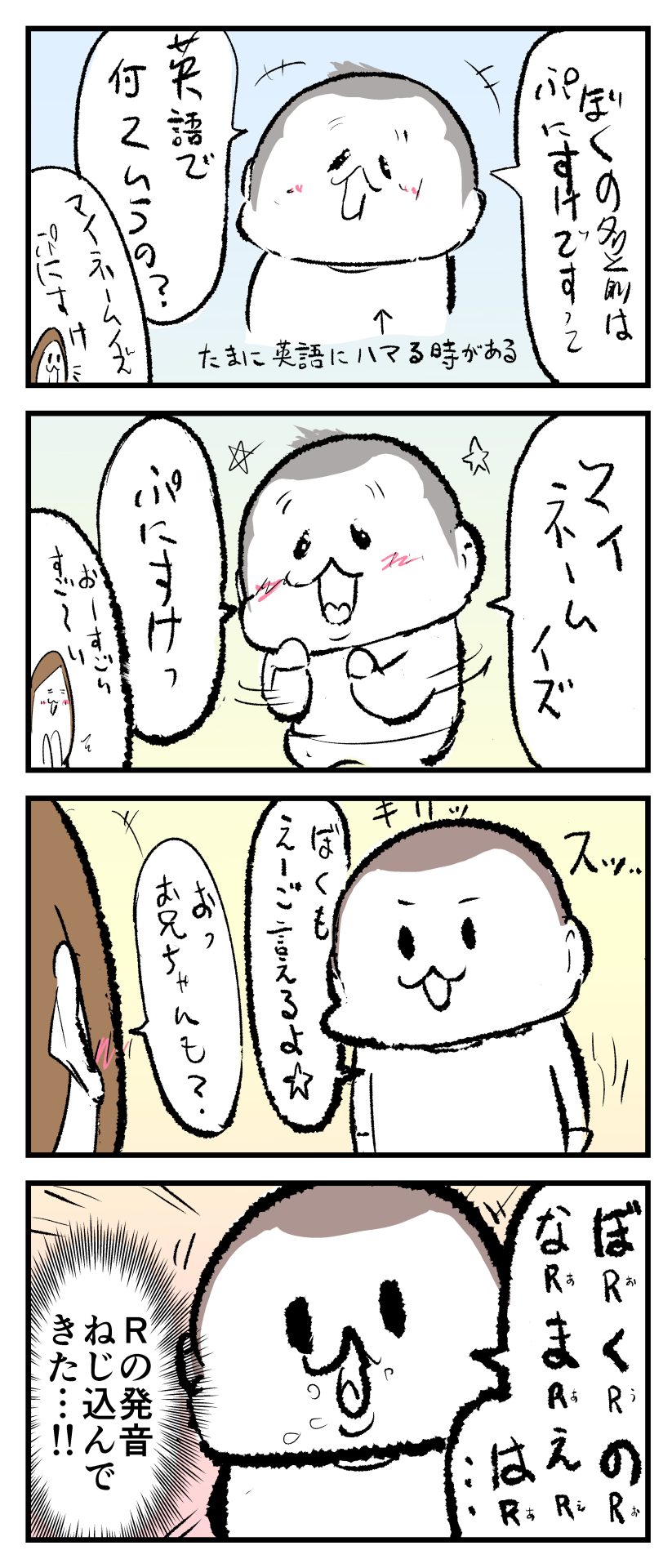 ネイティブスピーカーぷにお2023.12.284歳 6歳 育児漫画 ぷにお:6歳2ヶ月 ぷにすけ:4歳10ヶ月頃 あとがき一語一語舌を全力で巻いた何の迷いもないRの発音でしたww 3 同じカテゴリの記事 思わず二度聞き…!7歳ぷにすけの人生名言→からのギャップ ぷにおにとっての学校とは…?時間割より気になる“あれ” なにその内緒話…!給食のチーズドリアでぷにおが秘密にしたかったあるできごととは…!? #22 巻き起こせ!正の”時短”スパイラル!使い方でこんなに変わる、洗濯機のヒミツ 登校前のギリギリ時間!「待ってほしい」8歳が放った一言が強すぎた…! お母さんの誕生日、欲しいものは…?子どもたちに現実を突きつけられた話~授乳中の、胸が痛む一人時間 生後4ヶ月の赤ちゃんが会長すぎる…!ファミレスでの“会議みたいなしぐさ”がたまらない 生後2ヶ月の赤ちゃんと初ファミレスへ→まさかの「4対1席」に!?子連れ外食のコツも 「寒っ…!」7ヶ月赤ちゃん、ムチムチボディーを震わせててたまらなかった件 #21 テッカテカの君が尊い!はじめての育児で、ついマメにやっちゃう”ひと手間” スパゲティーニプニオニーニ☆8歳息子「目から謎のパスタ」コントの話 腹筋すご!もとの姿勢に戻ろうとする5ヶ月赤ちゃん 5ヶ月赤ちゃんの妹を見つめる兄がつい出た言葉…☆ 離乳食後ににおい…?6ヶ月赤ちゃんのニヤけ顔が何とも言えなかった 6ヶ月赤ちゃんがタグに夢中!ハムハムし尽くした結果… 6ヶ月ぷにみ。おすわりしながら、そっと見上げてくれたあの笑顔 #20 その「ちぱちぱ」は反則~!抱っこ紐の中で1歳息子がくすぐったい攻撃…! 5ヶ月ぷにみ、離乳食デビュー。初めての味への反応は…?③ 5ヶ月ぷにみ、離乳食デビュー。初めての味への反応は…?② 5ヶ月ぷにみ、離乳食デビュー。初めての味への反応は…?① 何かを味わってる?4ヶ月赤ちゃんのお口の動きが尊い件 なんだこの口の動きは…生後4ヶ月ぷにみ、もぐもぐを真似する 「こっち見て~☆」3ヶ月ぷにみ、授乳中のアイコンタクトが止まらない #19 妙に腰をくねらせる~!息子の「出してるよ」サインが、バリエーション豊富な件 ハイパーご機嫌おっぱいタイム☆4ヶ月ぷにみのあんよの動き 5ヶ月ぷにみ、コロコロからのこの動きがたまらない 立たせると笑う!?立つのが好きすぎる3〜4ヶ月のぷにみ 2ヶ月で立ちたい!?おむつ替え中に足ピーンするぷにみ ぷにみ会長にメロメロすぎるぷにすけ社長㉑ #18 「子育てに理解ある職場か」だけが判断基準じゃない。それでも、働き方を変えた理由 かわいい乳歯の破壊力…☆ 歯じめまして!が見えた瞬間…急遽閉ざされた小さなお口 ザ・貫禄 赤ちゃんの笑いの合格音、今日も鳴りました タオルで拭かれてるだけなのに可愛さが限界突破する赤ちゃん なぜか脚マッサージが効いた件 #17 「お母さんと寝よう…?」この後、3歳息子の”あざとさ”にキュンとなる…♡ 思い出のぬいぐるみが繋ぐ兄妹の時間 まんまるなお口☆ 音読の宿題中に起きた言い間違い事件 トイレ直前の舞い 鷲掴み♡ #16 「おかあさん、もすもすしよう!」息子からの謎の誘い☆尊さで心がはちきれそうになった件 ぷにおが感じた、ぷにみのほっぺの感触 ぷにおが思うぷにみの将来 謎のあっちむいてほいゲーム 脱衣所バーテンダー 気持ちだけでも嬉しかった件 そもそもぷにすけ ぷにみ会長にメロメロすぎるぷにすけ社長⑳ #15 深夜の授乳中、旦那からの「お茶とアヒルの差し入れ」が最高に嬉しかった理由 ぷにみ会長にメロメロすぎるぷにすけ社長⑲ ぷにみ会長にメロメロすぎるぷにすけ社長⑱ ぷにみ会長にメロメロすぎるぷにすけ社長⑰ ぷにみ会長にメロメロすぎるぷにすけ社長⑯ 小さな体からすごい音!ぷにみのびっくりサウンド! ぷにみ会長にメロメロすぎるぷにすけ社長⑮ ぷにみ会長にメロメロすぎるぷにすけ社長⑭ ぷにみ会長にメロメロすぎるぷにすけ社長⑬ ぷにみ会長にメロメロすぎるぷにすけ社長⑫ ぷにみ会長にメロメロすぎるぷにすけ社長⑪ ぷにみ会長にメロメロすぎるぷにすけ社長⑩ #14 緊張してる?泣きそうかも~!ドキドキの「はじめてのバースデーフォト」体験 ぷにみ会長にメロメロすぎるぷにすけ社長⑨ ぷにみ会長にメロメロすぎるぷにすけ社長⑧ ぷにみ会長にメロメロすぎるぷにすけ社長⑦ ぷにみ会長にメロメロすぎるぷにすけ社長⑥ ぷにみ会長にメロメロすぎるぷにすけ社長⑤ #13 友人おすすめの”出産時の便利グッズ”。半信半疑で買ったら…本当に大活躍だった! ぷにみ会長にメロメロすぎるぷにすけ社長④ ぷにみ会長にメロメロすぎるぷにすけ社長③ ぷにみ会長にメロメロすぎるぷにすけ社長② ぷにみ会長にメロメロすぎるぷにすけ社長① ノリノリぷにお 寝かしつけ中のパパ…ぷにみの小さなおててがつかんだものとは…☆ #12 「さっきはゴメンね…!」1歳次男の”おわびの気持ち”がなかなかシュールだった件☆ 起動した瞬間(その2) ダジャレにハマるぷにすけ、「校長先生」のくだりが秀逸爆笑展開…! お腹いっぱいになった新生児の