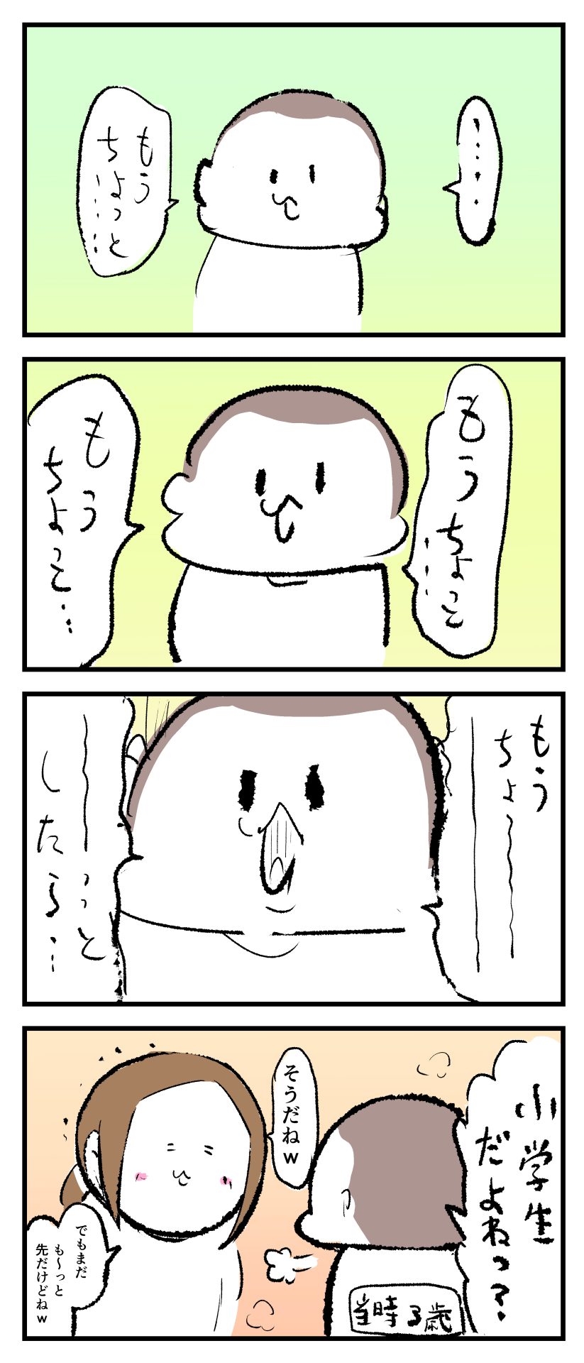 もうちょっと先のこと2023.12.313歳 育児漫画 ぷにお:3歳6ヶ月頃 あとがきでも6歳となった今現在…時の流れの速さに「え…もう…あと数か月で…小学生…?うそでしょ…???」とツッコミたくなります。 3 同じカテゴリの記事 思わず二度聞き…!7歳ぷにすけの人生名言→からのギャップ ぷにおにとっての学校とは…?時間割より気になる“あれ” なにその内緒話…!給食のチーズドリアでぷにおが秘密にしたかったあるできごととは…!? #22 巻き起こせ!正の”時短”スパイラル!使い方でこんなに変わる、洗濯機のヒミツ 登校前のギリギリ時間!「待ってほしい」8歳が放った一言が強すぎた…! お母さんの誕生日、欲しいものは…?子どもたちに現実を突きつけられた話~授乳中の、胸が痛む一人時間 生後4ヶ月の赤ちゃんが会長すぎる…!ファミレスでの“会議みたいなしぐさ”がたまらない 生後2ヶ月の赤ちゃんと初ファミレスへ→まさかの「4対1席」に!?子連れ外食のコツも 「寒っ…!」7ヶ月赤ちゃん、ムチムチボディーを震わせててたまらなかった件 #21 テッカテカの君が尊い!はじめての育児で、ついマメにやっちゃう”ひと手間” スパゲティーニプニオニーニ☆8歳息子「目から謎のパスタ」コントの話 腹筋すご!もとの姿勢に戻ろうとする5ヶ月赤ちゃん 5ヶ月赤ちゃんの妹を見つめる兄がつい出た言葉…☆ 離乳食後ににおい…?6ヶ月赤ちゃんのニヤけ顔が何とも言えなかった 6ヶ月赤ちゃんがタグに夢中!ハムハムし尽くした結果… 6ヶ月ぷにみ。おすわりしながら、そっと見上げてくれたあの笑顔 #20 その「ちぱちぱ」は反則~!抱っこ紐の中で1歳息子がくすぐったい攻撃…! 5ヶ月ぷにみ、離乳食デビュー。初めての味への反応は…?③ 5ヶ月ぷにみ、離乳食デビュー。初めての味への反応は…?② 5ヶ月ぷにみ、離乳食デビュー。初めての味への反応は…?① 何かを味わってる?4ヶ月赤ちゃんのお口の動きが尊い件 なんだこの口の動きは…生後4ヶ月ぷにみ、もぐもぐを真似する 「こっち見て~☆」3ヶ月ぷにみ、授乳中のアイコンタクトが止まらない #19 妙に腰をくねらせる~!息子の「出してるよ」サインが、バリエーション豊富な件 ハイパーご機嫌おっぱいタイム☆4ヶ月ぷにみのあんよの動き 5ヶ月ぷにみ、コロコロからのこの動きがたまらない 立たせると笑う!?立つのが好きすぎる3〜4ヶ月のぷにみ 2ヶ月で立ちたい!?おむつ替え中に足ピーンするぷにみ ぷにみ会長にメロメロすぎるぷにすけ社長㉑ #18 「子育てに理解ある職場か」だけが判断基準じゃない。それでも、働き方を変えた理由 かわいい乳歯の破壊力…☆ 歯じめまして!が見えた瞬間…急遽閉ざされた小さなお口 ザ・貫禄 赤ちゃんの笑いの合格音、今日も鳴りました タオルで拭かれてるだけなのに可愛さが限界突破する赤ちゃん なぜか脚マッサージが効いた件 #17 「お母さんと寝よう…?」この後、3歳息子の”あざとさ”にキュンとなる…♡ 思い出のぬいぐるみが繋ぐ兄妹の時間 まんまるなお口☆ 音読の宿題中に起きた言い間違い事件 トイレ直前の舞い 鷲掴み♡ #16 「おかあさん、もすもすしよう!」息子からの謎の誘い☆尊さで心がはちきれそうになった件 ぷにおが感じた、ぷにみのほっぺの感触 ぷにおが思うぷにみの将来 謎のあっちむいてほいゲーム 脱衣所バーテンダー 気持ちだけでも嬉しかった件 そもそもぷにすけ ぷにみ会長にメロメロすぎるぷにすけ社長⑳ #15 深夜の授乳中、旦那からの「お茶とアヒルの差し入れ」が最高に嬉しかった理由 ぷにみ会長にメロメロすぎるぷにすけ社長⑲ ぷにみ会長にメロメロすぎるぷにすけ社長⑱ ぷにみ会長にメロメロすぎるぷにすけ社長⑰ ぷにみ会長にメロメロすぎるぷにすけ社長⑯ 小さな体からすごい音!ぷにみのびっくりサウンド! ぷにみ会長にメロメロすぎるぷにすけ社長⑮ ぷにみ会長にメロメロすぎるぷにすけ社長⑭ ぷにみ会長にメロメロすぎるぷにすけ社長⑬ ぷにみ会長にメロメロすぎるぷにすけ社長⑫ ぷにみ会長にメロメロすぎるぷにすけ社長⑪ ぷにみ会長にメロメロすぎるぷにすけ社長⑩ #14 緊張してる?泣きそうかも~!ドキドキの「はじめてのバースデーフォト」体験 ぷにみ会長にメロメロすぎるぷにすけ社長⑨ ぷにみ会長にメロメロすぎるぷにすけ社長⑧ ぷにみ会長にメロメロすぎるぷにすけ社長⑦ ぷにみ会長にメロメロすぎるぷにすけ社長⑥ ぷにみ会長にメロメロすぎるぷにすけ社長⑤ #13 友人おすすめの”出産時の便利グッズ”。半信半疑で買ったら…本当に大活躍だった! ぷにみ会長にメロメロすぎるぷにすけ社長④ ぷにみ会長にメロメロすぎるぷにすけ社長③ ぷにみ会長にメロメロすぎるぷにすけ社長② ぷにみ会長にメロメロすぎるぷにすけ社長① ノリノリぷにお 寝かしつけ中のパパ…ぷにみの小さなおててがつかんだものとは…☆ #12 「さっきはゴメンね…!」1歳次男の”おわびの気持ち”がなかなかシュールだった件☆ 起動した瞬間(その2) ダジャレにハマるぷにすけ、「校長先生」のくだりが秀逸爆笑