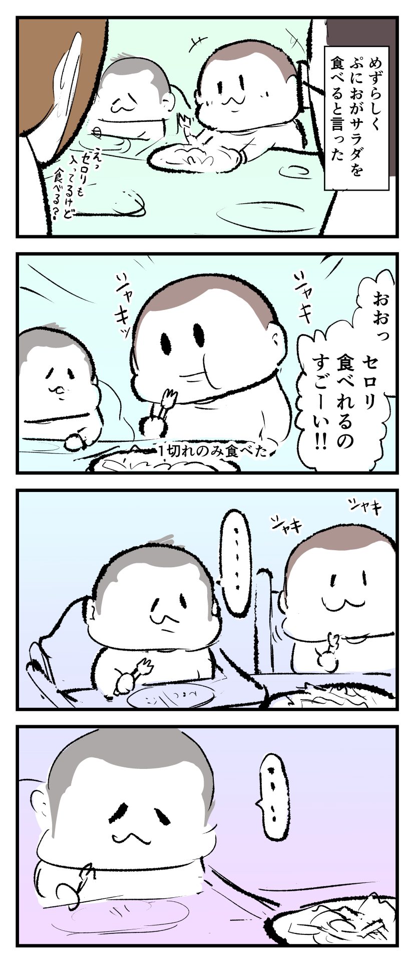 ちなみにセロリを食べたのは2人ともこの1回限りで、6歳と4歳現在となってもまだ食べる様子を見せてくれません‥(´;ω;`)