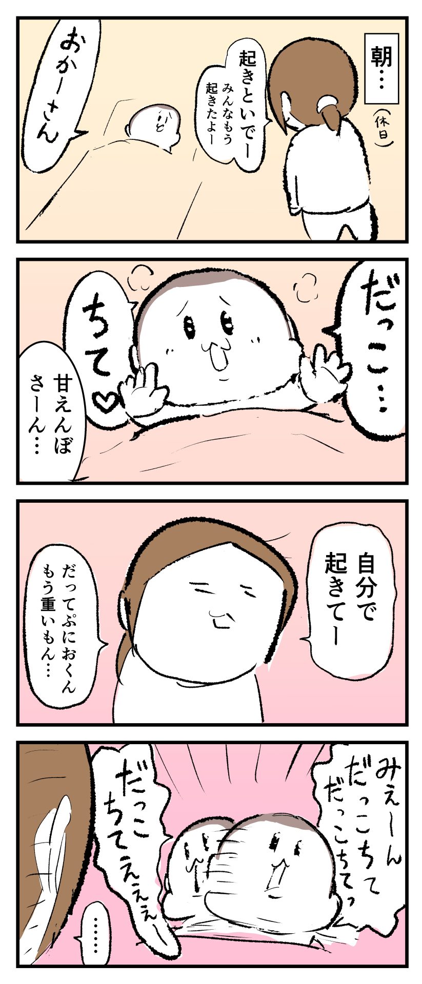 重みと成長を感じる日2024.01.296歳 育児漫画 ぷにお:6歳4ヶ月頃 あとがきいっぱい食べて栄養をたくさん身体に吸収してうんこ出して成長したんだな~と感じました。(ちなみにこの時の体重は 29.5 Kg です…) 10 同じカテゴリの記事 思わず二度聞き…!7歳ぷにすけの人生名言→からのギャップ ぷにおにとっての学校とは…?時間割より気になる“あれ” なにその内緒話…!給食のチーズドリアでぷにおが秘密にしたかったあるできごととは…!? #22 巻き起こせ!正の”時短”スパイラル!使い方でこんなに変わる、洗濯機のヒミツ 登校前のギリギリ時間!「待ってほしい」8歳が放った一言が強すぎた…! お母さんの誕生日、欲しいものは…?子どもたちに現実を突きつけられた話~授乳中の、胸が痛む一人時間 生後4ヶ月の赤ちゃんが会長すぎる…!ファミレスでの“会議みたいなしぐさ”がたまらない 生後2ヶ月の赤ちゃんと初ファミレスへ→まさかの「4対1席」に!?子連れ外食のコツも 「寒っ…!」7ヶ月赤ちゃん、ムチムチボディーを震わせててたまらなかった件 #21 テッカテカの君が尊い!はじめての育児で、ついマメにやっちゃう”ひと手間” スパゲティーニプニオニーニ☆8歳息子「目から謎のパスタ」コントの話 腹筋すご!もとの姿勢に戻ろうとする5ヶ月赤ちゃん 5ヶ月赤ちゃんの妹を見つめる兄がつい出た言葉…☆ 離乳食後ににおい…?6ヶ月赤ちゃんのニヤけ顔が何とも言えなかった 6ヶ月赤ちゃんがタグに夢中!ハムハムし尽くした結果… 6ヶ月ぷにみ。おすわりしながら、そっと見上げてくれたあの笑顔 #20 その「ちぱちぱ」は反則~!抱っこ紐の中で1歳息子がくすぐったい攻撃…! 5ヶ月ぷにみ、離乳食デビュー。初めての味への反応は…?③ 5ヶ月ぷにみ、離乳食デビュー。初めての味への反応は…?② 5ヶ月ぷにみ、離乳食デビュー。初めての味への反応は…?① 何かを味わってる?4ヶ月赤ちゃんのお口の動きが尊い件 なんだこの口の動きは…生後4ヶ月ぷにみ、もぐもぐを真似する 「こっち見て~☆」3ヶ月ぷにみ、授乳中のアイコンタクトが止まらない #19 妙に腰をくねらせる~!息子の「出してるよ」サインが、バリエーション豊富な件 ハイパーご機嫌おっぱいタイム☆4ヶ月ぷにみのあんよの動き 5ヶ月ぷにみ、コロコロからのこの動きがたまらない 立たせると笑う!?立つのが好きすぎる3〜4ヶ月のぷにみ 2ヶ月で立ちたい!?おむつ替え中に足ピーンするぷにみ ぷにみ会長にメロメロすぎるぷにすけ社長㉑ #18 「子育てに理解ある職場か」だけが判断基準じゃない。それでも、働き方を変えた理由 かわいい乳歯の破壊力…☆ 歯じめまして!が見えた瞬間…急遽閉ざされた小さなお口 ザ・貫禄 赤ちゃんの笑いの合格音、今日も鳴りました タオルで拭かれてるだけなのに可愛さが限界突破する赤ちゃん なぜか脚マッサージが効いた件 #17 「お母さんと寝よう…?」この後、3歳息子の”あざとさ”にキュンとなる…♡ 思い出のぬいぐるみが繋ぐ兄妹の時間 まんまるなお口☆ 音読の宿題中に起きた言い間違い事件 トイレ直前の舞い 鷲掴み♡ #16 「おかあさん、もすもすしよう!」息子からの謎の誘い☆尊さで心がはちきれそうになった件 ぷにおが感じた、ぷにみのほっぺの感触 ぷにおが思うぷにみの将来 謎のあっちむいてほいゲーム 脱衣所バーテンダー 気持ちだけでも嬉しかった件 そもそもぷにすけ ぷにみ会長にメロメロすぎるぷにすけ社長⑳ #15 深夜の授乳中、旦那からの「お茶とアヒルの差し入れ」が最高に嬉しかった理由 ぷにみ会長にメロメロすぎるぷにすけ社長⑲ ぷにみ会長にメロメロすぎるぷにすけ社長⑱ ぷにみ会長にメロメロすぎるぷにすけ社長⑰ ぷにみ会長にメロメロすぎるぷにすけ社長⑯ 小さな体からすごい音!ぷにみのびっくりサウンド! ぷにみ会長にメロメロすぎるぷにすけ社長⑮ ぷにみ会長にメロメロすぎるぷにすけ社長⑭ ぷにみ会長にメロメロすぎるぷにすけ社長⑬ ぷにみ会長にメロメロすぎるぷにすけ社長⑫ ぷにみ会長にメロメロすぎるぷにすけ社長⑪ ぷにみ会長にメロメロすぎるぷにすけ社長⑩ #14 緊張してる?泣きそうかも~!ドキドキの「はじめてのバースデーフォト」体験 ぷにみ会長にメロメロすぎるぷにすけ社長⑨ ぷにみ会長にメロメロすぎるぷにすけ社長⑧ ぷにみ会長にメロメロすぎるぷにすけ社長⑦ ぷにみ会長にメロメロすぎるぷにすけ社長⑥ ぷにみ会長にメロメロすぎるぷにすけ社長⑤ #13 友人おすすめの”出産時の便利グッズ”。半信半疑で買ったら…本当に大活躍だった! ぷにみ会長にメロメロすぎるぷにすけ社長④ ぷにみ会長にメロメロすぎるぷにすけ社長③ ぷにみ会長にメロメロすぎるぷにすけ社長② ぷにみ会長にメロメロすぎるぷにすけ社長① ノリノリぷにお 寝かしつけ中のパパ…ぷにみの小さなおててがつかんだものとは…☆ #12 「さっきはゴメンね…!」1歳次男の”おわびの気持ち”がなかなかシュールだった件☆ 起動した瞬間(その2) ダジャレにハマるぷにすけ、「校長先生」のくだりが秀逸